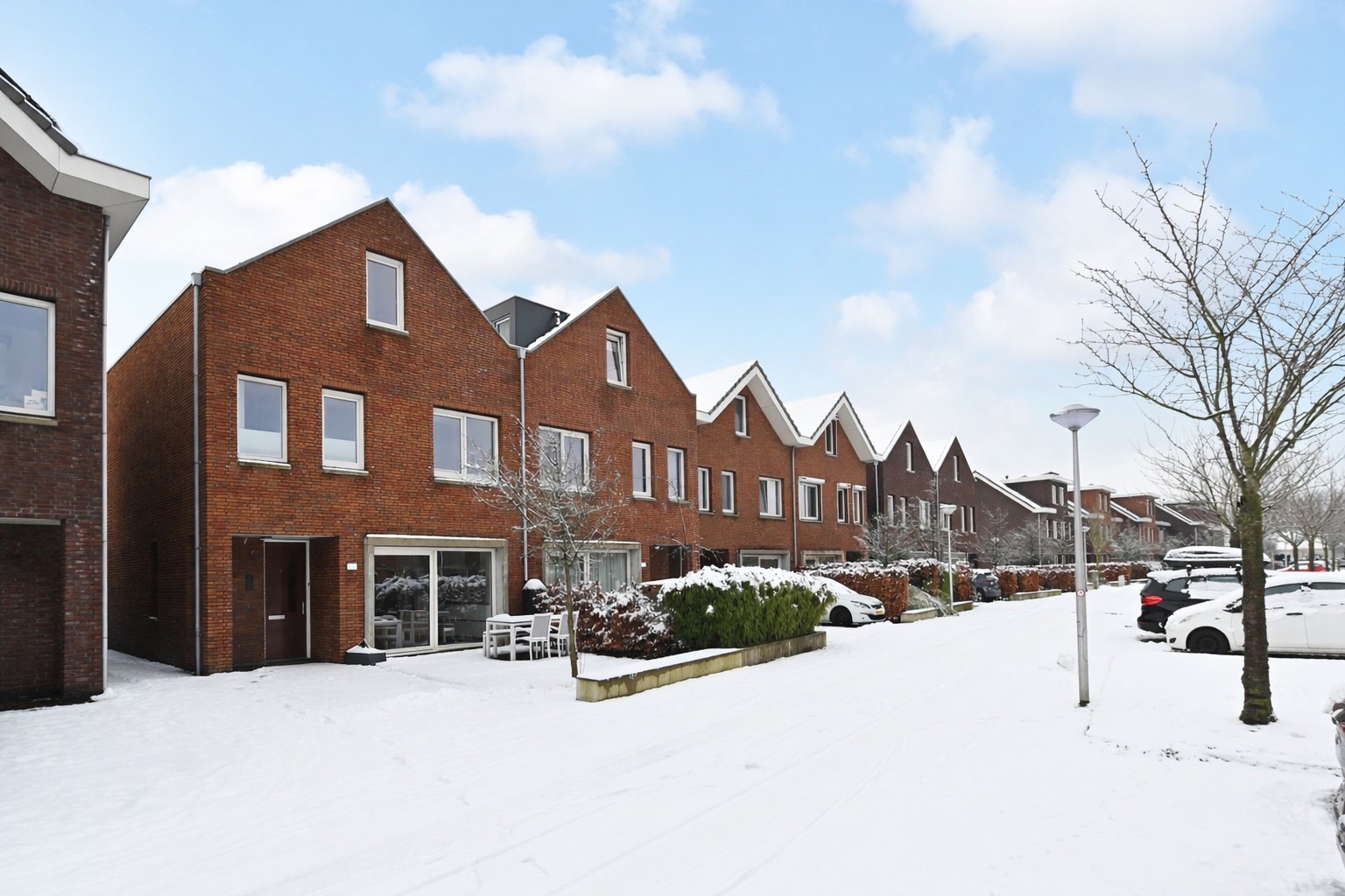 Royale, verzorgde voortuin met o.a. parkeergelegenheid, groen en een zonnig terras waar je net als in de achtertuin ook heerlijk kunt genieten tot zonsondergang.