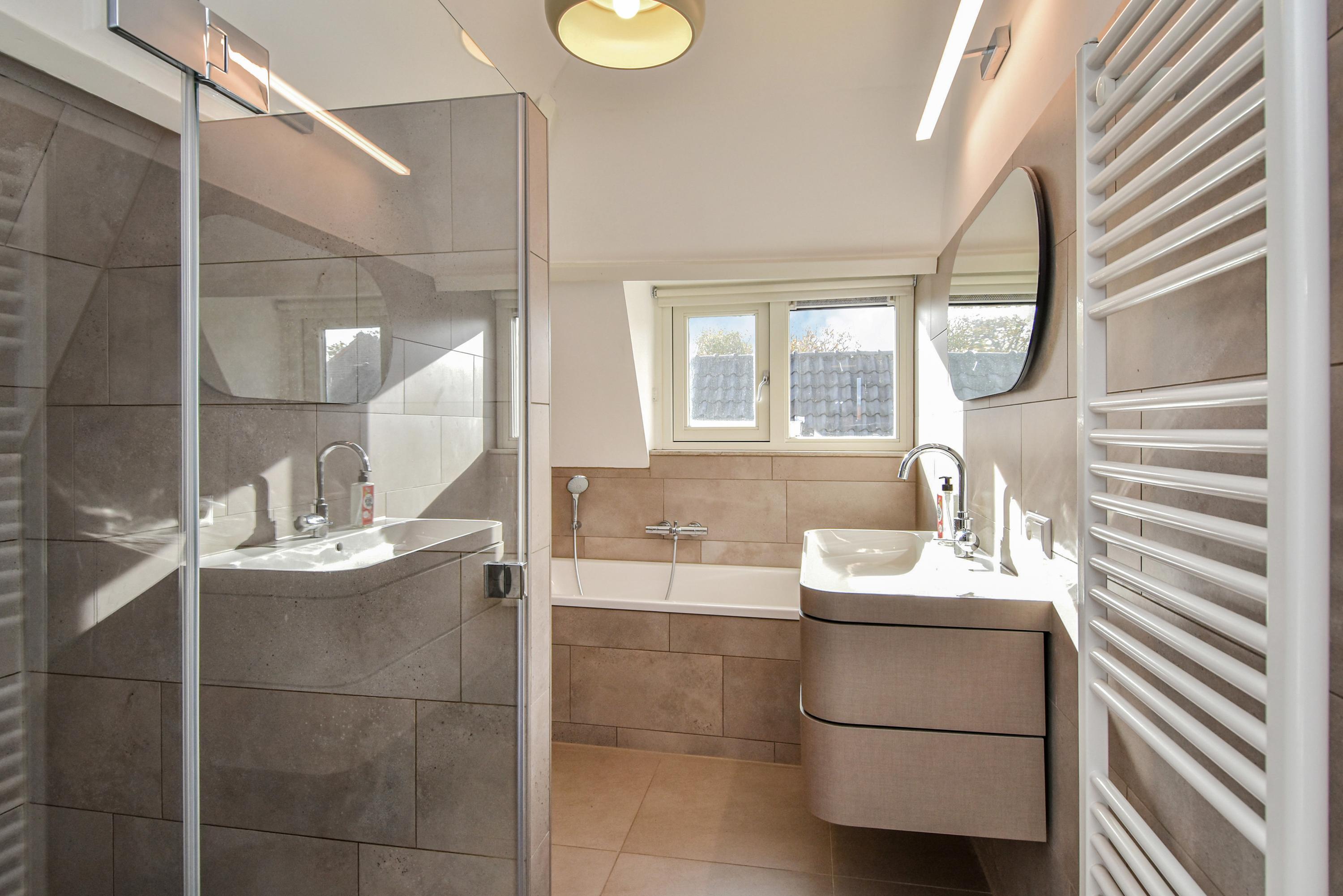 The second floor is surprisingly spacious. A long hallway with built-in cupboards and characteristic antique doors provides access to 3 more bedrooms. At the front, there is a large room with a skylight, dormer window, and open roof where the original beam structure is visible. The second bedroom features a tall dormer with an authentic hoisting beam, while at the rear there is another pleasant bedroom with dormer and skylight, offering views of Delft’s church towers. The luxurious bathroom is fully equipped with a bathtub, walk-in shower, fourth toilet, designer washbasin unit, and towel radiator.