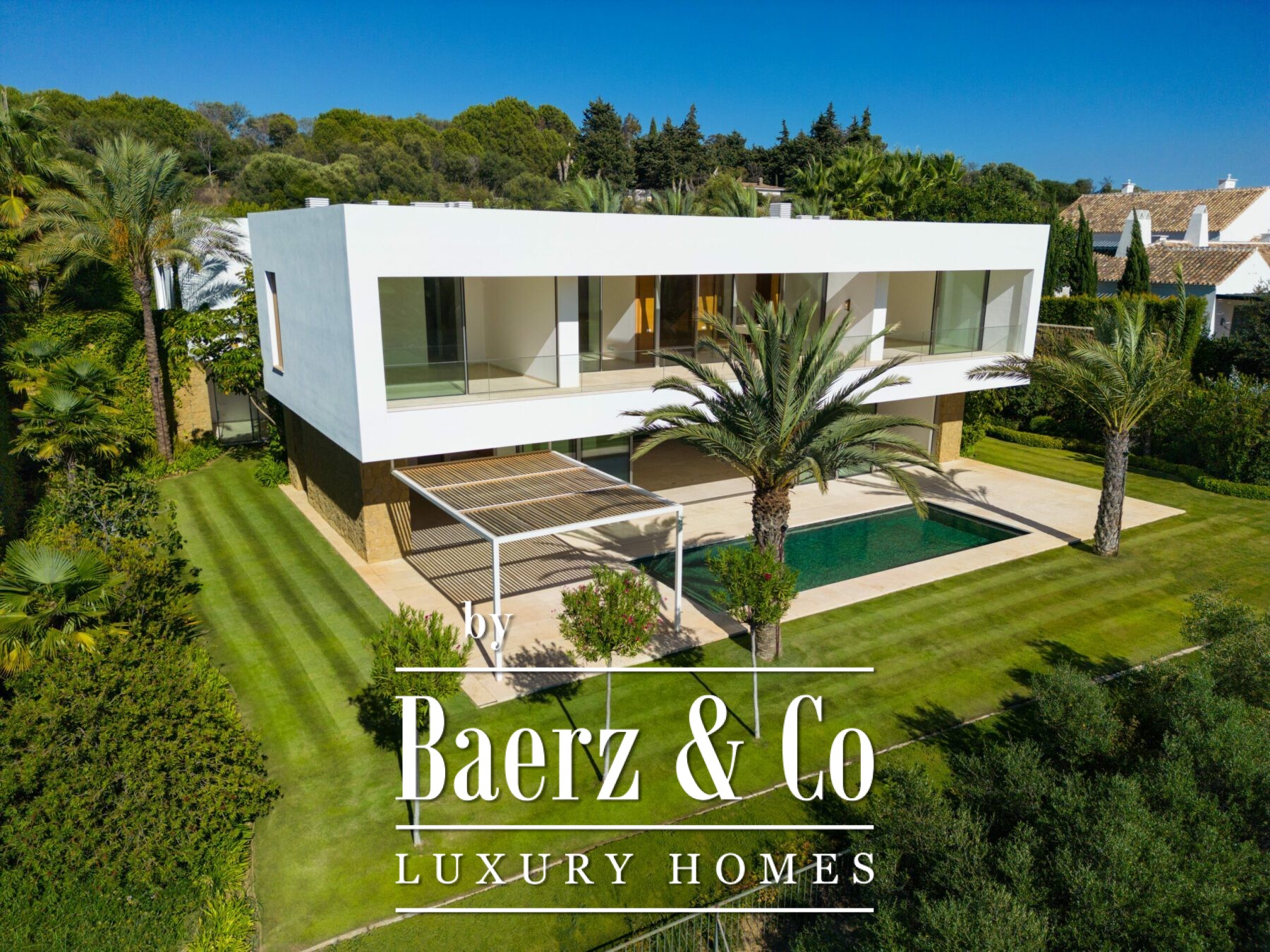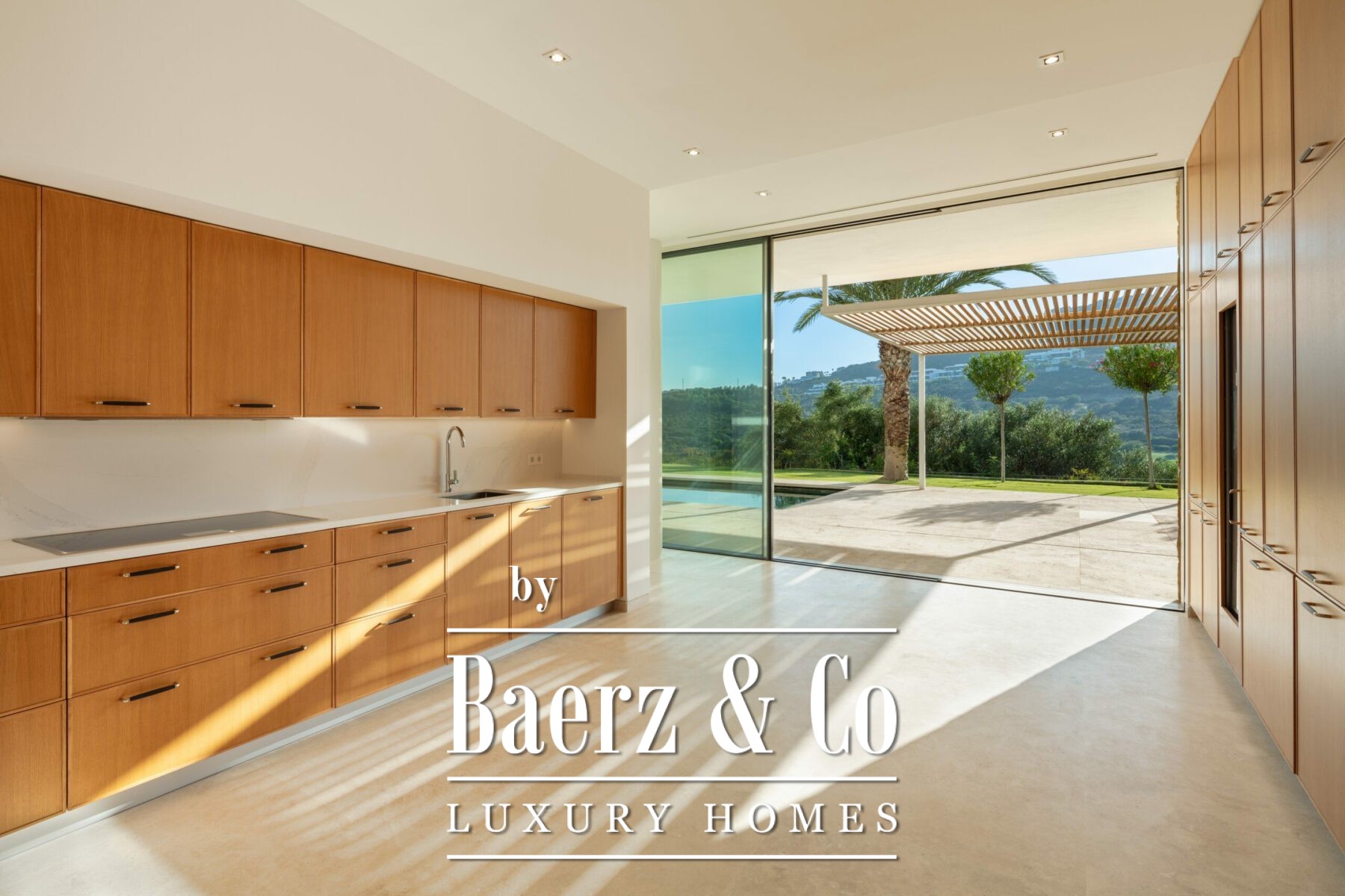 This exquisite villa, nestled beside the golf course, presents an extraordinary opportunity for residents to immerse themselves in the lavish Mediterranean lifestyle. Poised within the famous golf resort, this residence affords sweeping vistas of the lush fairways and the Mediterranean Sea. The architectural brilliance shines through, lending the home a modern allure that epitomises luxury. Set upon an expansive plot, the villa welcomes guests with a captivating entrance adorned with a picturesque lake and meticulously landscaped gardens. Spanning two levels, the four bedrooms are located on the upper floor, while an additional fifth bedroom is conveniently located on the ground level. Inside, the interiors exude elegance with their soft neutral tones and tasteful wooden accents, creating