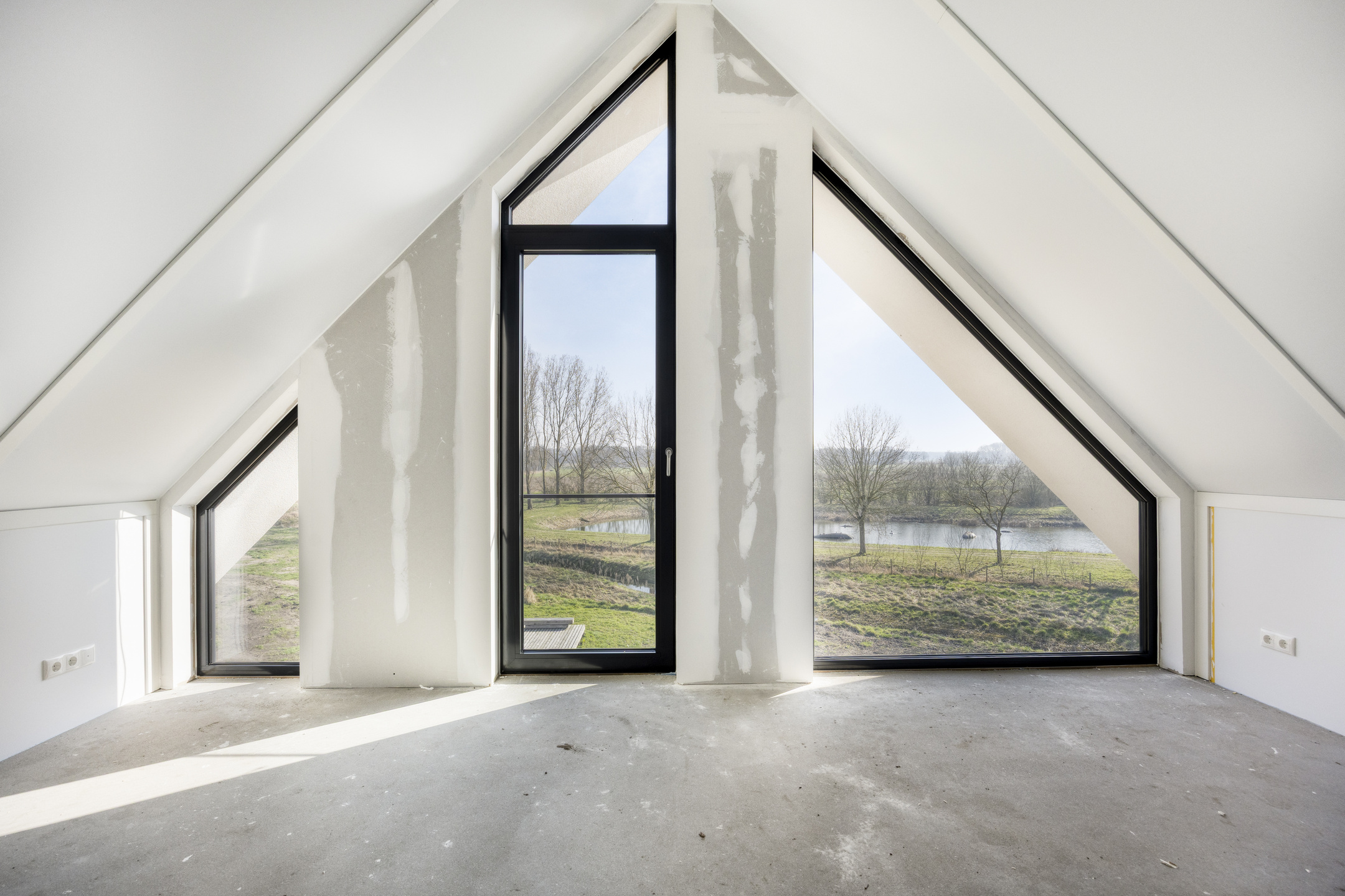 With this XL villa, you get a living room featuring a ‘glass’ extension. The XL living room is twelve meters wide and partly seven to eight meters deep, and features almost panoramic windows and a house-wide terrace. Whether you are sitting on the terrace or on the sofa, you always enjoy a breathtakingly beautiful view of the Beekdal and nature. Upstairs, you also have plenty of space. There are three spacious bedrooms on the first floor. And as you might expect, the master bedroom has an en-suite bathroom. Under the atmospheric sloping roof on the second floor, there are two more bedrooms and a second bathroom.
