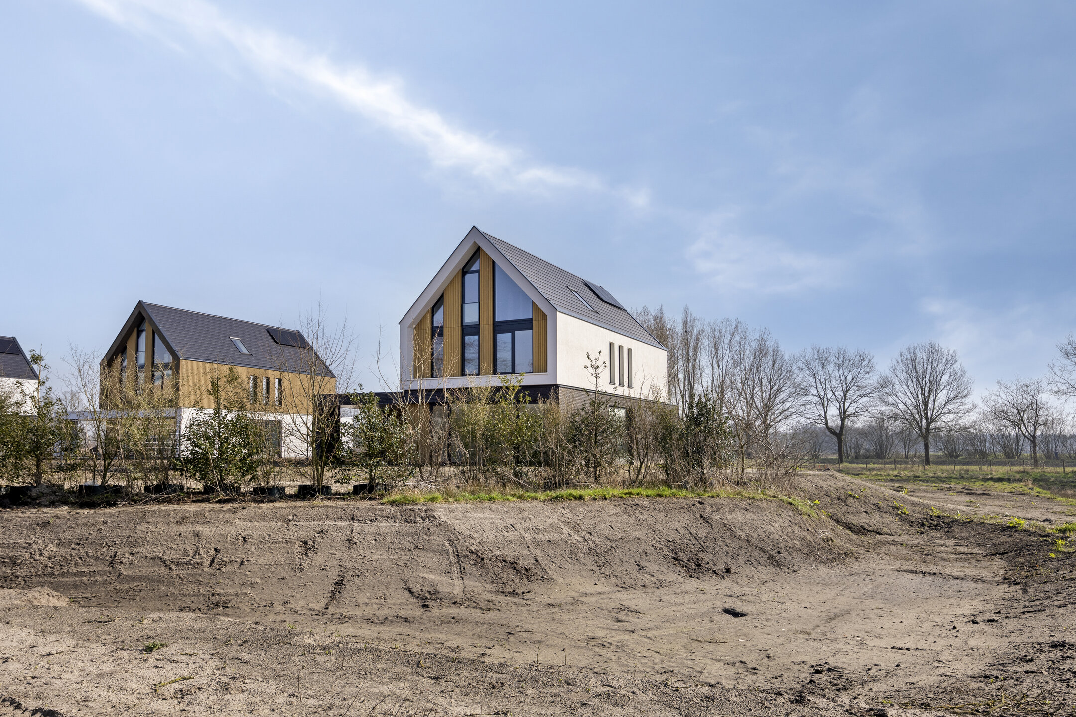 The flood garden on the edge of Land van Anna is a communal piece of hay meadow that belongs exclusively to the ten detached villas and is occasionally flooded by excess (rain)water in the Nieuwe Leij. This creates the botanical richness of a dry to wet flower-rich meadow.