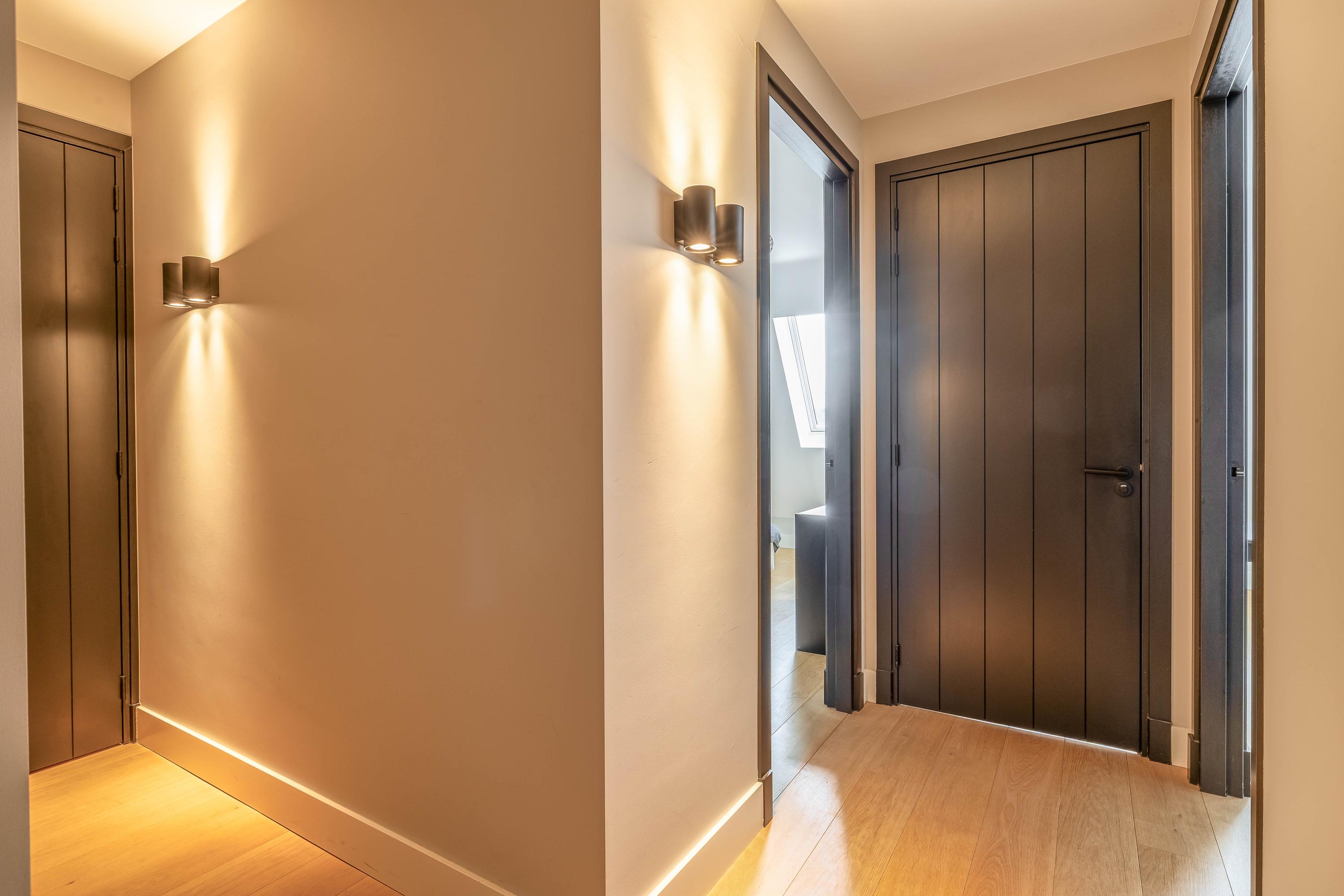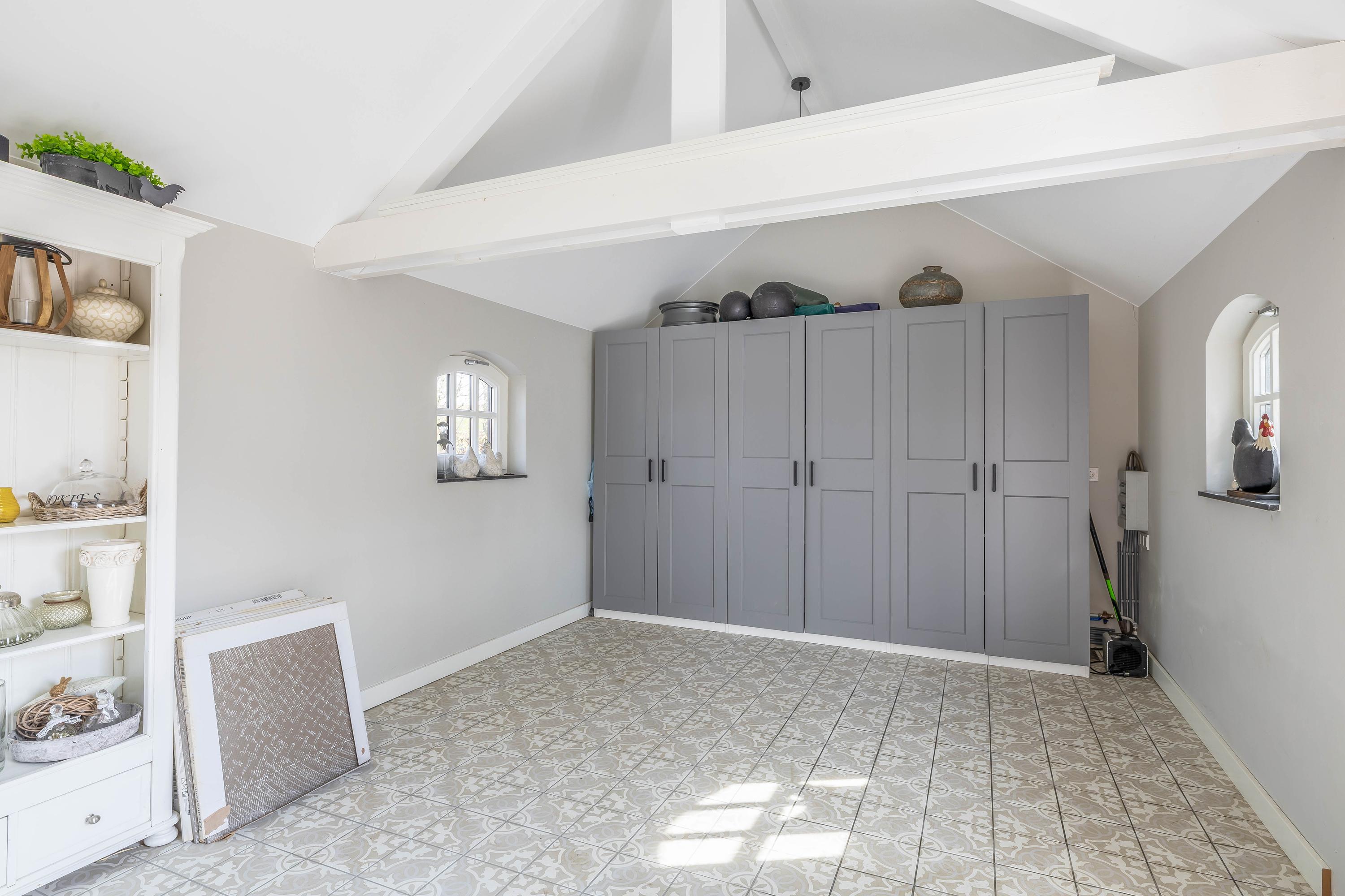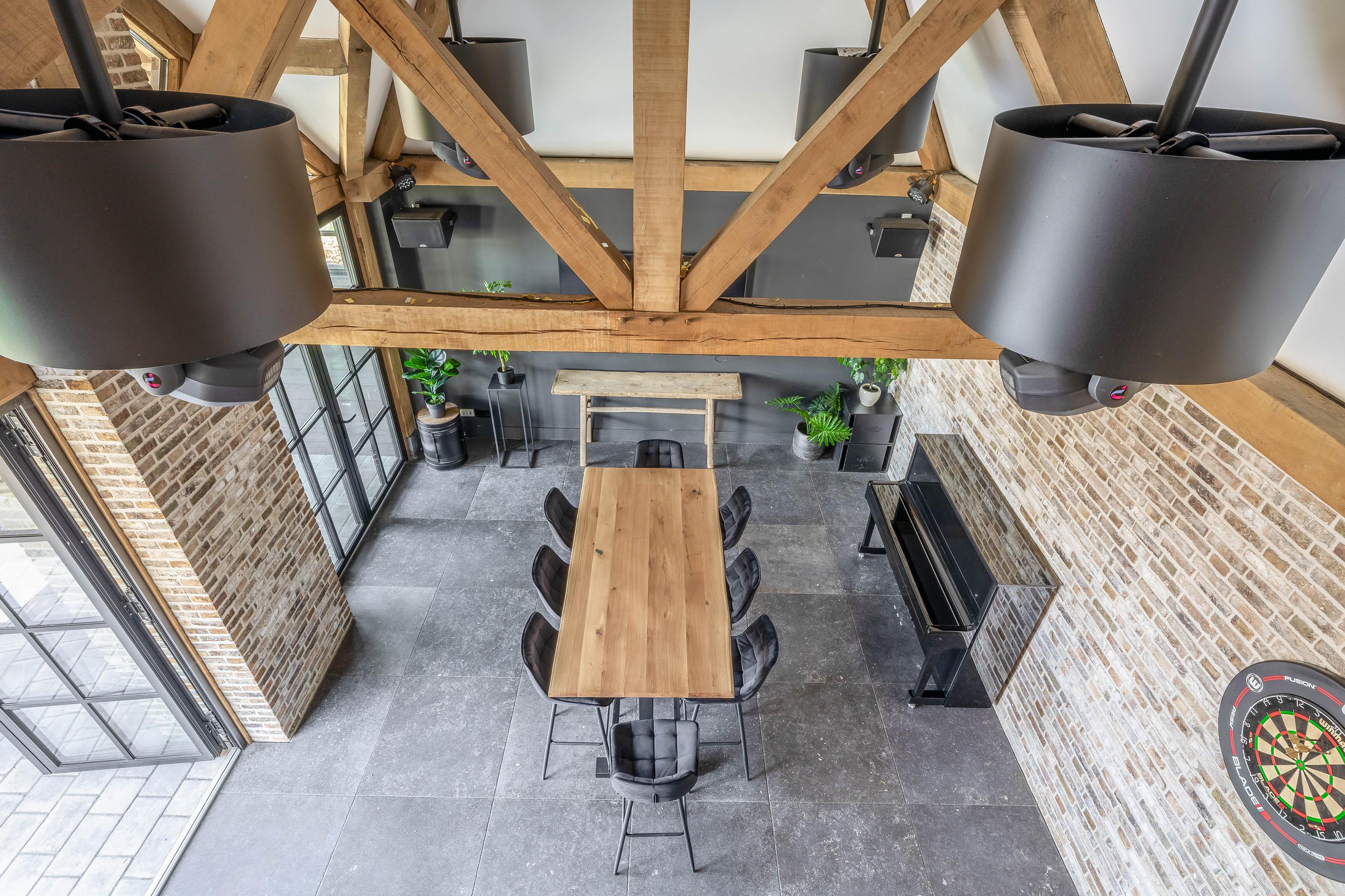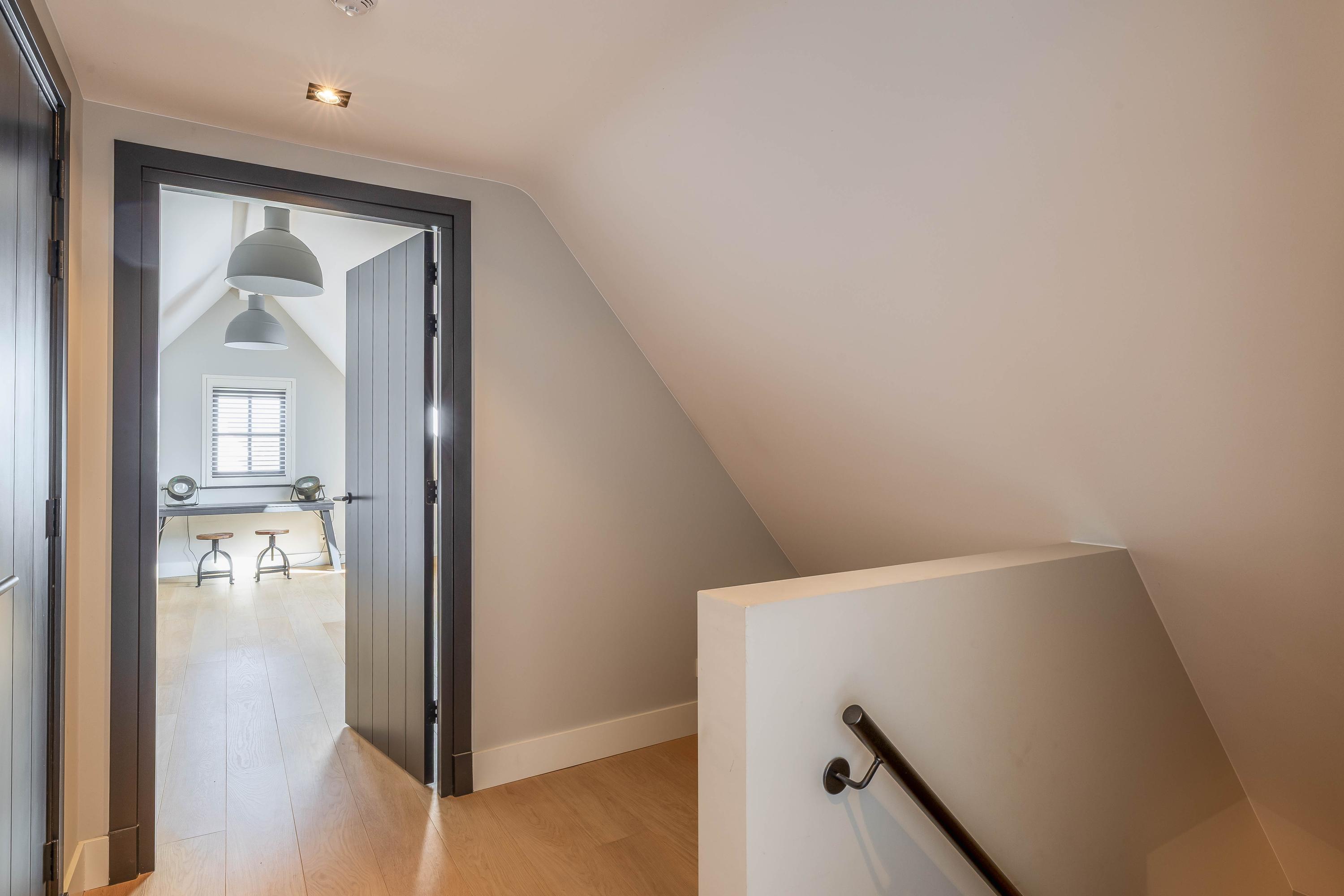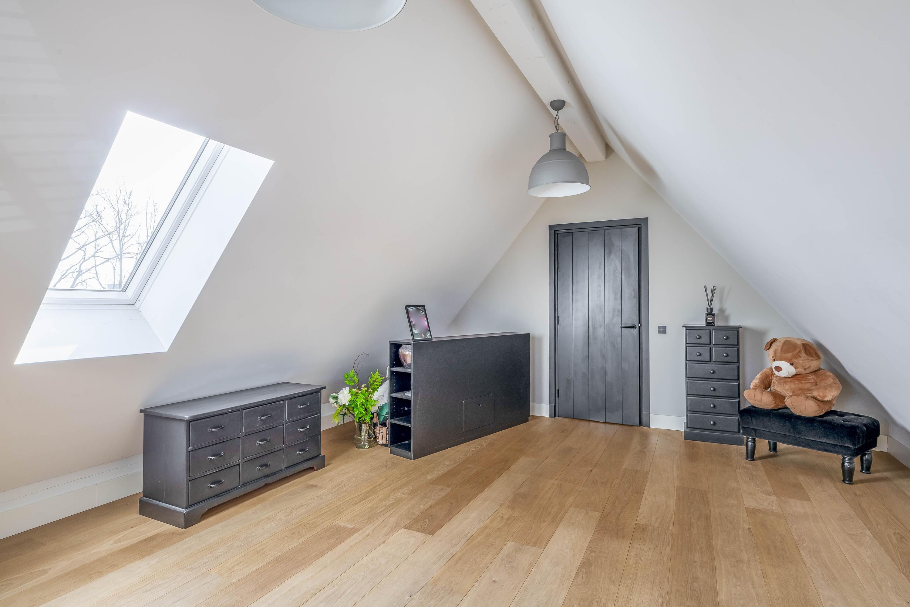 This farmhouse offers you a rare opportunity to live in an oasis of luxury, comfort, and privacy. With attention to detail, high-quality materials, and a thoughtful layout, every floor showcases a cohesive design where ceramic tiles, an oak herringbone floor, and meticulously applied stucco unite to form a warm and elegant whole. The seamlessly coordinated materials and finishes give every space a refined, consistent look.