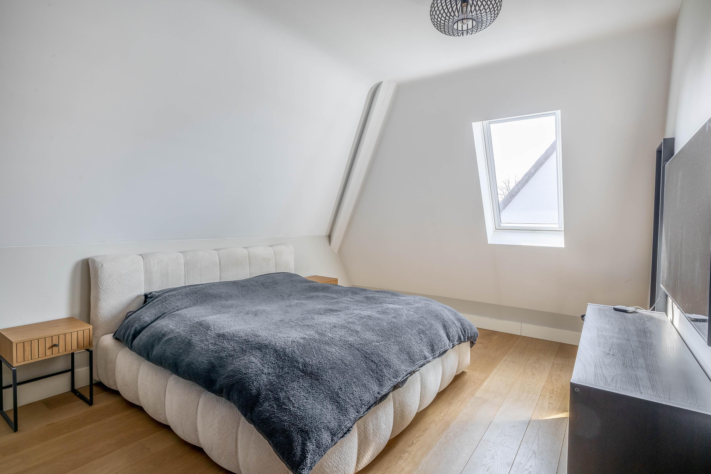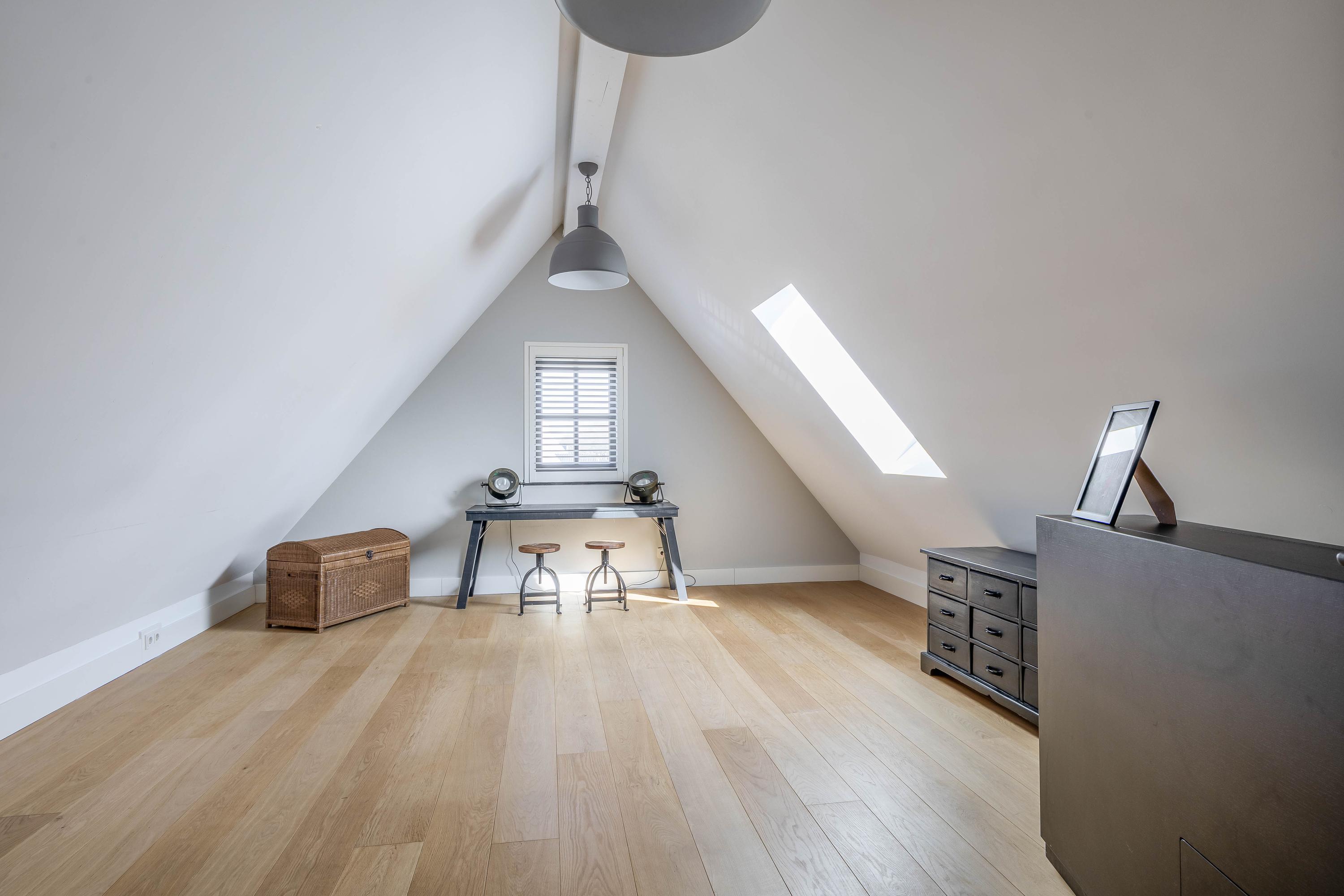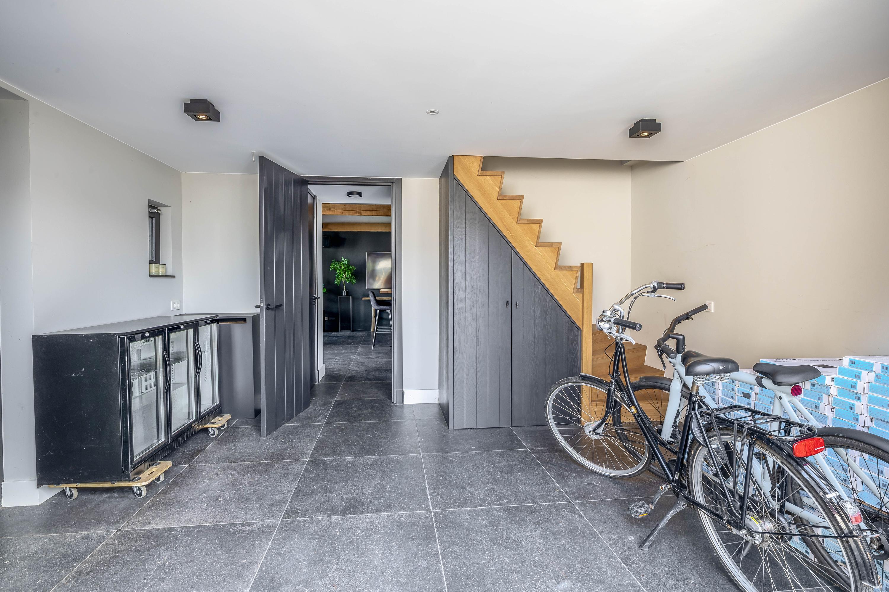 The adjacent (fully insulated) garden shed, with a high continuous ceiling, is perfect for use as a chill-out space, studio, or extra office. The garden shed is styled in harmony with the house. The garden, landscaped by an architect, is a true work of art with rich borders, elegant hedges, atmospheric pathways, and lush lawns. The carefully chosen boundary walls and playful materials create a dynamic and inviting outdoor experience. Not to mention the water paradise, which flows into a rustic pond area, creating a perfect balance between luxury and nature.