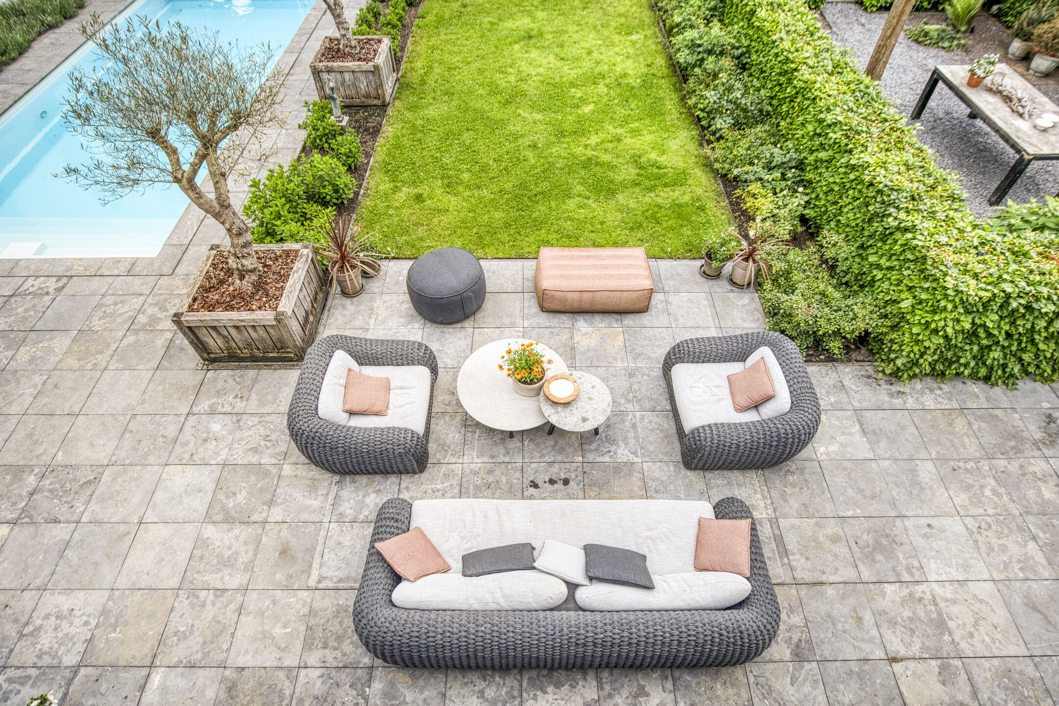 Bij binnenkomst valt direct de imposante entree op: licht en ruimte komen u tegemoet, een voorbode van wat deze villa te bieden heeft. De halfopen living vormt het hart van het huis, met prachtig zicht op de tuin en openslaande deuren naar het terras.
