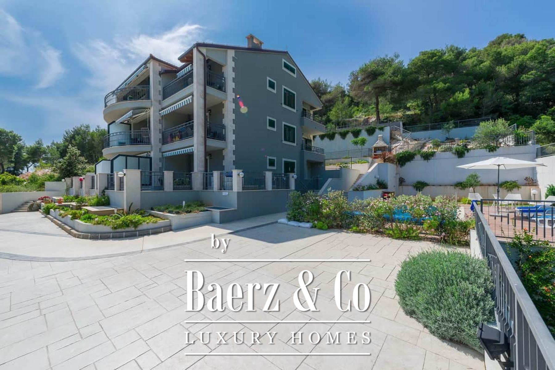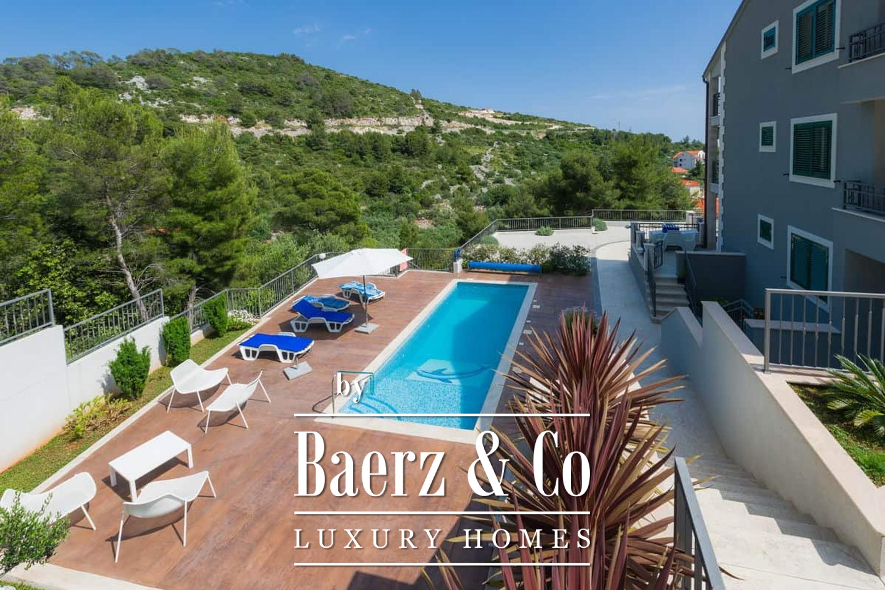 Outdoors, the landscaped plot of 1,012 m² is anchored by a shared swimming pool, surrounded by mature greenery. The peaceful environment, coupled with extraordinary proximity to the sea and beach, sets this property apart for those seeking both investment potential and a private Mediterranean refuge. Apartment house Hvar Milna stands as a distinct opportunity in a coveted coastal enclave.
