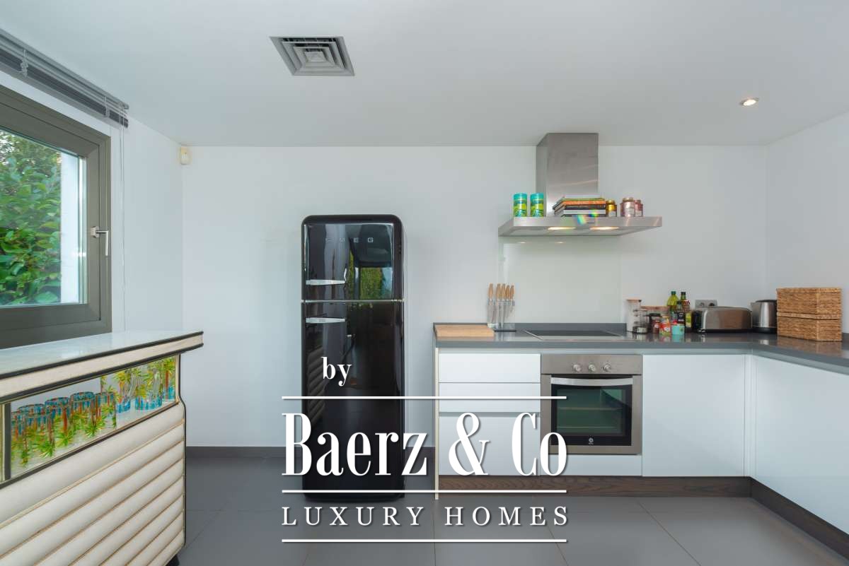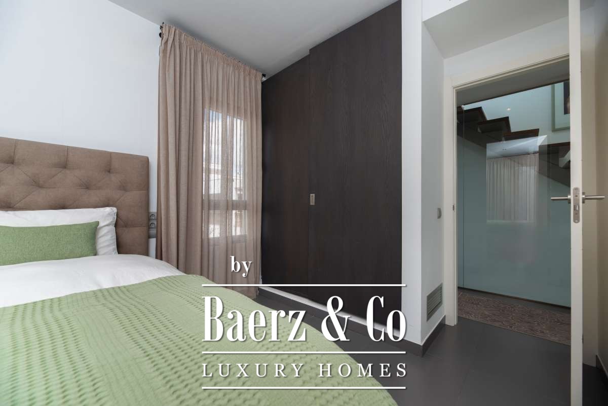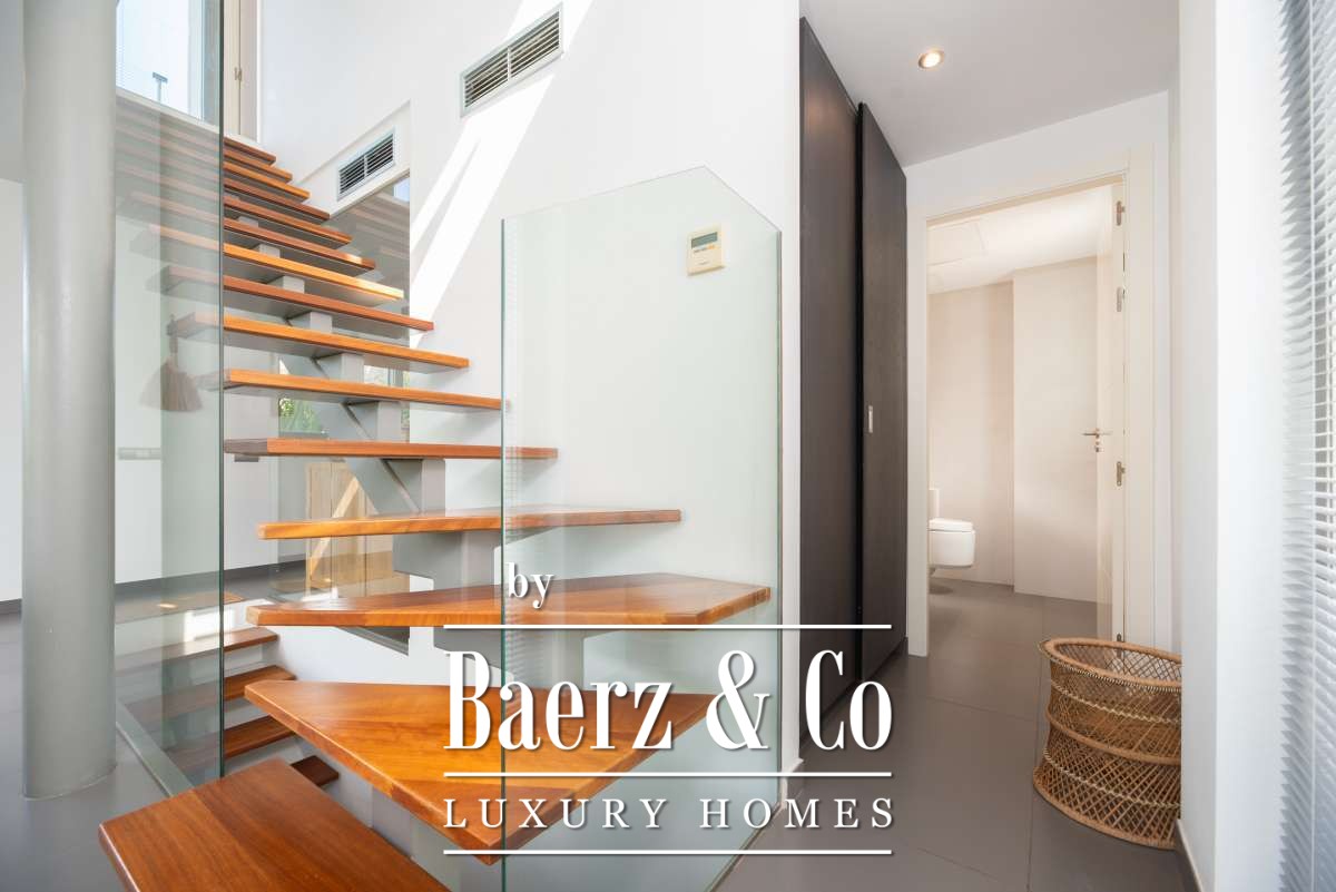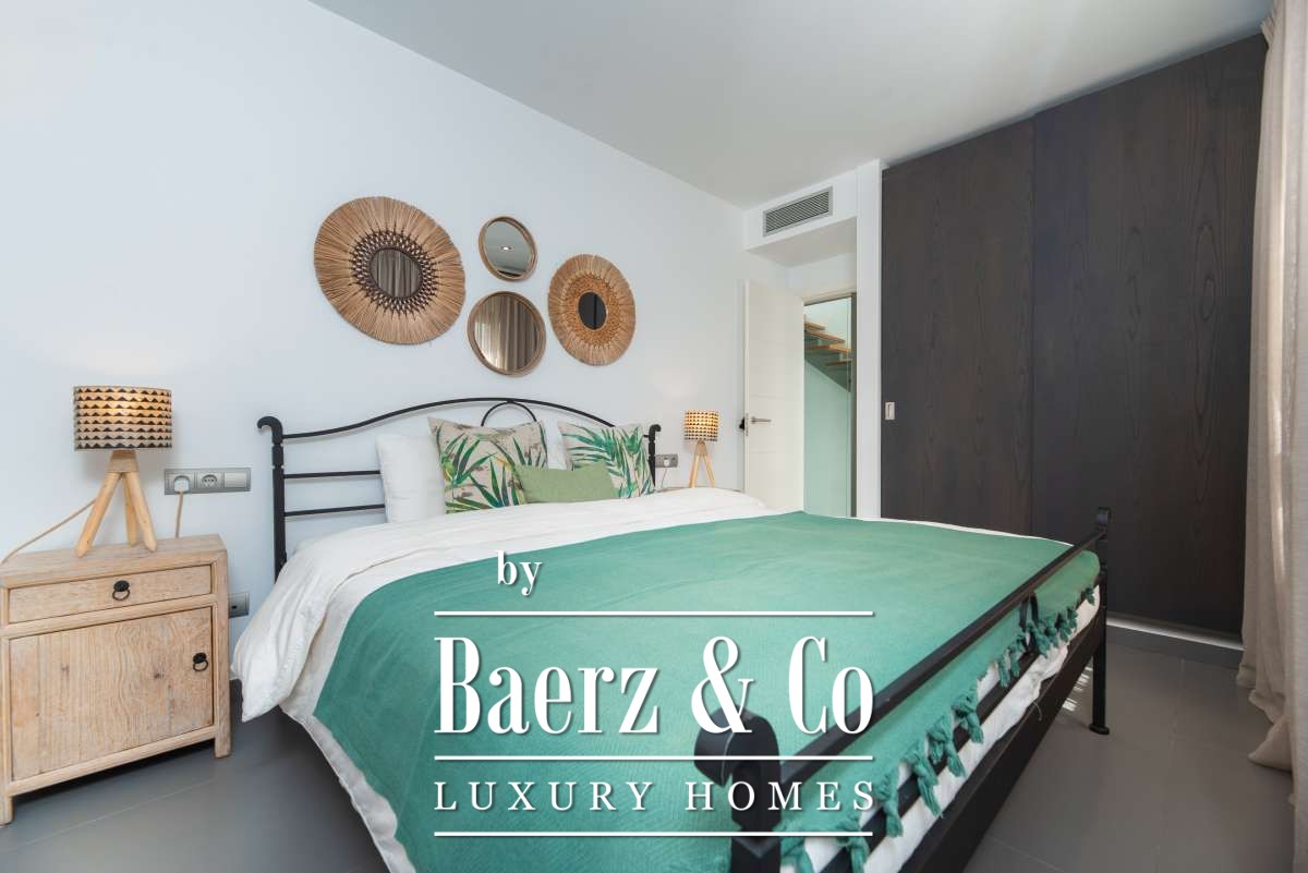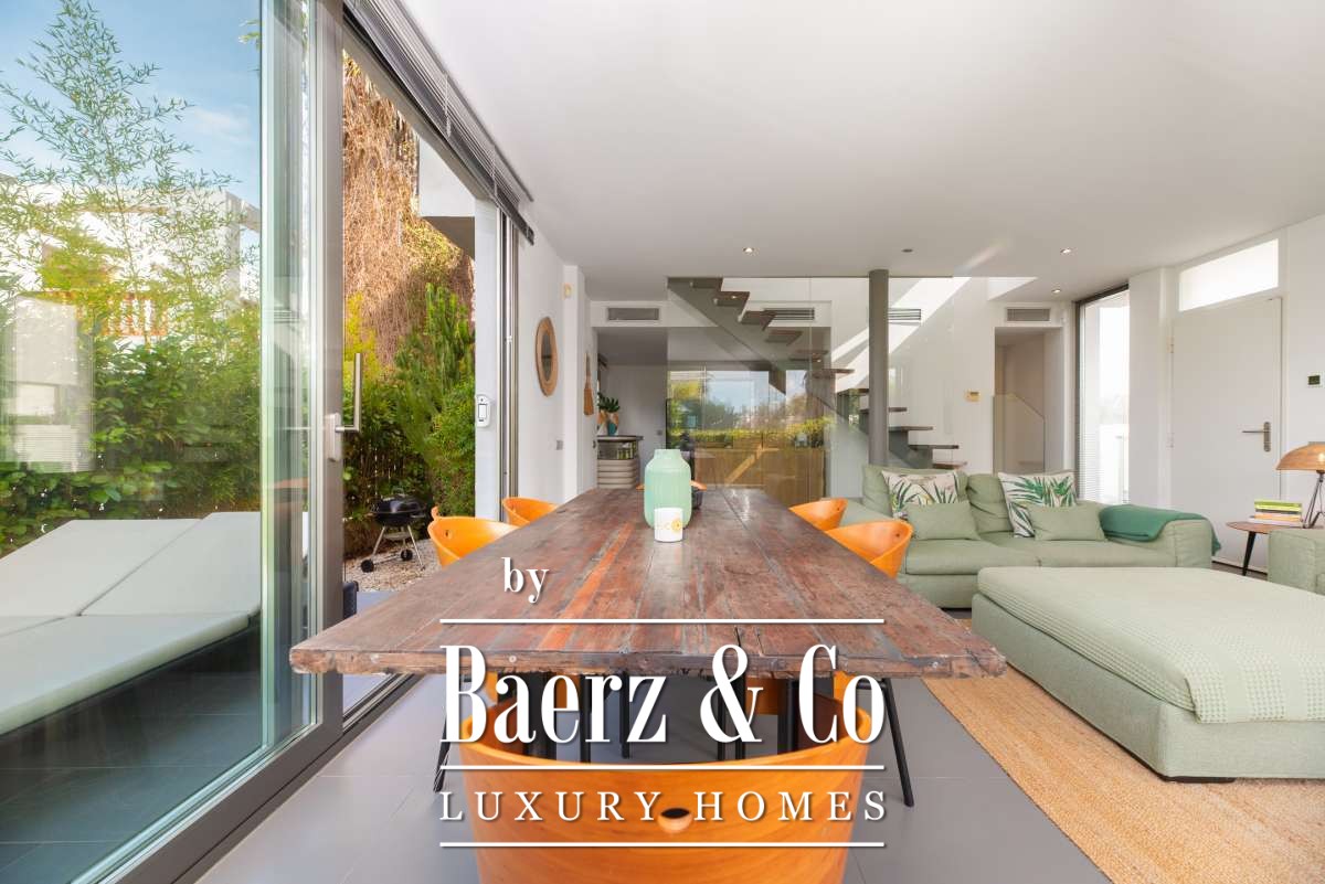 The SurroundingsLocated in the charming village of Jesús, this modern townhouse offers the perfect balance between tranquility and accessibility. Jesús is a vibrant and popular residential area with amenities open all year round, making it ideal for those seeking a permanent home or long-term stay in Ibiza. Within just a few minutes you can reach Ibiza Town, the exclusive Marina Botafoch and the beloved beaches of Talamanca and S’Estanyol. The village itself exudes Mediterranean charm with cosy restaurants, stylish cafés and boutique shops all within walking distance. Here you can enjoy a relaxed living environment while the energy and charm of the island are always close by.The TownhouseThis 178 m² townhouse with 120 m² of outdoor space is designed for comfortable and atmospheric living. On the ground floor, you are welcomed by a bright open-plan living area with warm materials and large sliding doors that beautifully connect indoor and outdoor living. The adjoining dining area and fully equipped kitchen create an inviting space for relaxed meals and social gatherings. Completing this level is a separate guest toilet and direct access to the private garage, ideal for parking and extra storage.On the first floor, you will find three comfortable bedrooms. The master