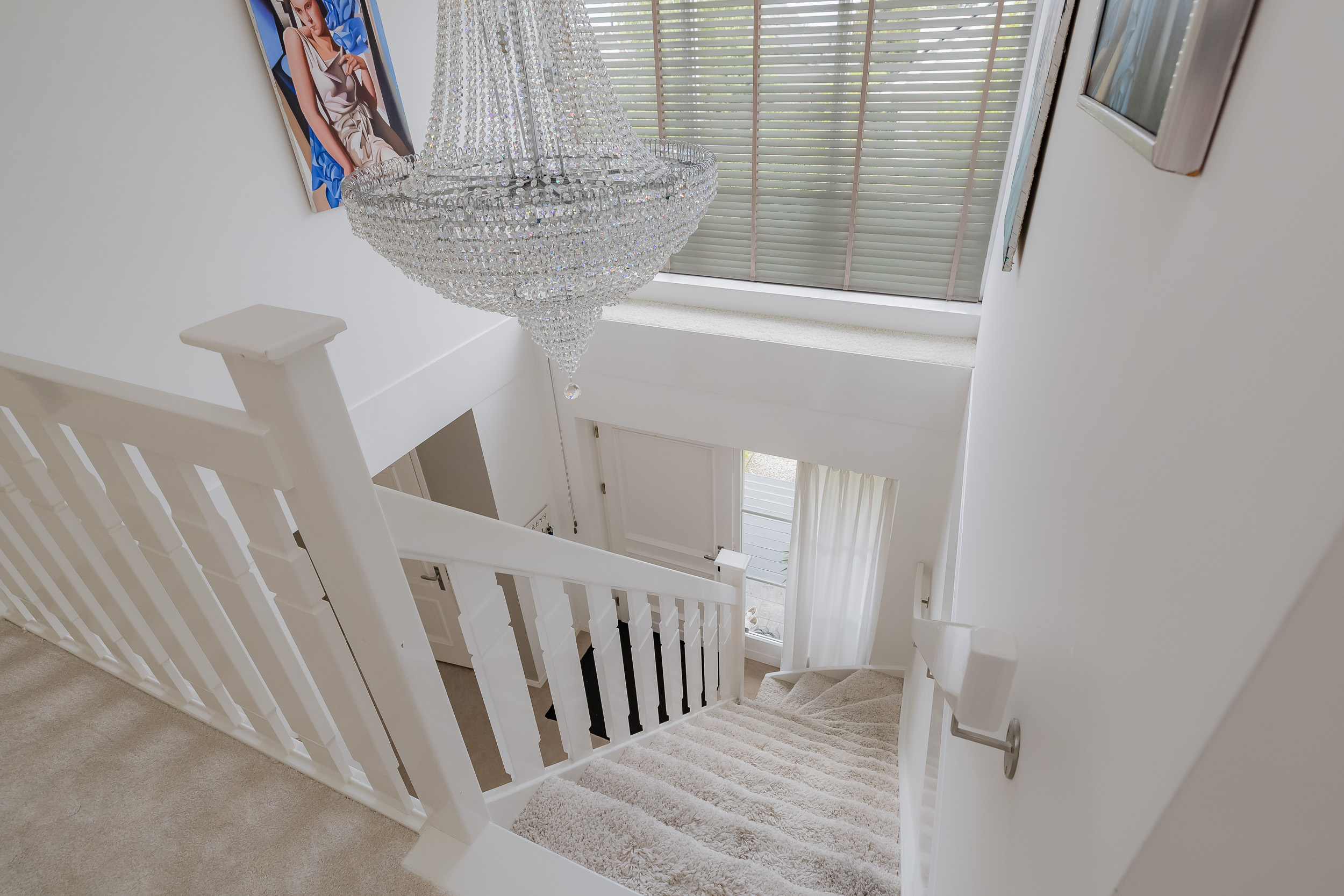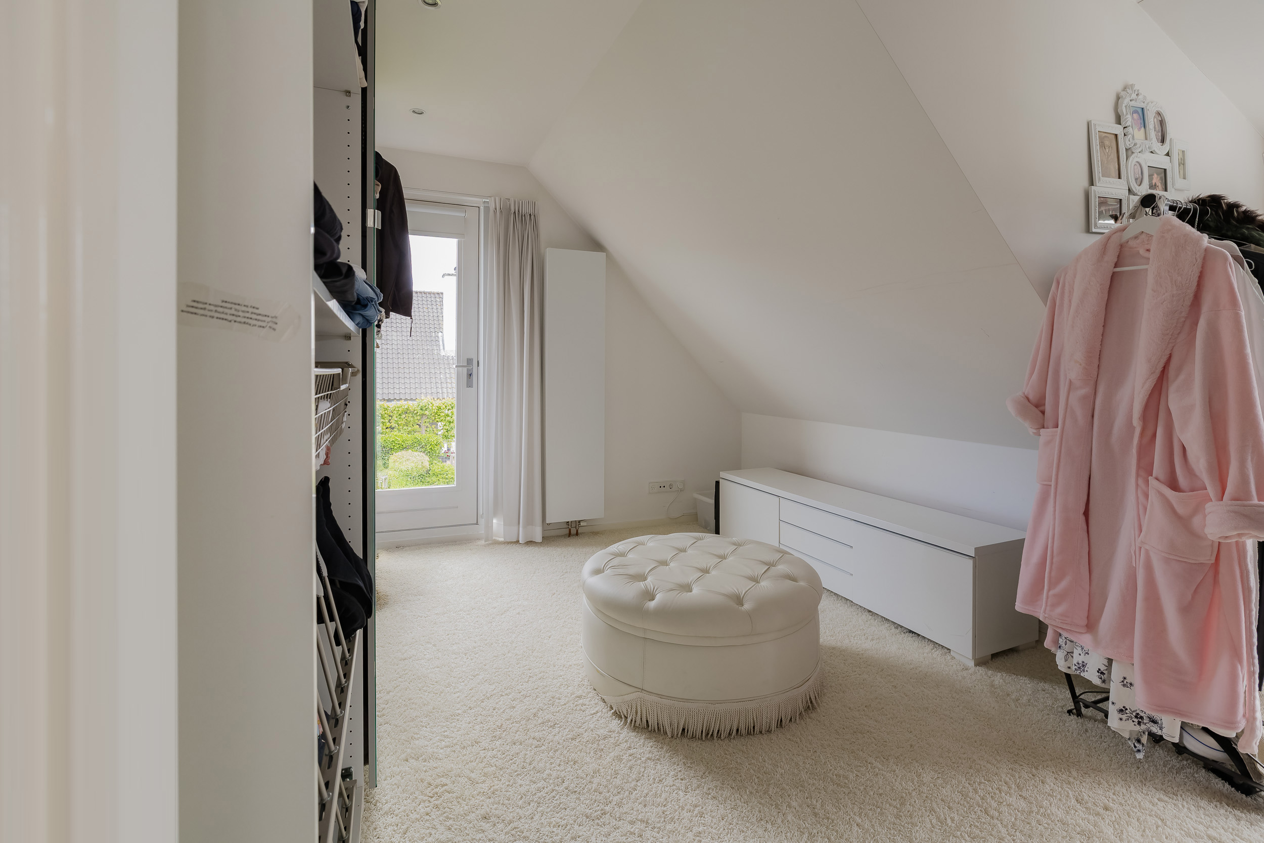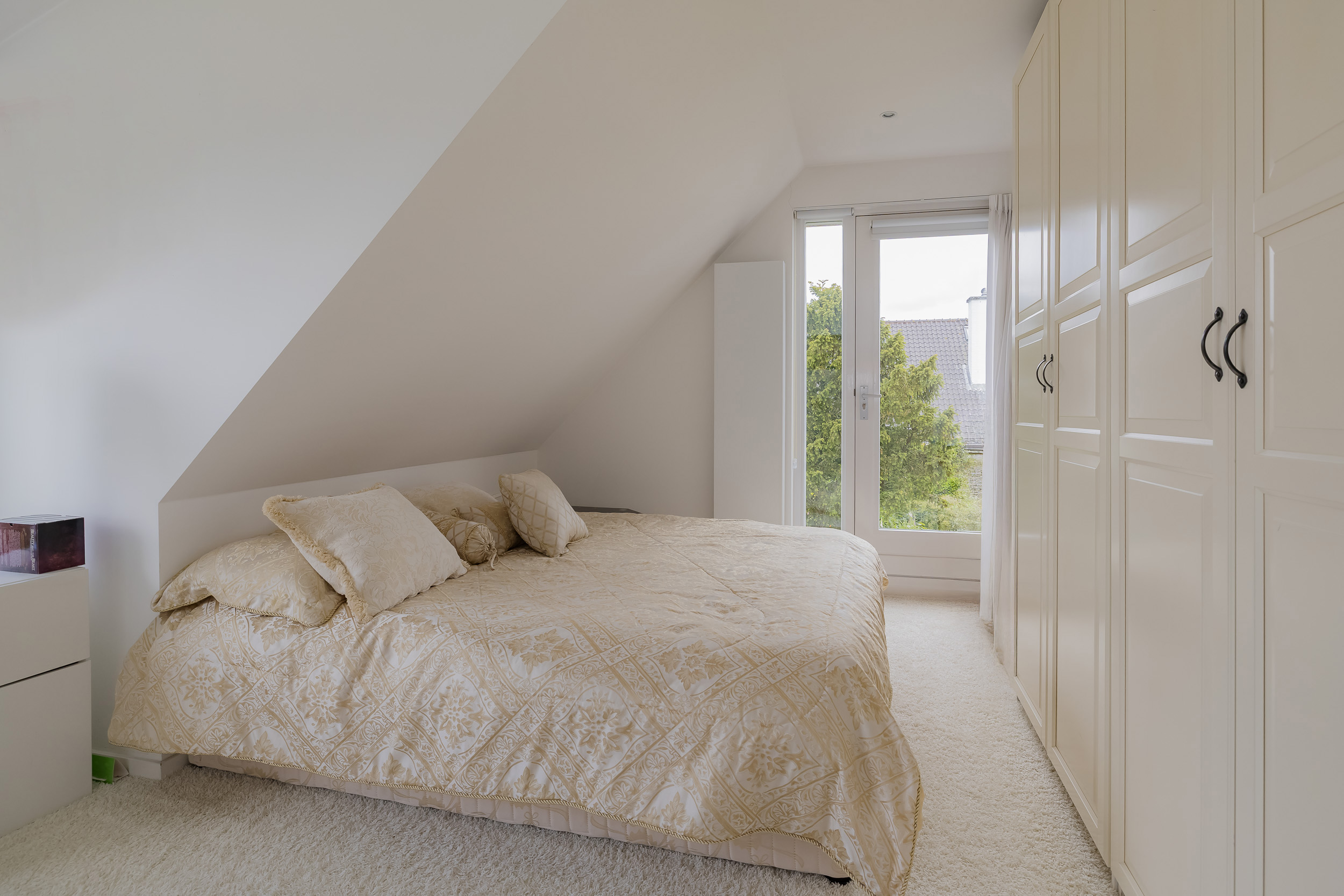On the second floor you will find access to the attic, three spacious bedrooms and a bathroom. All rooms have a dormer window for extra headroom and a spacious feeling and the doors have a charming French balcony. The luxurious bathroom, accessible from both the master bedroom and the landing, is a place of relaxation that includes a soaking tub/jacuzzi.