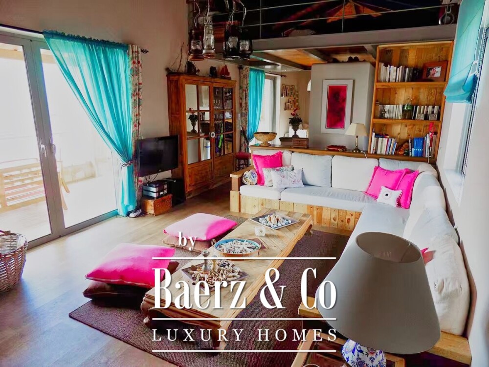 The considered layout reveals three bedrooms with built-in wardrobes and two bathrooms, a spacious living and dining area centered around a fireplace, a fully fitted kitchen, and an adaptable loft space. Every room quietly frames the interplay of light and views, while industrial accents balance comfort with contemporary rigor. Outdoors, a private pool, landscaped gardens, and a dedicated BBQ area invite moments of leisure and entertaining against a coastal backdrop.