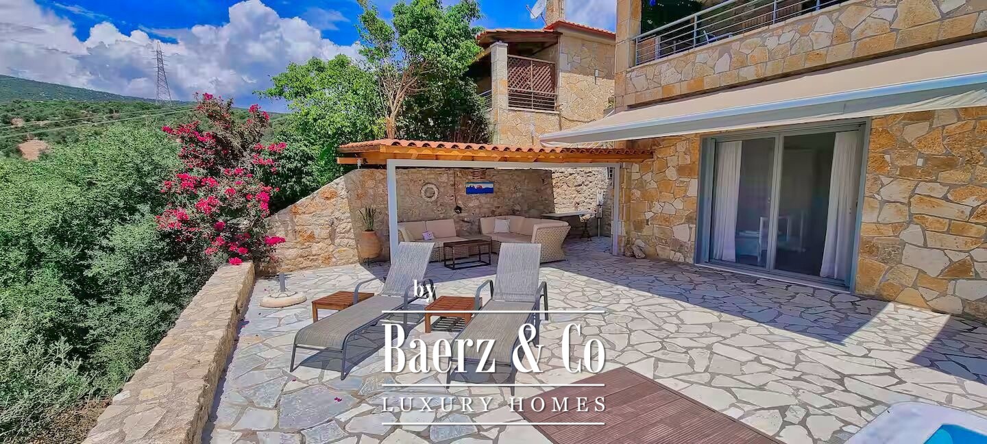 Double-glazed windows, energy-efficient aluminum frames, and a tailored heating system with radiators assure a sense of year-round comfort. Added conveniences include a security alarm, private parking, and storage. With its privileged proximity to Kiveri, Astros, and the storied town of Nafplio, this luxury villa for sale in North Kinouria represents a rare opportunity for those seeking discretion, provenance, and direct access to the Mediterranean rhythm.