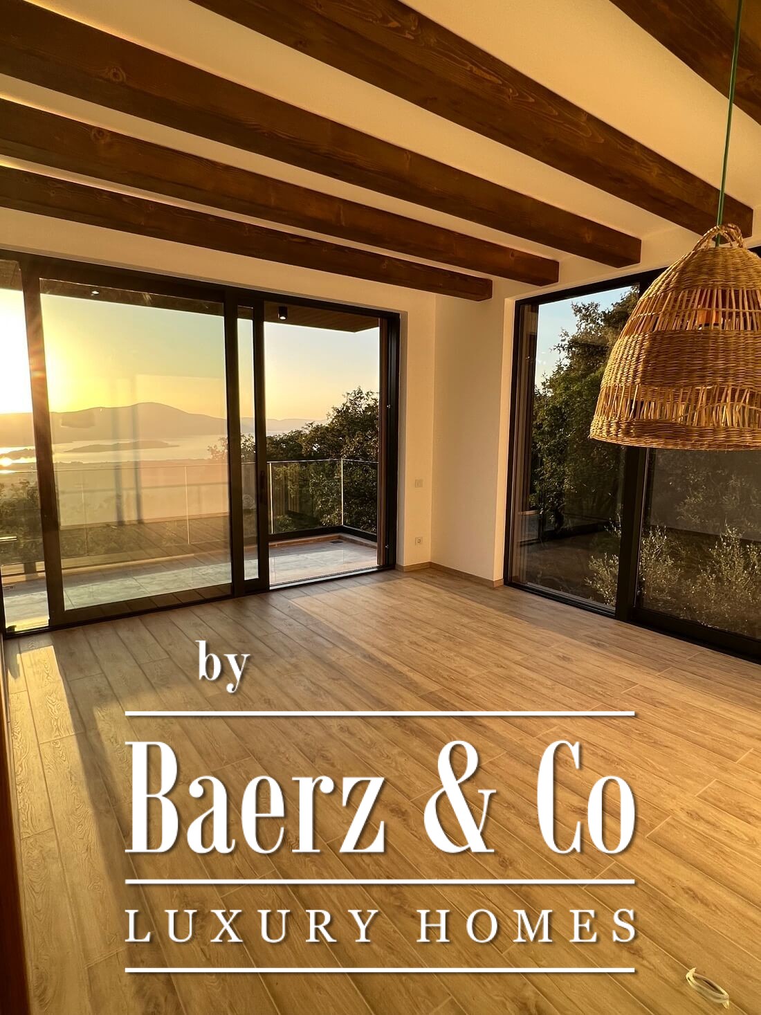 A new modern family villa with three bedrooms, terraces with panoramic sea views and with a rooftop pool is located in area on the coast of the Tivat Bay, between Kotor & Tivat. A unique location with its microclimate and beautiful nature on a hill above the Tivat airport, its south-western orientation provides sunshine all year round. A quiet and cozy area is protected from the tourist hustle and bustle, while it is only a 10-minute drive from the center of Tivat and Kotor, 5 minutes from the main shopping centres, the international Cambridge school and the airport. This place is very convenient for both permanent living and vacations.