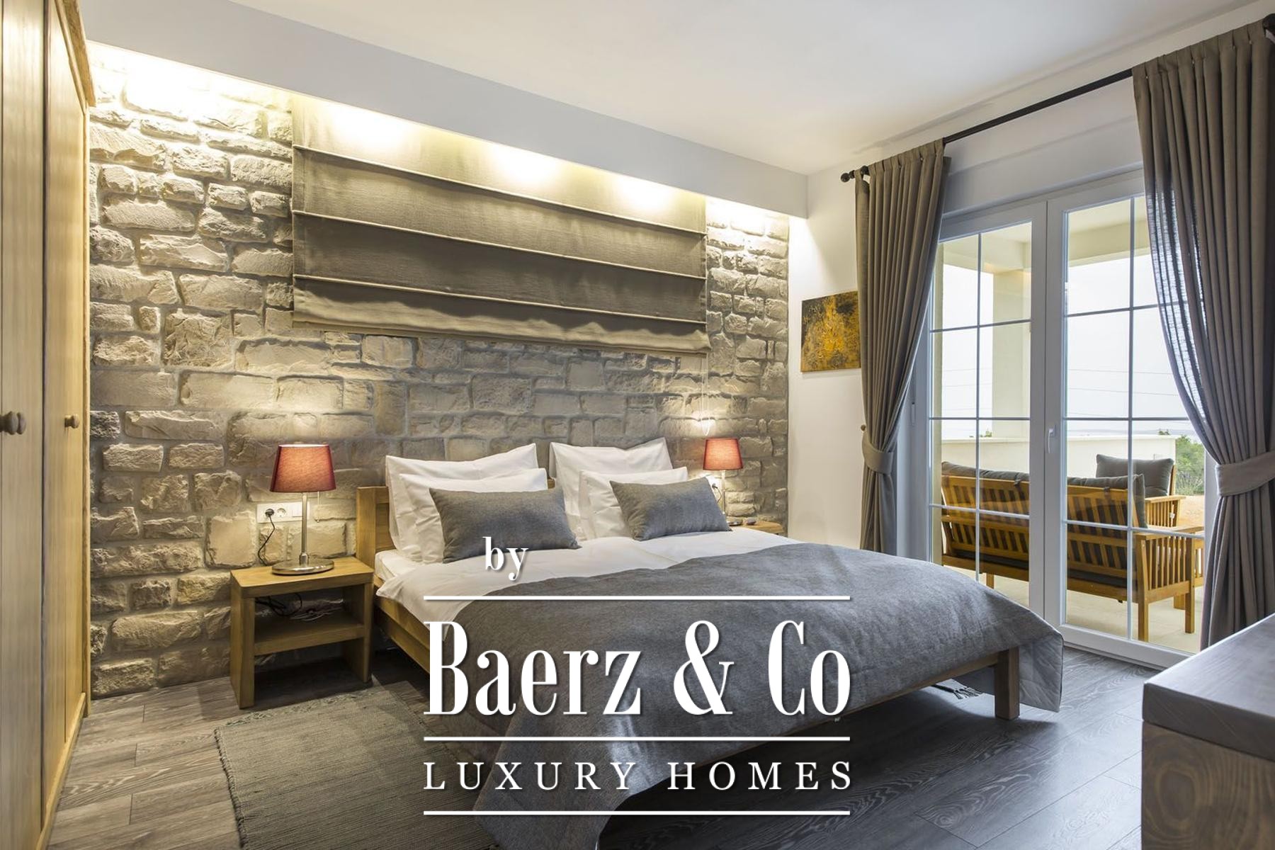 sofas, a Smart TV and a Hi-Fi system, a beautiful fireplace and an underfloor heating system. There is also a nice bar for spending pleasant moments with family and friends in the evening. The real luxury of the villa is the indoor wellness area with a sauna, shower, toilet and heated walls. In the anteroom of the sauna there is a Laconium with a heated relaxation bench and built-in speakers through which you can enjoy soothing music during your stay in the spa area.The villa is located on a 990 m2 large, completely fenced property. From the living room on the ground floor of the villa there is an exit to a spacious, partially covered terrace with an overflow pool of 58 m2, equipped with a massage waterfall, counter-current swimming, a shallow area for children, wide stairs and an underwater bench.The villa's outdoor area also features a 6-person jacuzzi, where relaxing at sunset is a special experience. The outdoor area also includes a covered summer kitchen with a large barbecue, a bar and a massive table and wooden benches, as well as a comfortable lounge area. An additional advantage of the villa is the electric vehicle charger.For additional information and to organize a tour, please contact us.