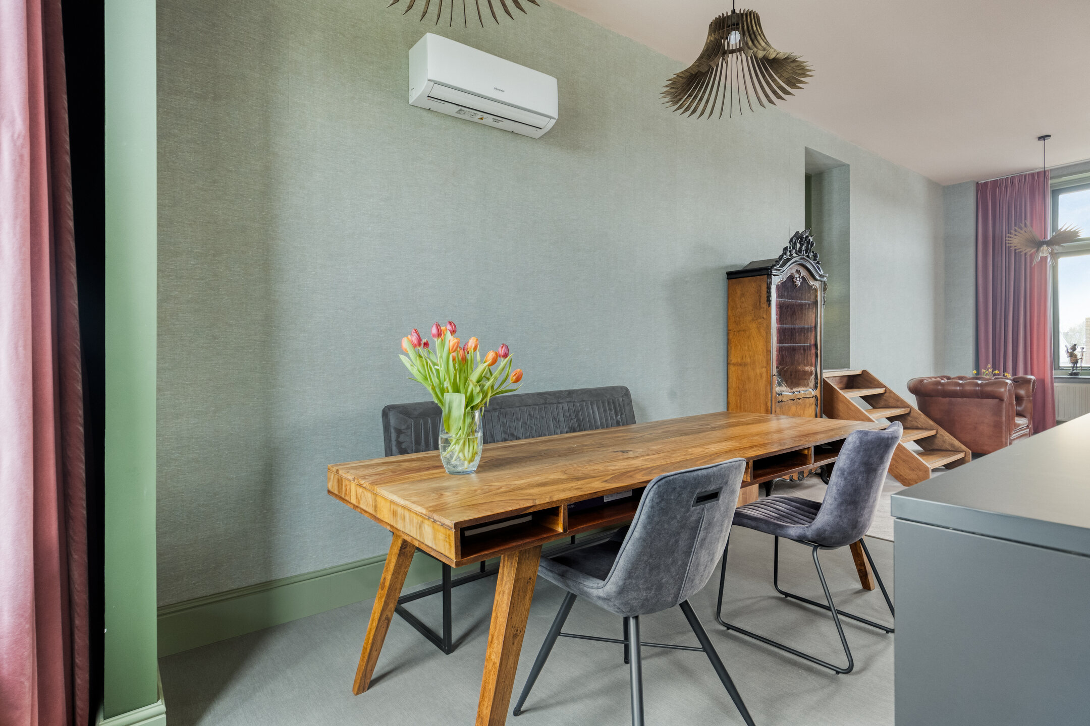 The property is equipped with central heating. The high-efficiency combi boilers are located in the laundry room on the second floor: one boiler (Nefit, 2020) provides heating, and one (Remeha Quinta) supplies hot water