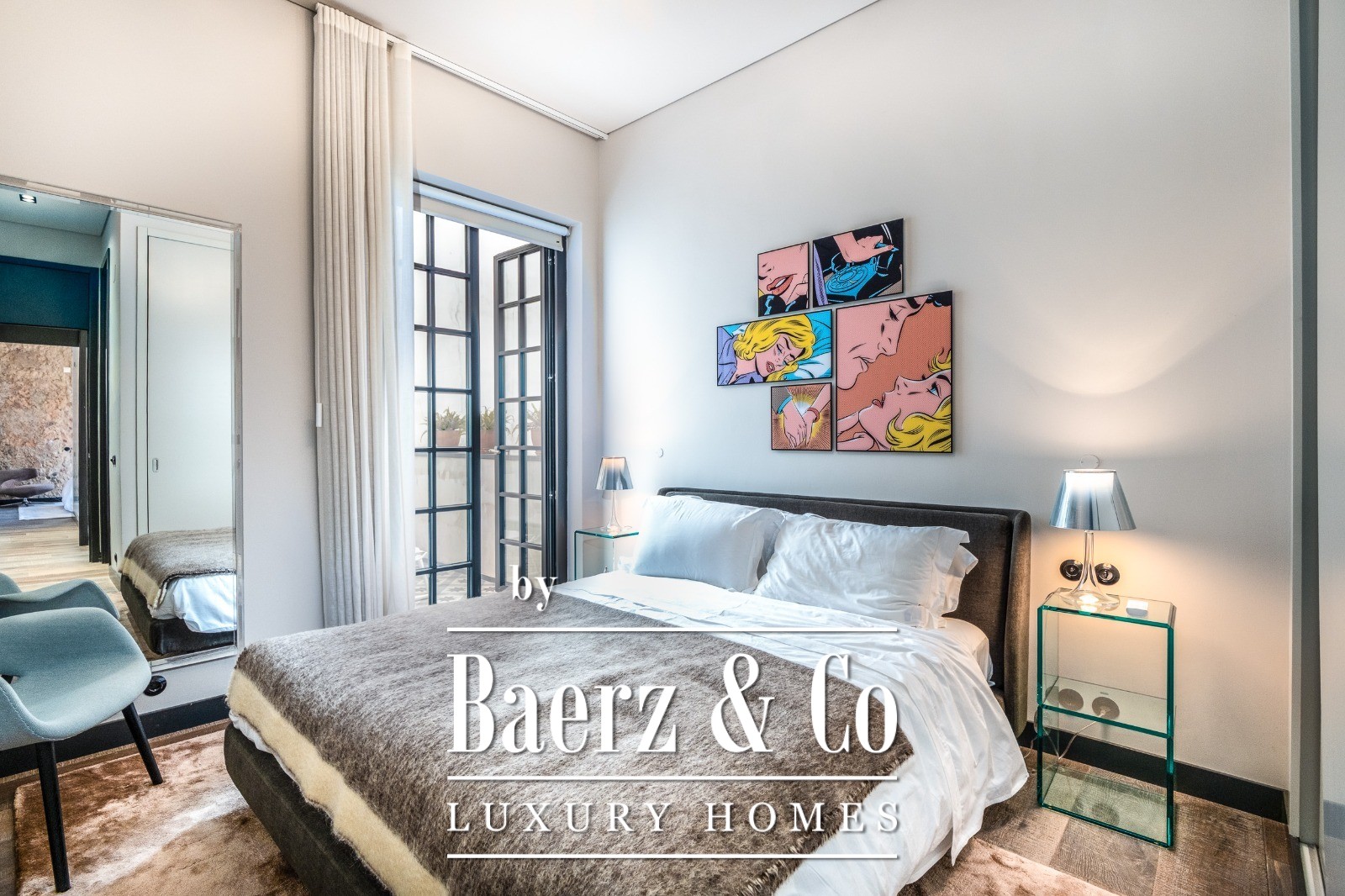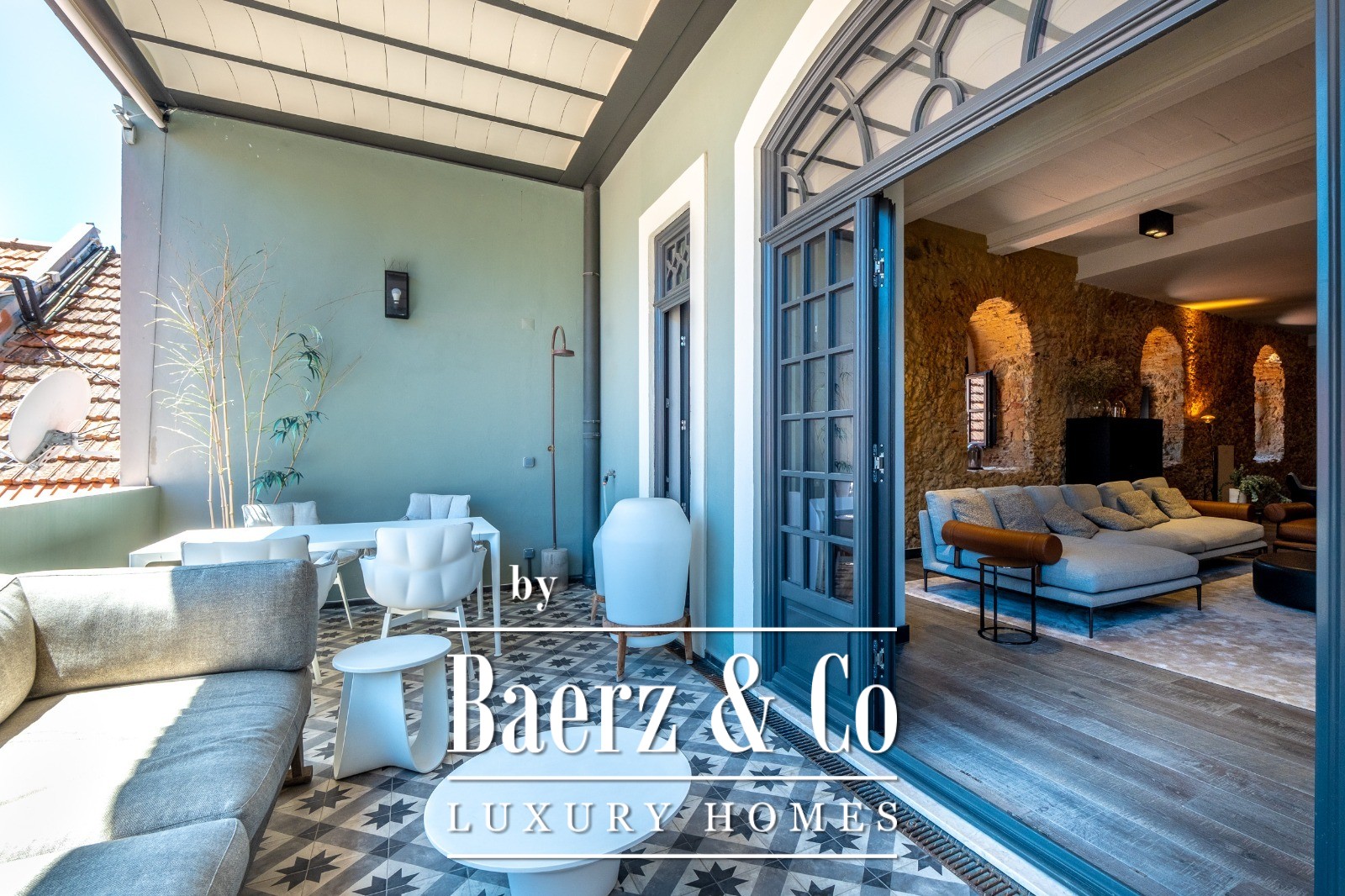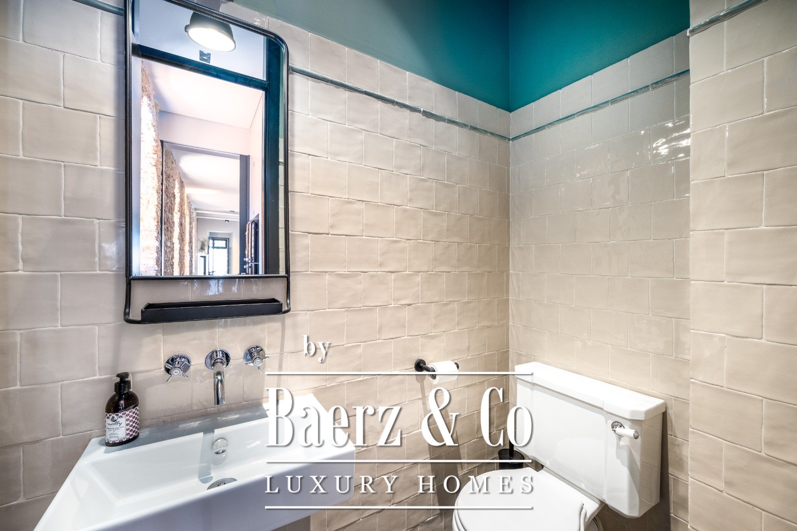 Located on a quiet cul-de-sac in Cais do Sodré, one of Lisbon’s most vibrant and historic neighborhoods, this 173 m² two-bedroom apartment offers a loft-style design with a distinct contemporary touch. Set on the second floor of a 19th-century building with elevator access, it underwent a full renovation in 2019 with meticulous attention to detail and high-quality materials.The generous living area impresses with 3.7 m high ceilings, a striking 14 m exposed stone wall, and large arched windows that fill the space with natural light thanks to its south and east orientation. The kitchen is seamlessly integrated with the living room, combining design and functionality with stainless steel countertops, oak cabinetry, and statement lighting.The living experience extends