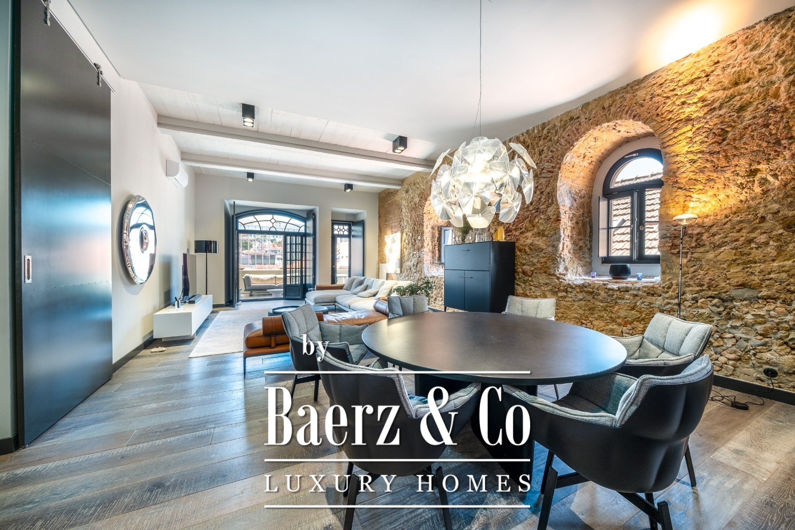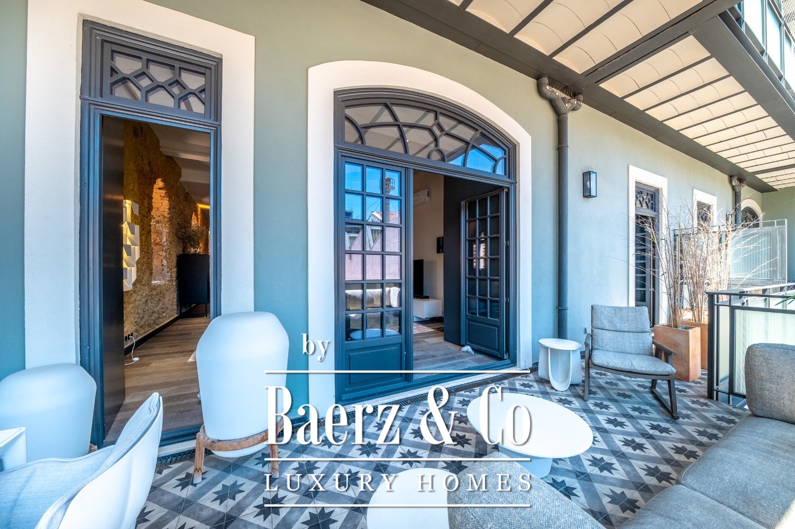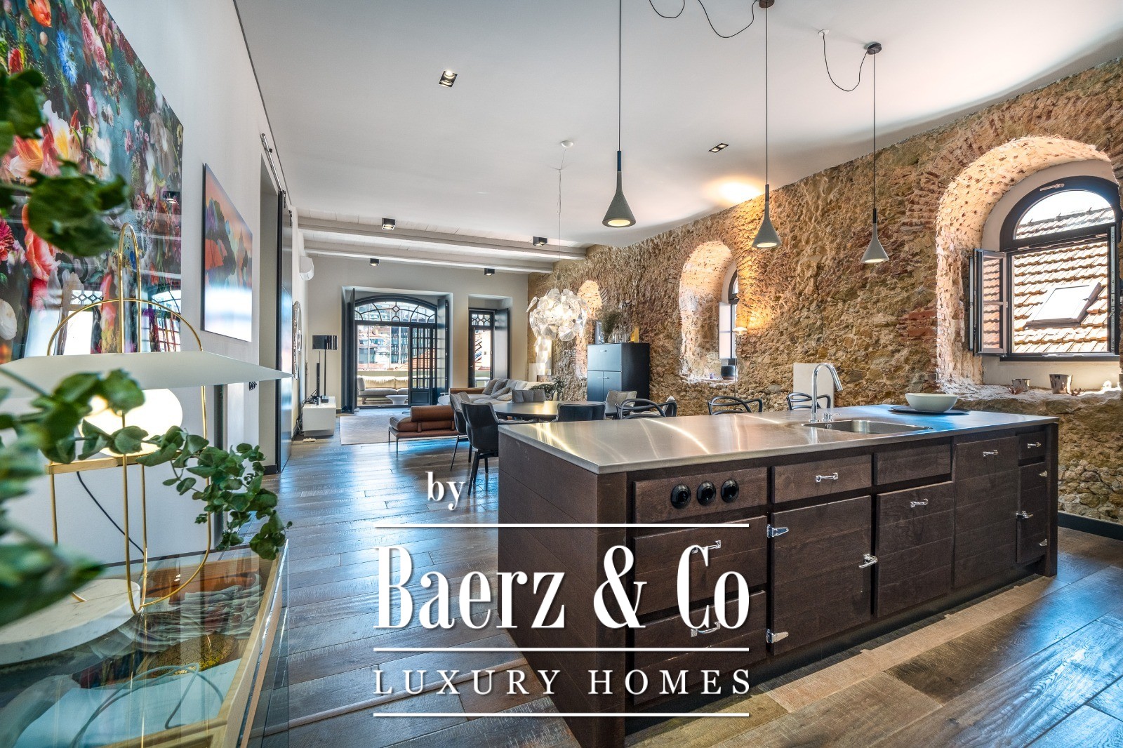 Located on a quiet cul-de-sac in Cais do Sodré, one of Lisbon’s most vibrant and historic neighborhoods, this 173 m² two-bedroom apartment offers a loft-style design with a distinct contemporary touch. Set on the second floor of a 19th-century building with elevator access, it underwent a full renovation in 2019 with meticulous attention to detail and high-quality materials.The generous living area impresses with 3.7 m high ceilings, a striking 14 m exposed stone wall, and large arched windows that fill the space with natural light thanks to its south and east orientation. The kitchen is seamlessly integrated with the living room, combining design and functionality with stainless steel countertops, oak cabinetry, and statement lighting.The living experience extends