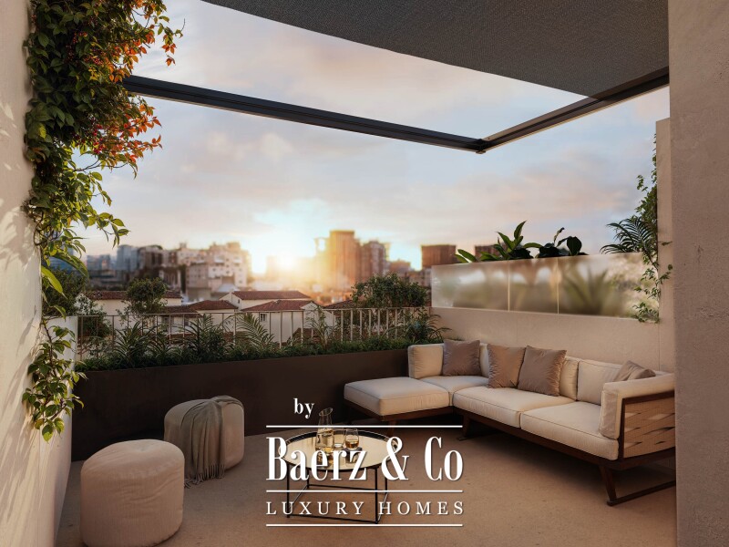 Four bedrooms and three bathrooms reflect a thoughtful layout that balances communal openness with privacy. Air conditioning, garage, storage room, laundry room, pre-installation for an elevator, and electric car charging further enhance convenience. Views sweep across the city, urban surroundings, and the patio, offering a contemporary yet discreet residential context in Málaga. This is an invitation to refined living, where architectural clarity meets the Mediterranean climate.