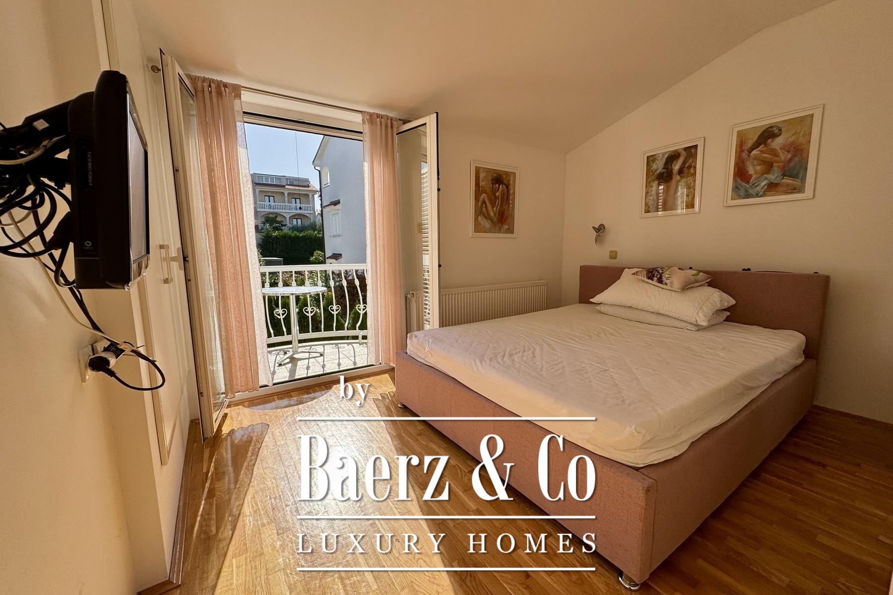 apartment consists of a bedroom, bathroom, kitchen, living room and terrace.Another additional apartment is located in the basement of the house and has two bedrooms, a kitchen, a bathroom and a storage room.There is also a garage in the yard of the house, and the garden itself is full of beautiful Mediterranean plants.Four more cars can be parked in the yard.For any additional information, feel free to contact us!