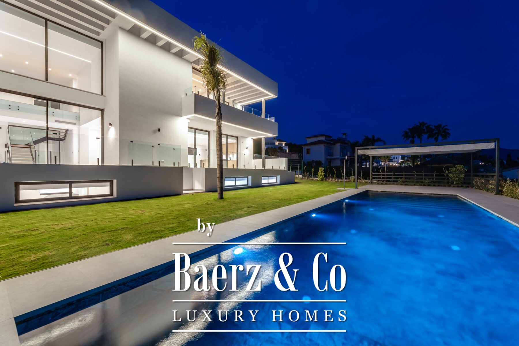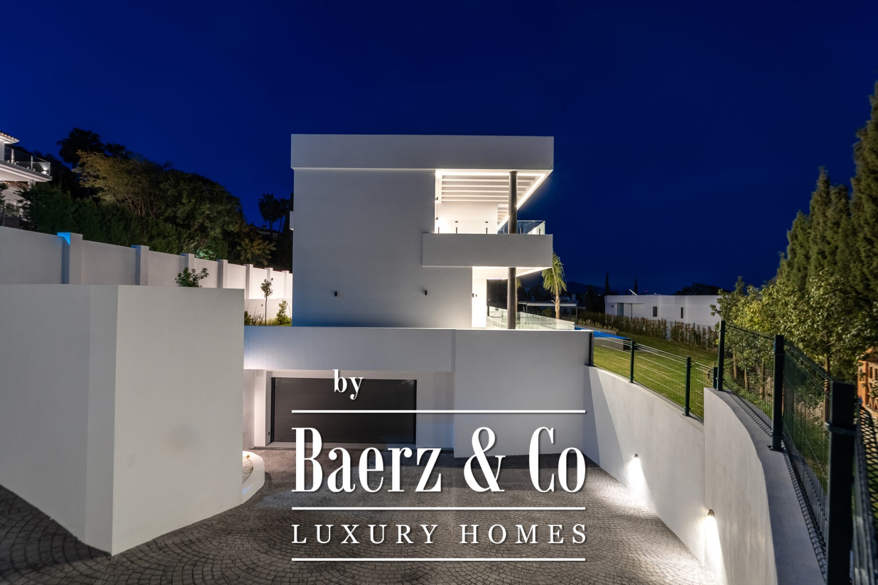 Welcome to the villa of your dreams in the prestigious Paraíso Alto area of Benahavís, where luxury and sophistication merge with cutting-edge technology and design. Completed in February 2025, this unique property combines brilliant architecture with innovation and elegance in every detail. Set on a spacious 1,915 m² plot, the villa offers 1,038 m² of built area across three levels, designed to ensure comfort, privacy, and exclusivity. Upon entering, you are greeted by an atmosphere of grandeur, with double-height ceilings and floor-to-ceiling windows that flood the spaces with natural light and create a seamless connection between indoors and outdoors. The villa features 6 en-suite bedrooms and a guest toilet, all designed with refined style to accommodate both family and guests. The living and dining areas are spacious and versatile, perfect for social gatherings or intimate family moments. The state-of-the-art open-plan kitchen, equipped with premium appliances, elevates the culinary experience to the highest level. The lower floor is a true sanctuary of leisure and wellness, with a wine cellar, private spa, Finnish and Turkish saunas. It includes a staff apartment and has a space