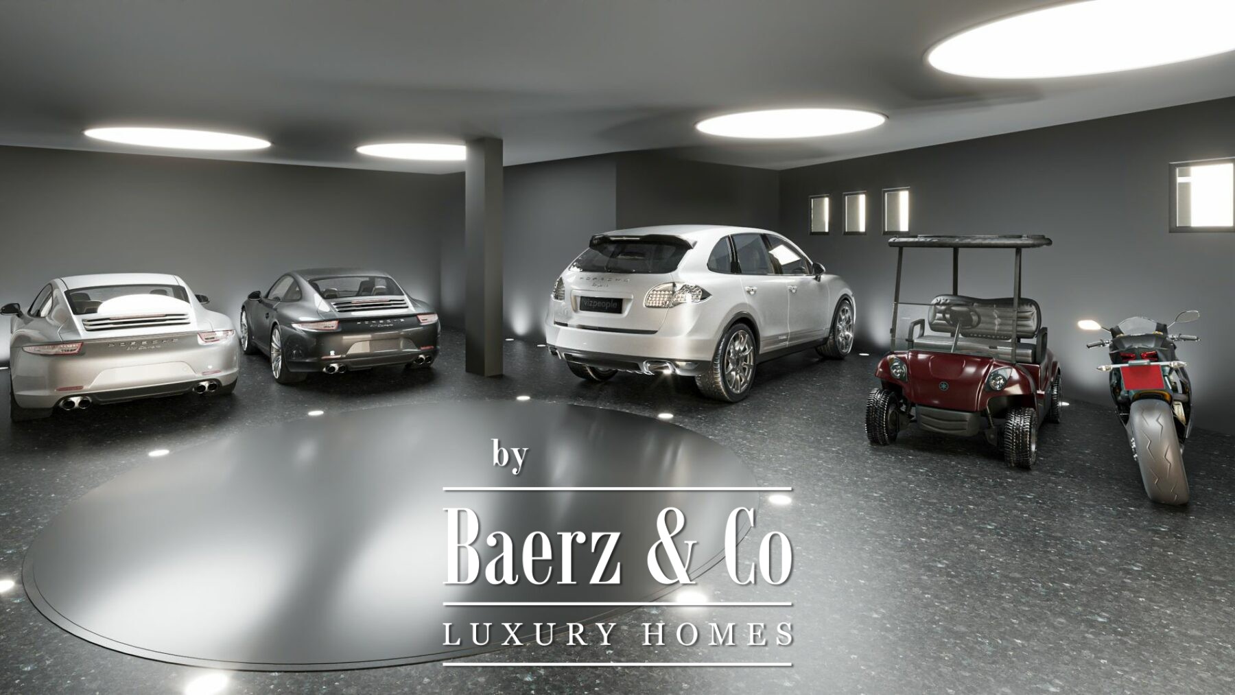 In the 250m² basement, high ceilings provide a sense of openness where relaxation and leisure converge. This level hosts a private cinema, a spa experience complete with sauna and steam room, a fully equipped gym, and a wine bodega. The garage is capacious and meticulously arranged with a car turntable for ease of access, seamlessly connecting the interior to the quiet landscaped garden.