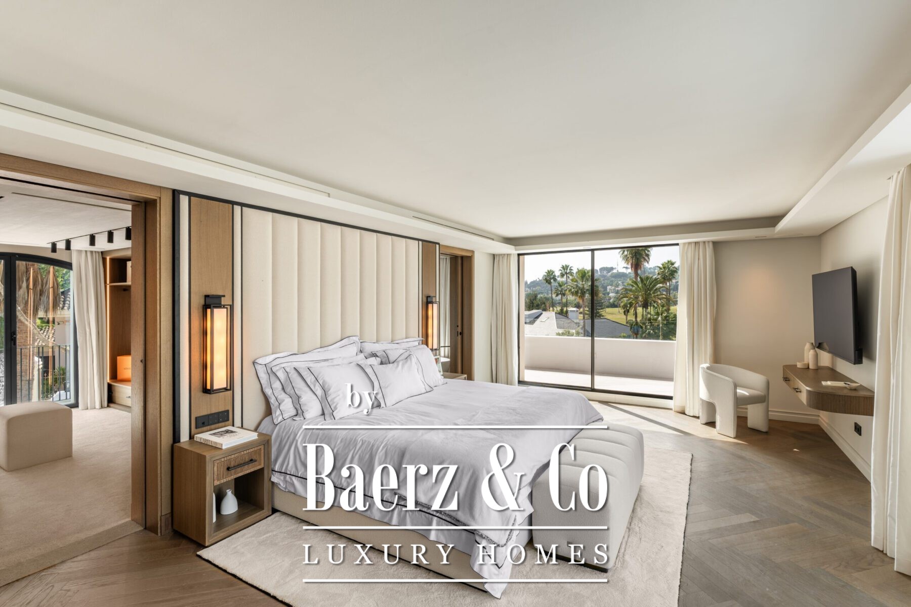 Villa Marbella with golf and mountain views redefines the rhythm of coastal living. Set within 1,257m² of carefully designed interiors on a 2,563m² plot, the villa is organized across three spacious levels, each shaped by natural light and the tranquility of its central patio. The master suite, with its private terrace and outdoor shower, frames views across the golf course, a place to reflect or recharge as the day unfolds.