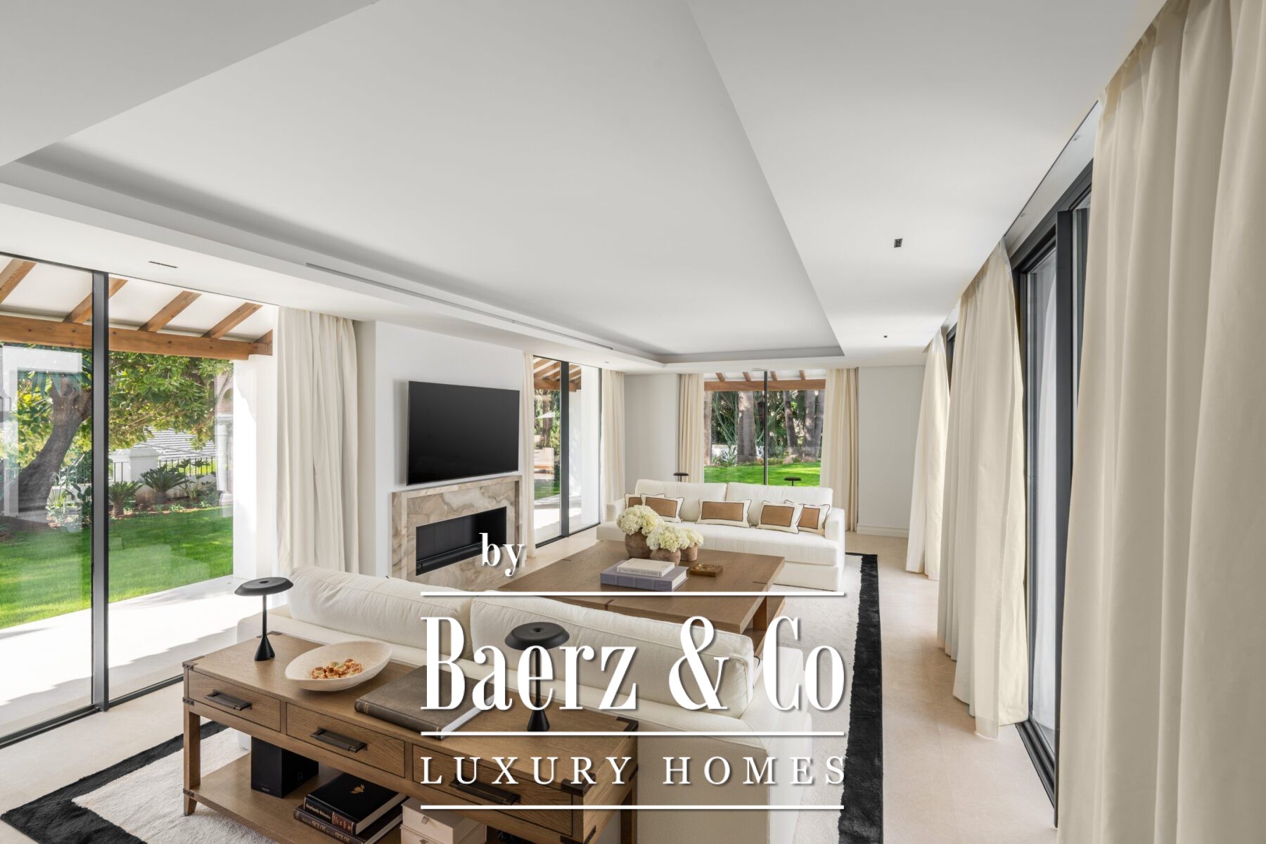 Three discrete TV rooms offer flexibility for gatherings or solitude. Outdoors, lush landscaping forms a private retreat for alfresco dining, sunbathing, or serene pauses beneath Mediterranean skies. Proximity to renowned golf courses, local amenities, the beach, and sweeping golf and mountain views ensures this villa is crafted for those who seek timeless comfort, privacy, and a cultivated pace of life in Marbella.