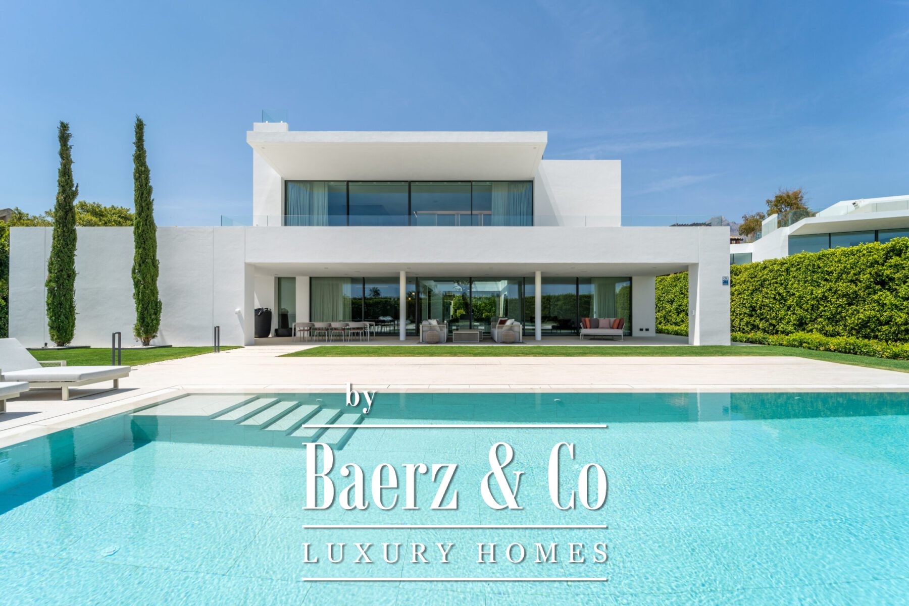 As you enter the property, you’ll find yourself surrounded by beautifully landscaped gardens covering 1.100 square meters. These gardens offer a peaceful atmosphere, with two private pools where you can relax and enjoy the stunning views of the Mediterranean Sea. The villa’s design allows you to easily move between indoor and outdoor spaces, making the most of Marbella's wonderful weather all year round.