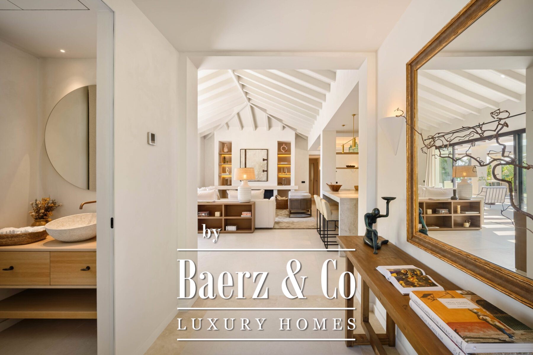 Outside, manicured gardens surround multiple alfresco living zones, ideal for entertaining or unwinding in complete seclusion. A rooftop terrace captures stunning views, while a peaceful courtyard with a water feature offers an intimate retreat. With four spacious bedrooms, including a serene master suite with garden access, and luxurious amenities throughout, this villa is a rare fusion of sophisticated living and relaxed coastal charm in one of Marbella’s most desirable locations.
