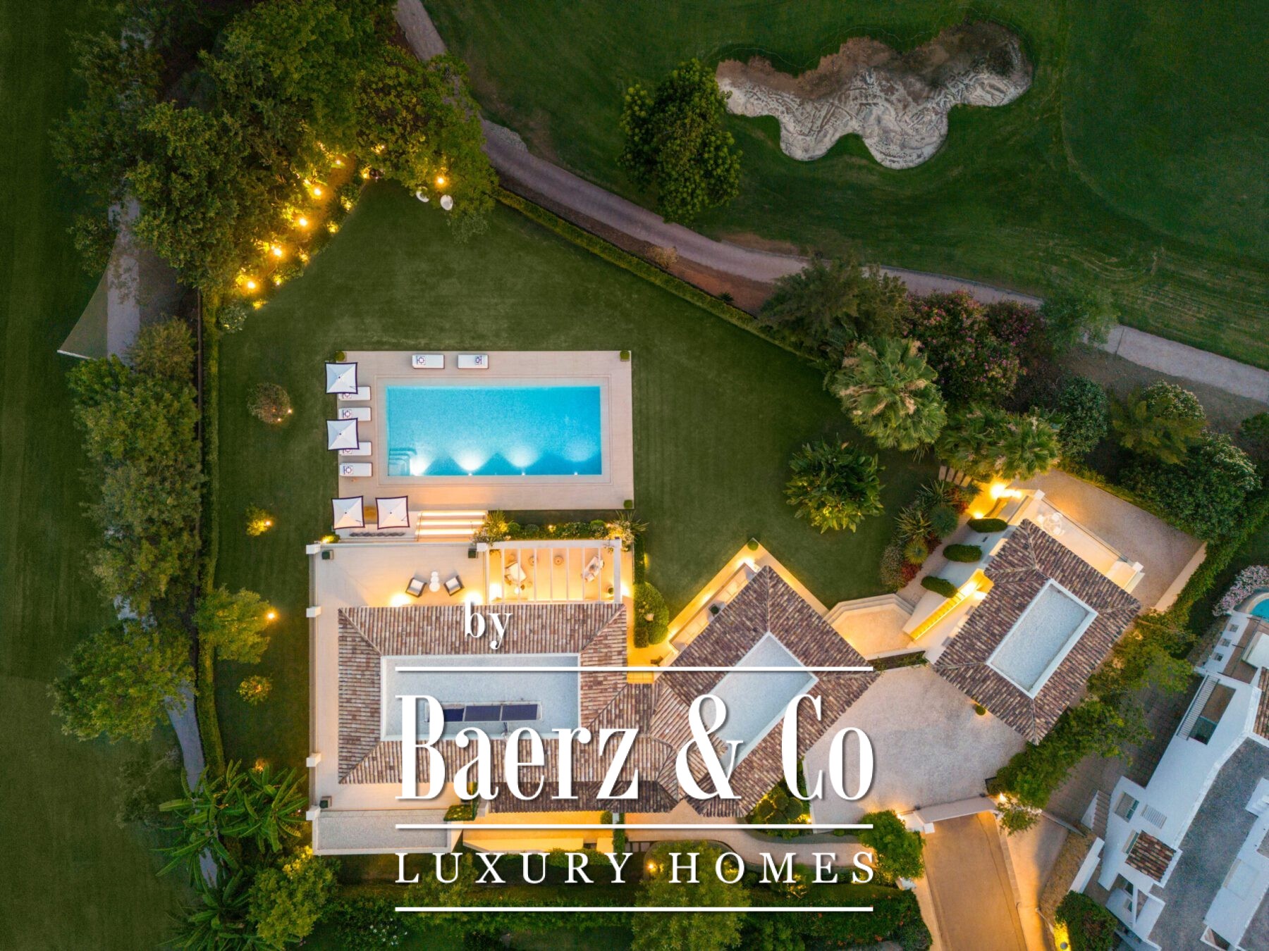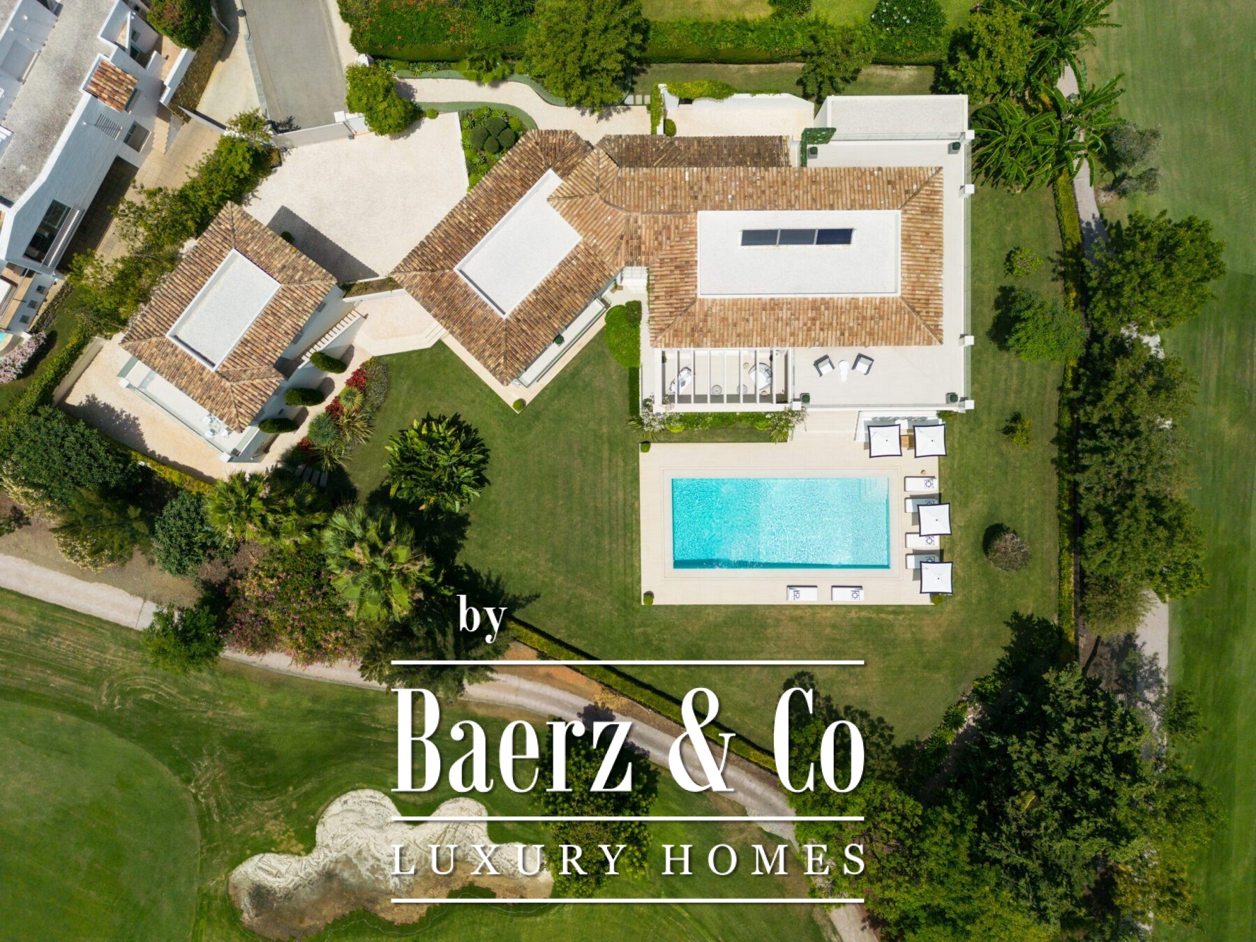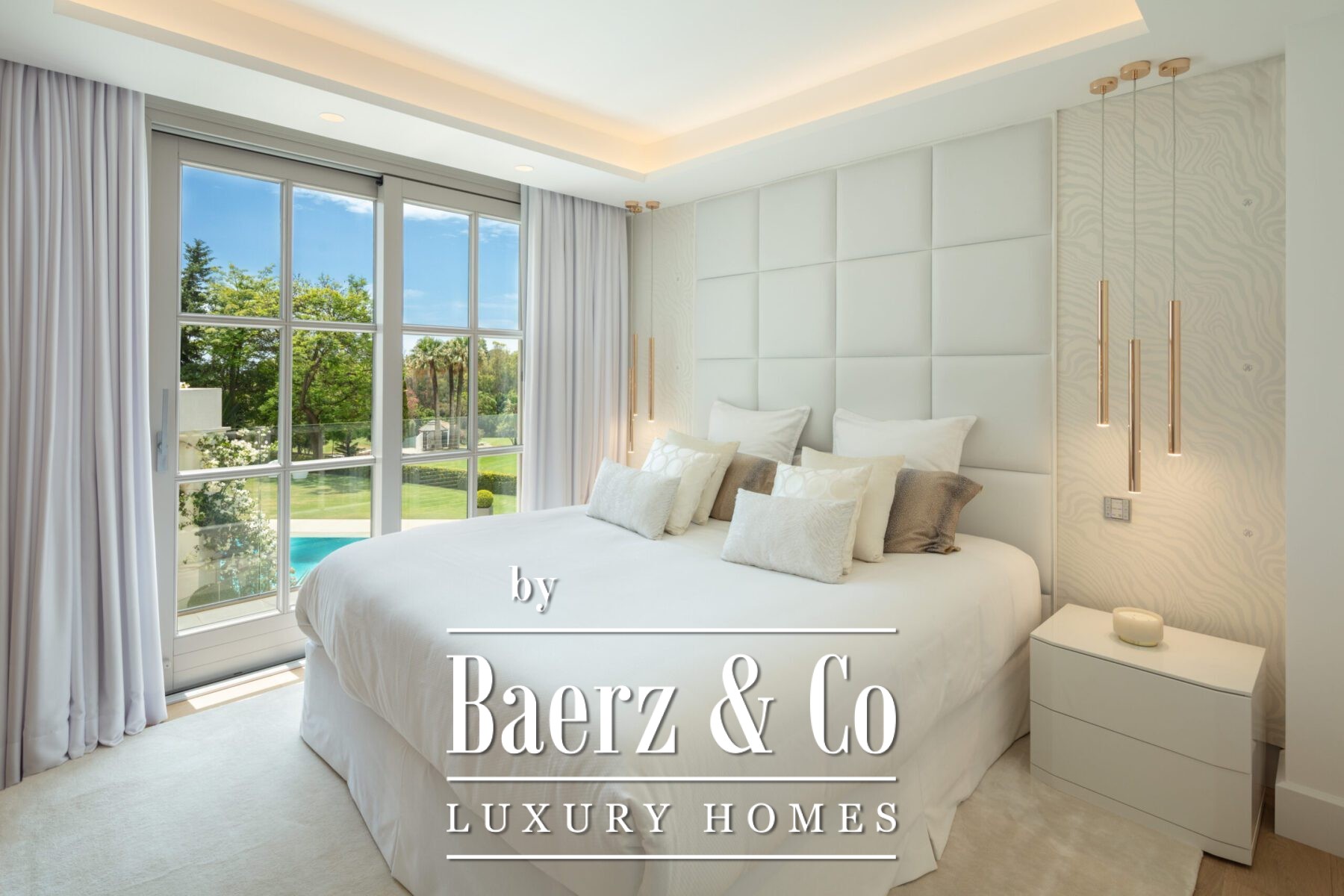 A private oasis nestled in the luxurious area of Marbella's Golf Valley. This magnificent mansion sits in a prestigious gated community and boasts an enviable front-line position overlooking Aloha Golf Course. Its timeless exterior and top-of-the-line interior finishes strike the perfect balance between classic elegance and modern sophistication. The property strikes a perfect balance between classic elegance and modern sophistication, featuring a timeless exterior and top-of-the-line interior finishes. The colour pallet used to decorate the interior is soft and inviting, exuding a calming atmosphere that one expects when coming back home.