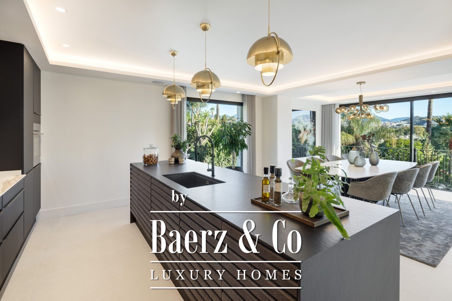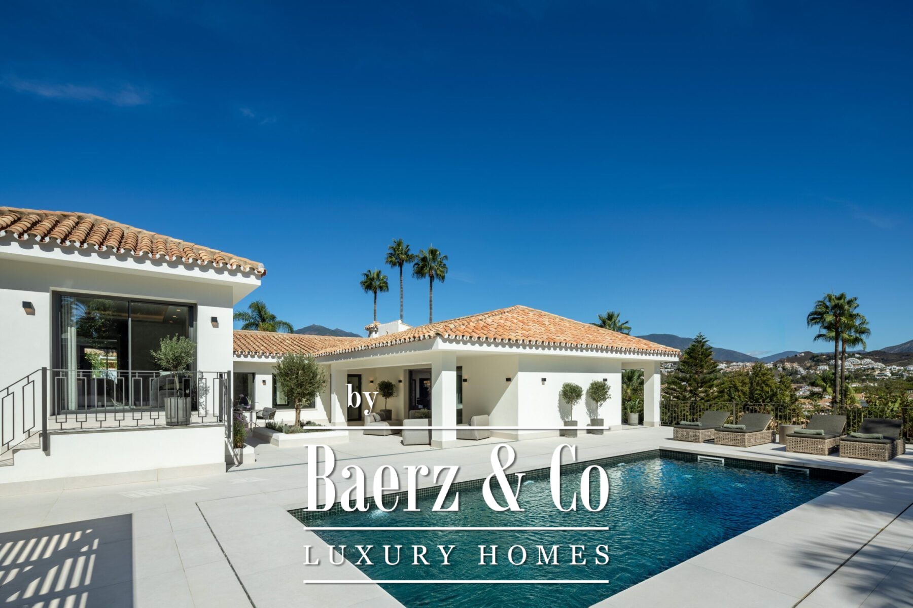 A captivating villa for sale located in the prestigious Nueva Andalucia Las Brisas, an area renowned for its stunning views of La Concha mountain and the Mediterranean Sea. This luxurious property, designed by a renowned architect firm exemplifies modern Scandinavian elegance blended with high-end comfort.