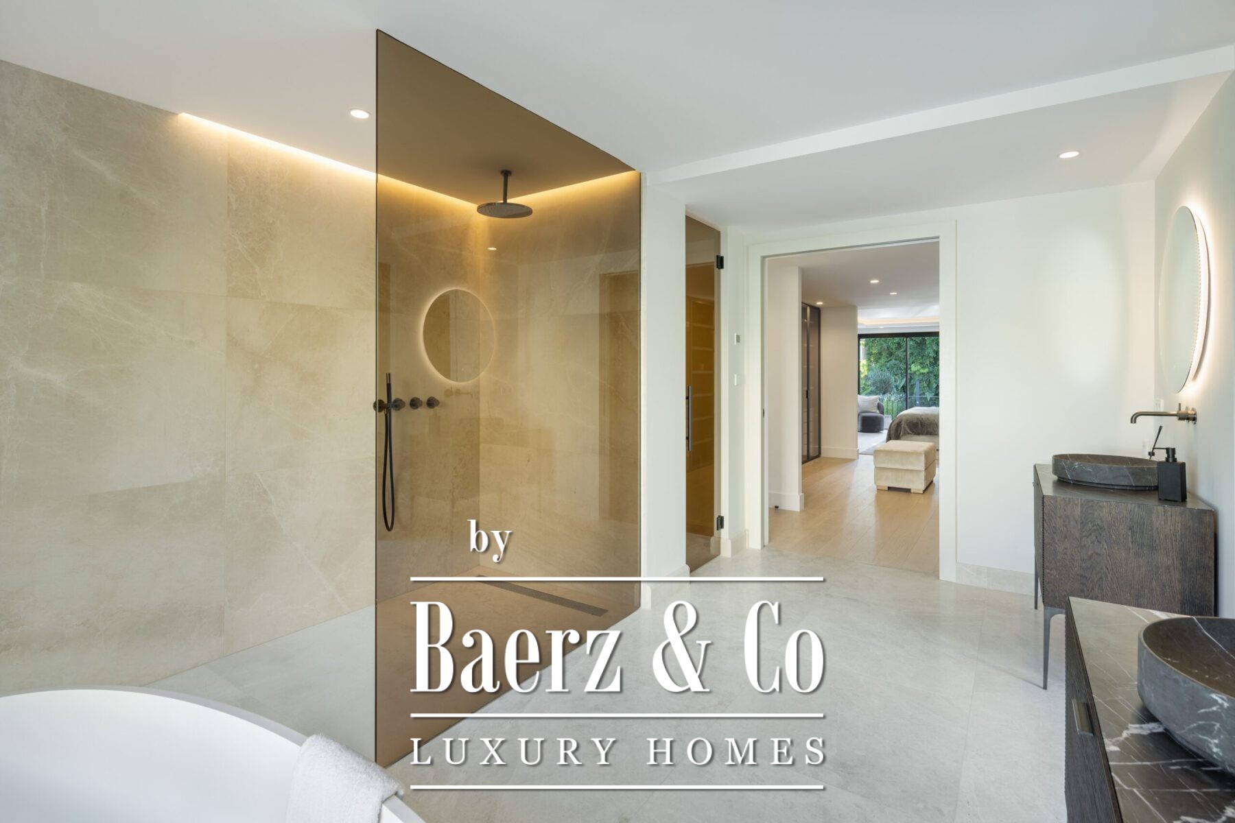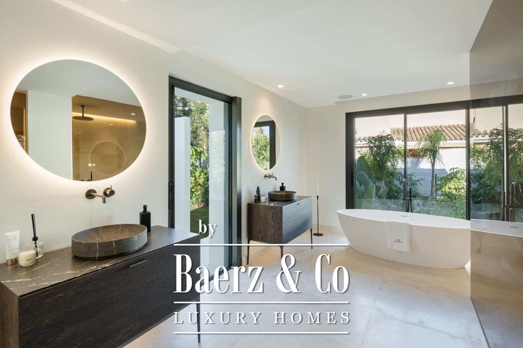 The property prioritizes convenience and security alongside luxury. Positioned strategically in Nueva Andalucia, the villa is just a five-minute drive from local shops, a ten-minute drive from schools, and seven minutes from the beach. Features like double glazing, covered parking for two cars, and ample storage space in the basement add to the property’s practicality. The villa is fully furnished in a modern, elegant style, each space inviting comfort and leisure. Top-notch security systems, including alarms and electric blinds, enhance the property’s safety, ensuring residents can indulge in their serene surroundings with peace of mind.