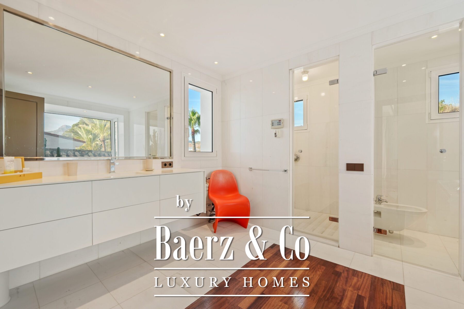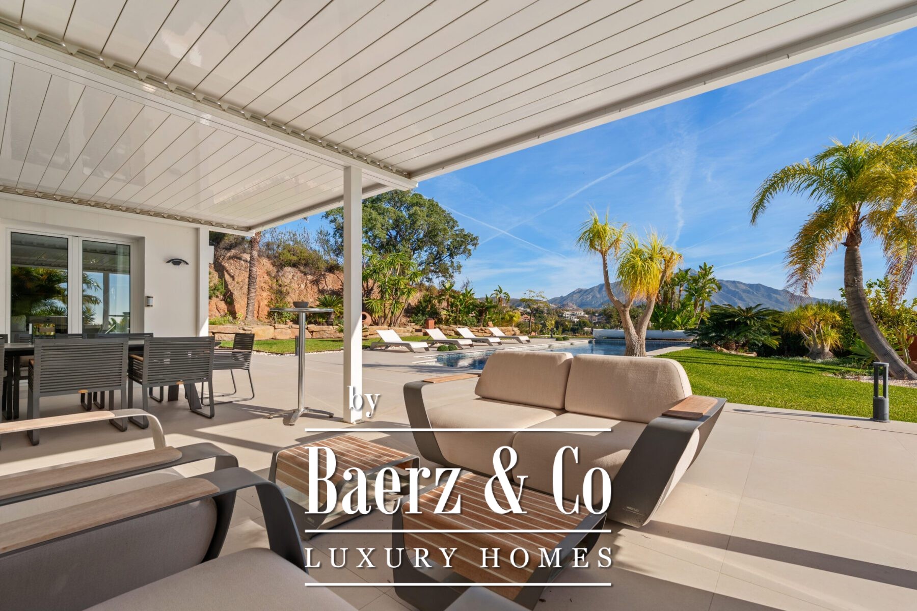 This villa for sale in Benahavís stands close to Marbella, Puerto Banús, renowned golf courses and amenities, offering seclusion without isolation and an elevated approach to Mediterranean living.