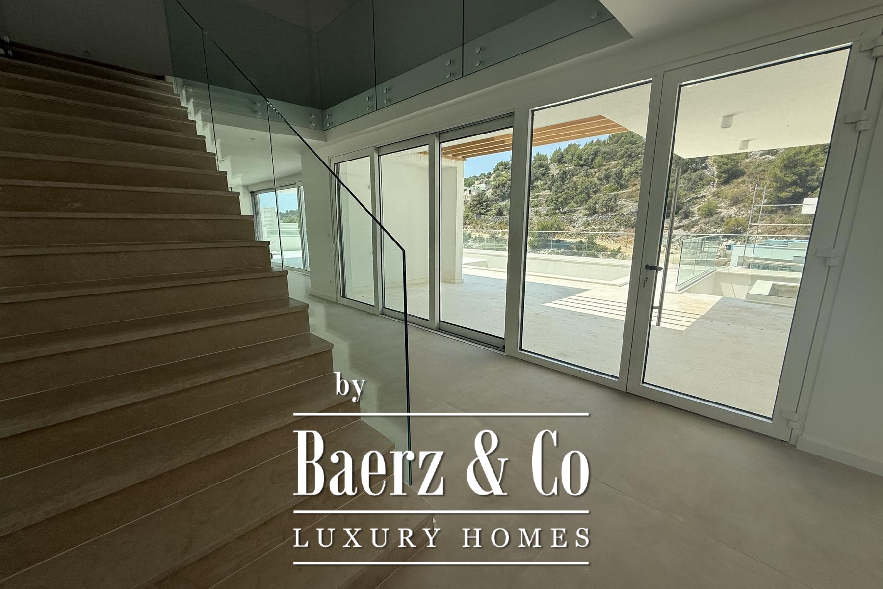This seafront villa Marina is positioned in a tranquil bay near Rogoznica, offering an immediate connection to the Adriatic and panoramic sea views. The residence comprises 375 m² of living space on a 630 m² plot, embodying both privacy and openness across three thoughtfully planned levels.