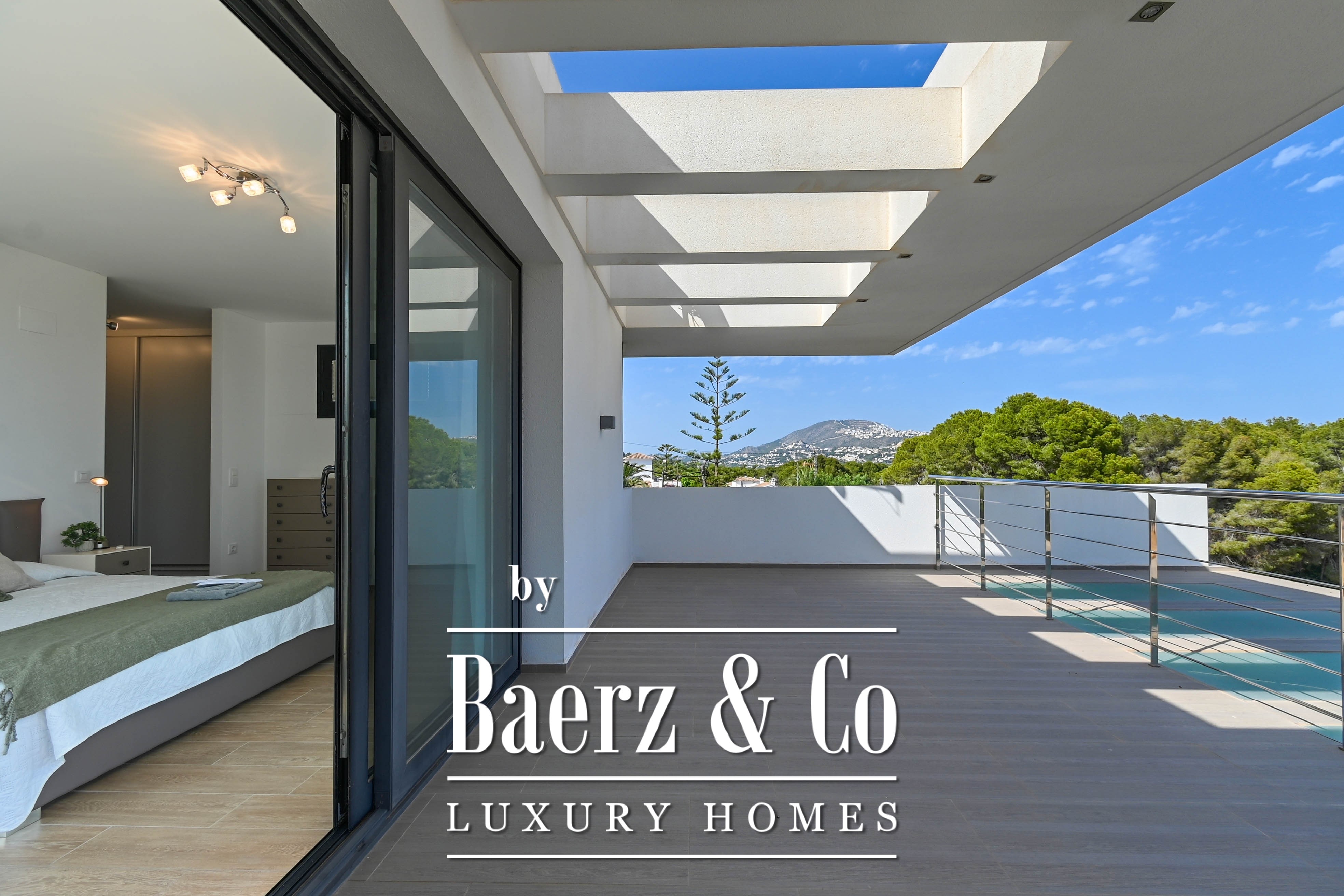 Just a short walk from the beach and the charming restaurants of Moraira, discover this modern villa with breathtaking sea views