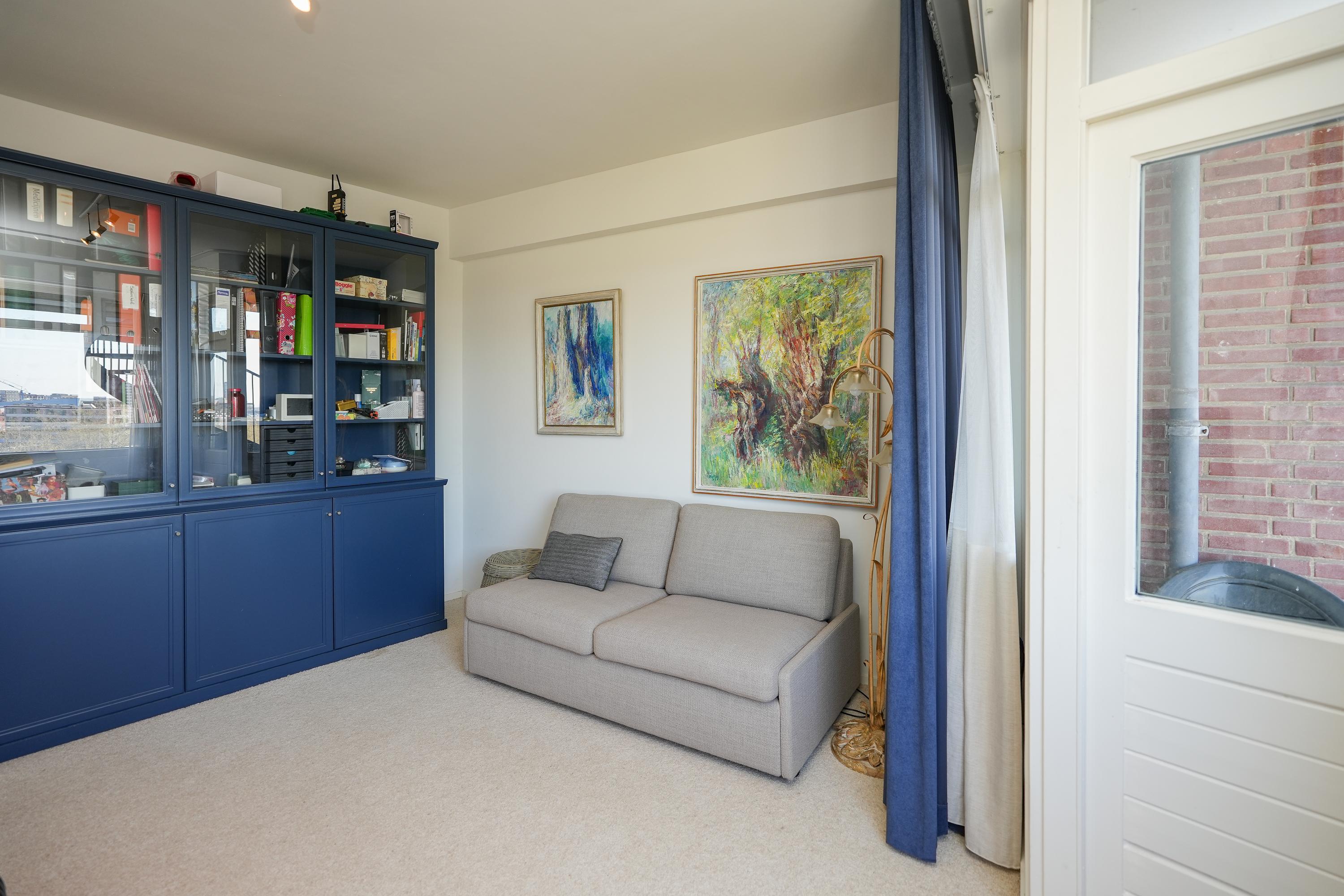 Entrance flat with a secure entrance door. The tastefully finished flat features a long, wide hallway that serves as a central connection between the various rooms. Upon entering are the cloakroom, guest toilet, a laundry room and the open kitchen. The kitchen and living room are both directly accessible from the hall, making for a nice, logical walk-through. The high-quality and complete kitchen is equipped with various built-in appliances and provides access to the first balcony, which faces south. Adjacent to the kitchen/dining room is a spacious utility room with additional storage and work space. From the balcony there is a beautiful view over the city of Nijmegen and Radboud University. The living room is loft-like in design and exceptionally spacious. A modern gas fireplace separates the dining room from the seating area on the south-west side. Large windows provide a sea of light and from the sitting area a sliding door gives access to a second, west-facing balcony with fine views towards the river Waal and the iconic Waal bridge.