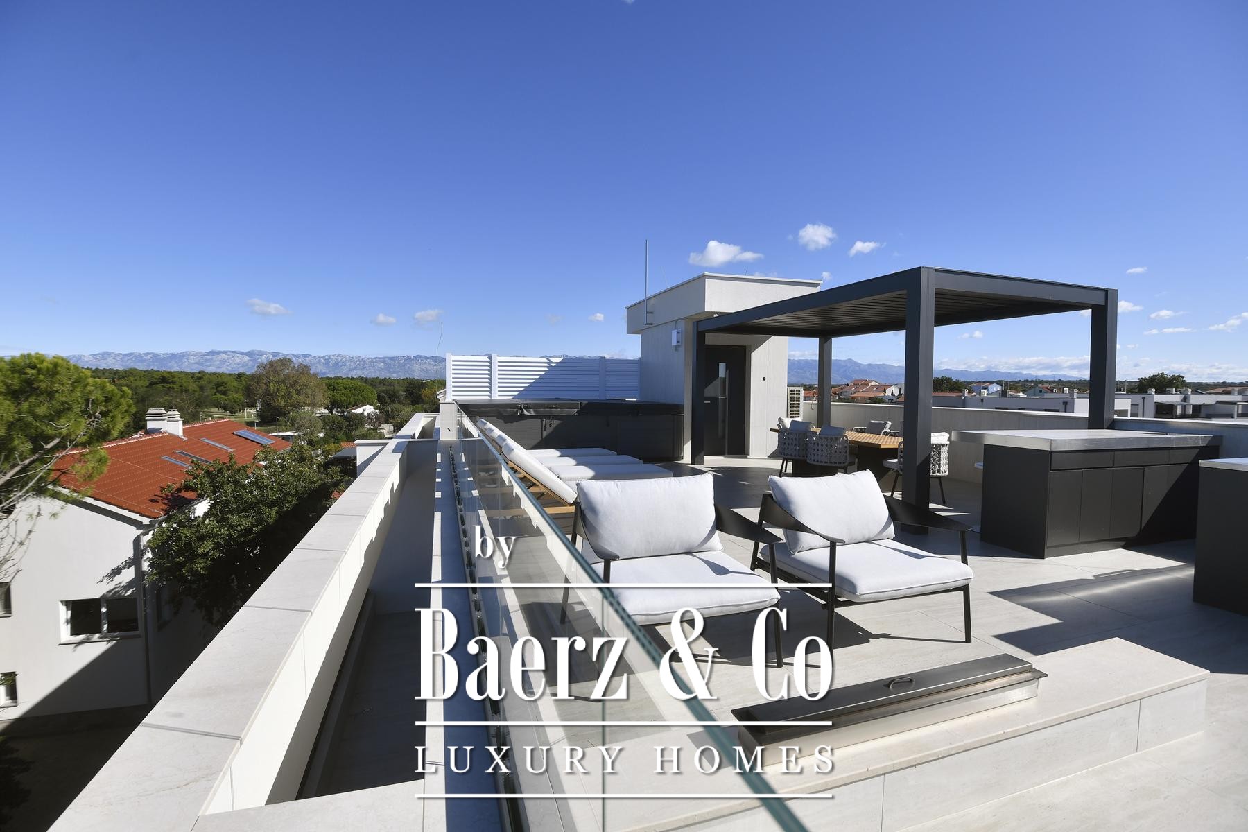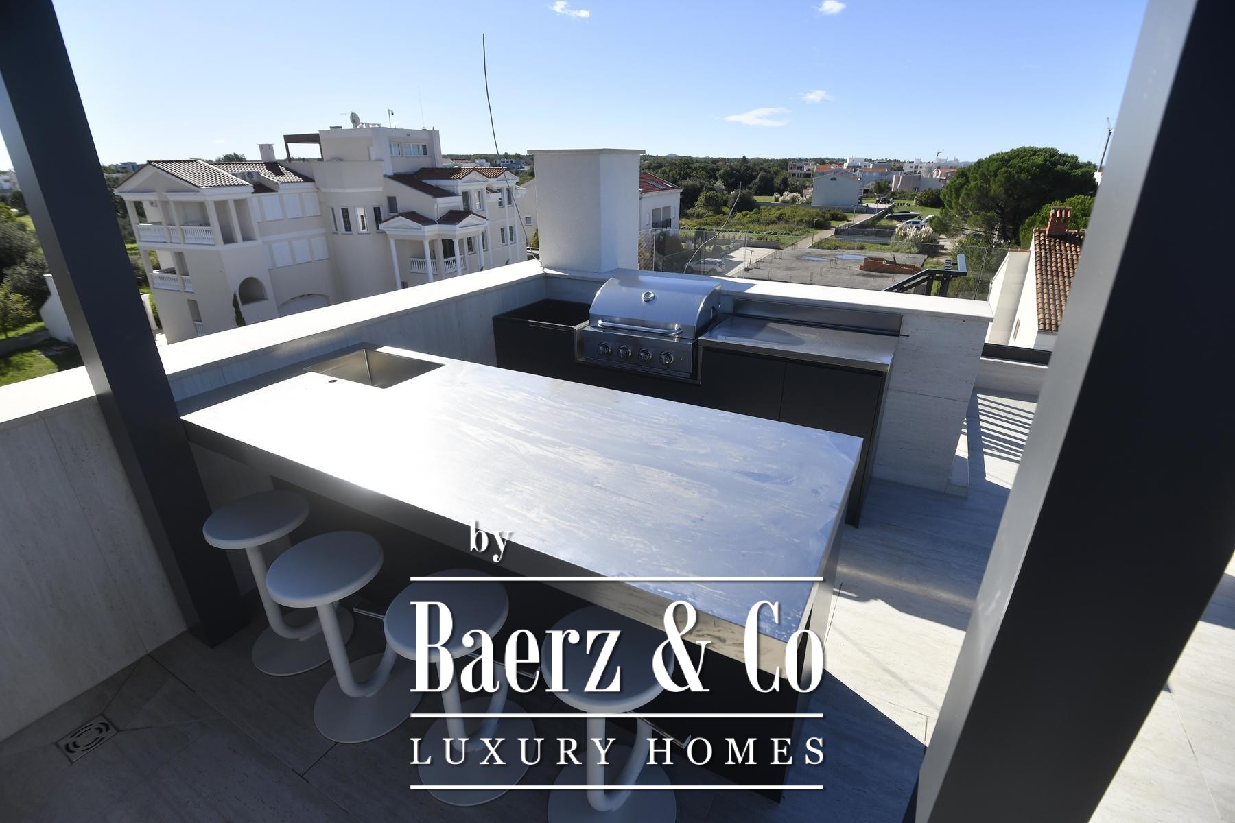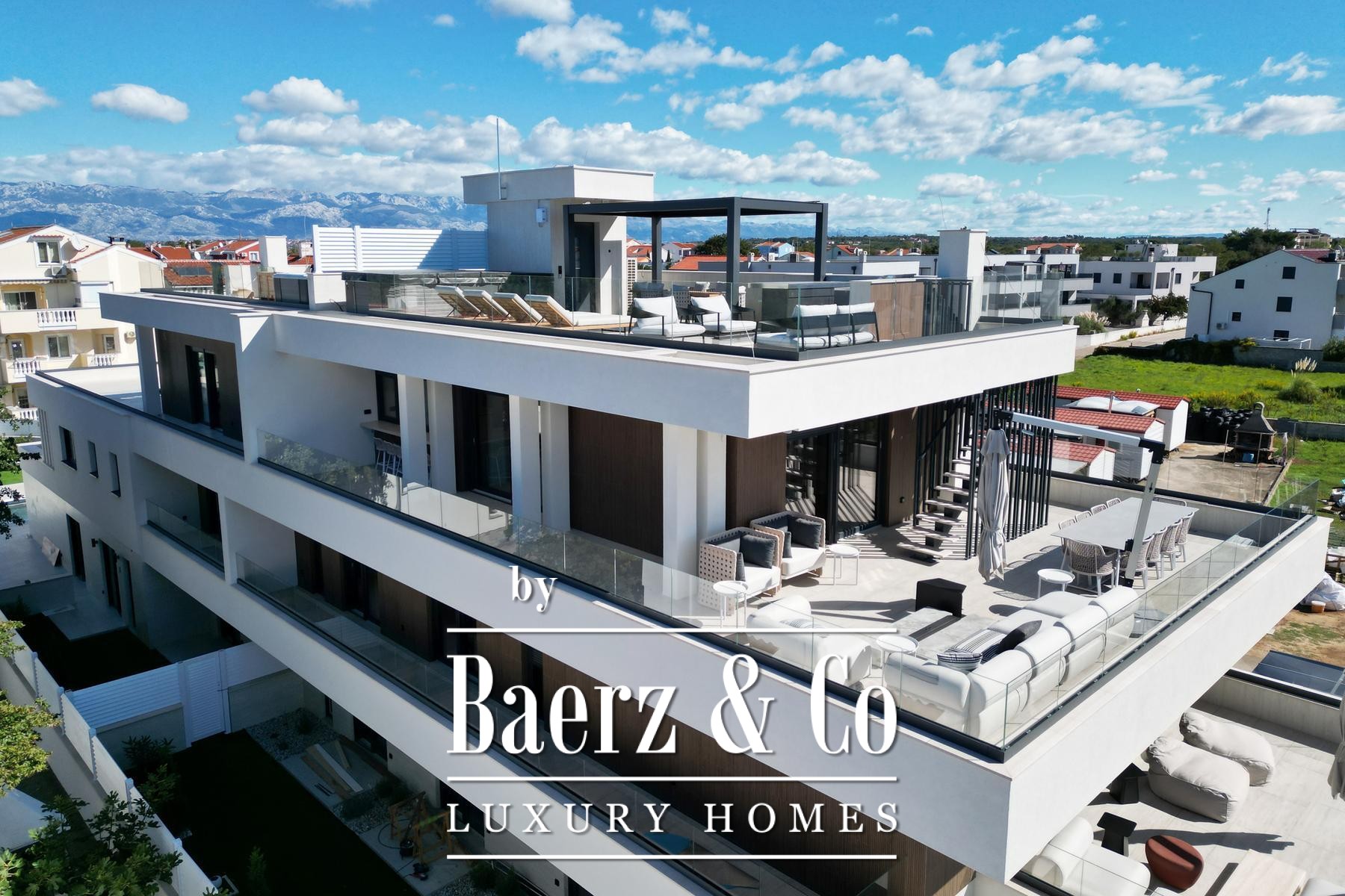 property perfectly thought out for modern needs.This penthouse also offers unique features that set it apart. A private elevator leads directly to the apartment, ensuring exclusive access and complete privacy. Every detail exudes top-notch workmanship - from decorative lighting and wooden panels to the intelligent control system (Smart Home KNX - Siemens/ABB) that controls the blinds, lighting, heating and air conditioning in all rooms. The apartment is fully air-conditioned, equipped with Sonos sound system and Samsung smart TVs, with the option of installing Starlink connection for seamless connectivity with the world.The crowning glory of this property is the spectacular roof terrace. Here is a private 9 m² jacuzzi and an elegant lounge area with multiple terraces, ideal for morning relaxation with coffee, afternoon rest with a book or evening enjoyment of enchanting sunsets over the Adriatic. Practicality is ensured with three parking spaces, one of which is closed and equipped with an EV charger, further confirming the thoughtfulness and exclusivity of this offer.This penthouse is ready to move into immediately and is the ideal choice for those looking for the perfect balance between luxury, privacy and the Mediterranean lifestyle. Whether it is a family residence, a prestigious second home by the sea or a profitable investment for exclusive rental, it is a unique opportunity that combines design, state-of-the-art technology and a unique location. A home that exceeds all expectations and turns luxury into everyday life, without the need for additional investments.Feel free to contact us for any additional questions.