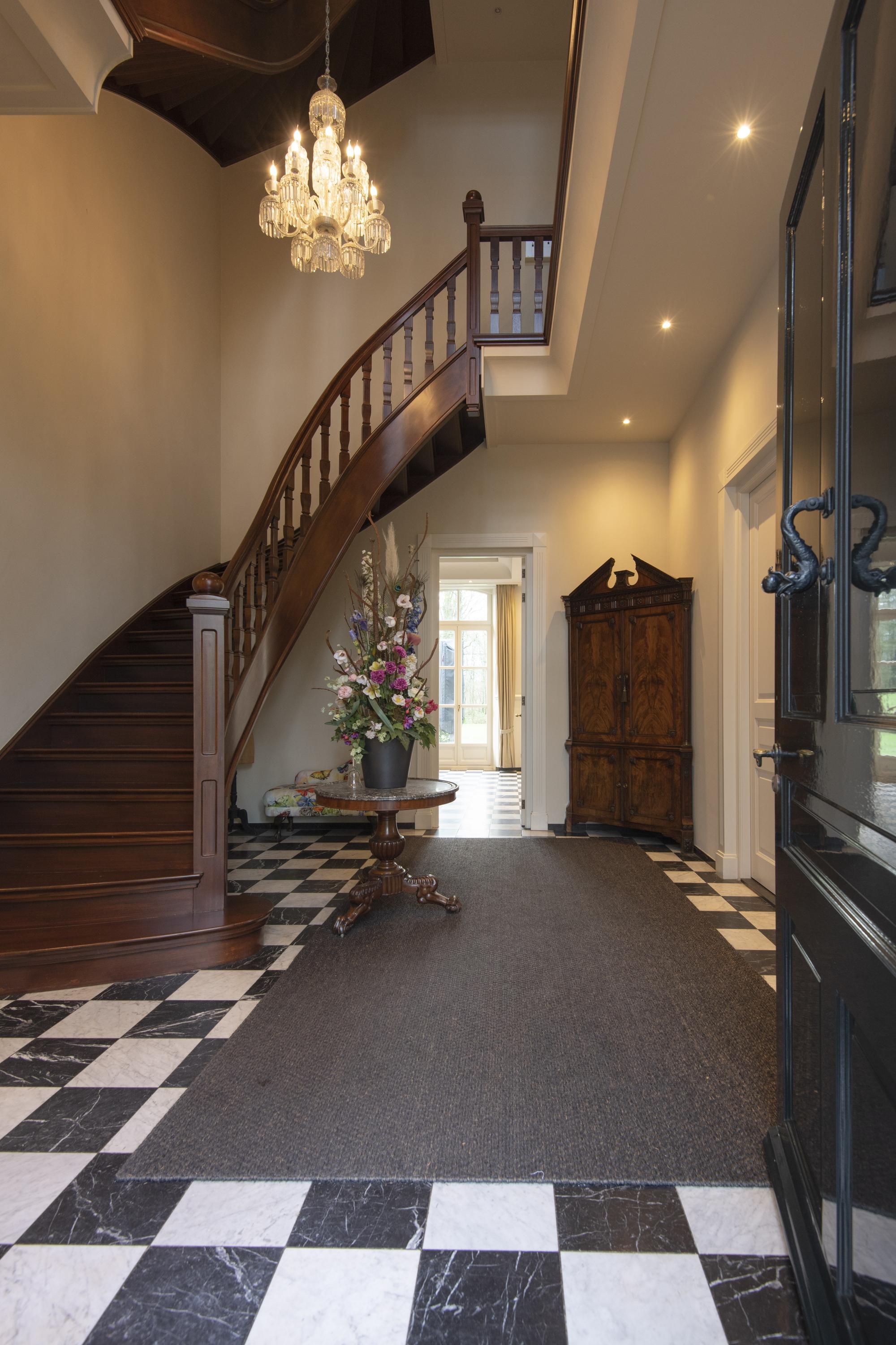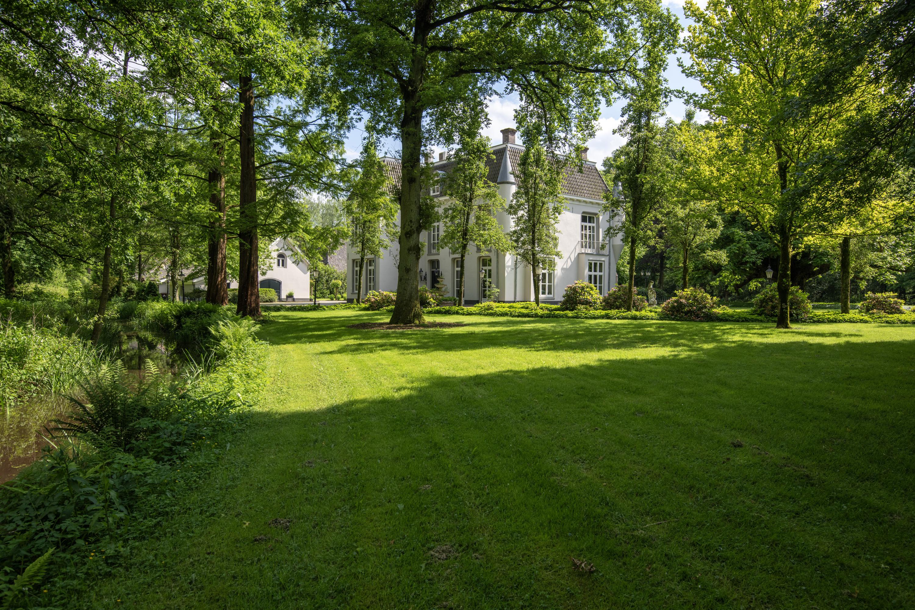 The tranquil yet strategic location of this estate, with its castle-like allure, makes it an ideal residence. Within 30 minutes, Eindhoven Airport, the High Tech Campus and Tilburg are all within easy reach, while ’s-Hertogenbosch is just a 20-minute drive away. The immediate surroundings offer extensive walking trails, perfect for hours of wandering through the beautiful Brabant woodlands. Surrounding the manor house is an English landscape garden with a pond, several lawns and many mature trees, including a magnificent monumental Caucasian wingnut and a Canadian poplar.