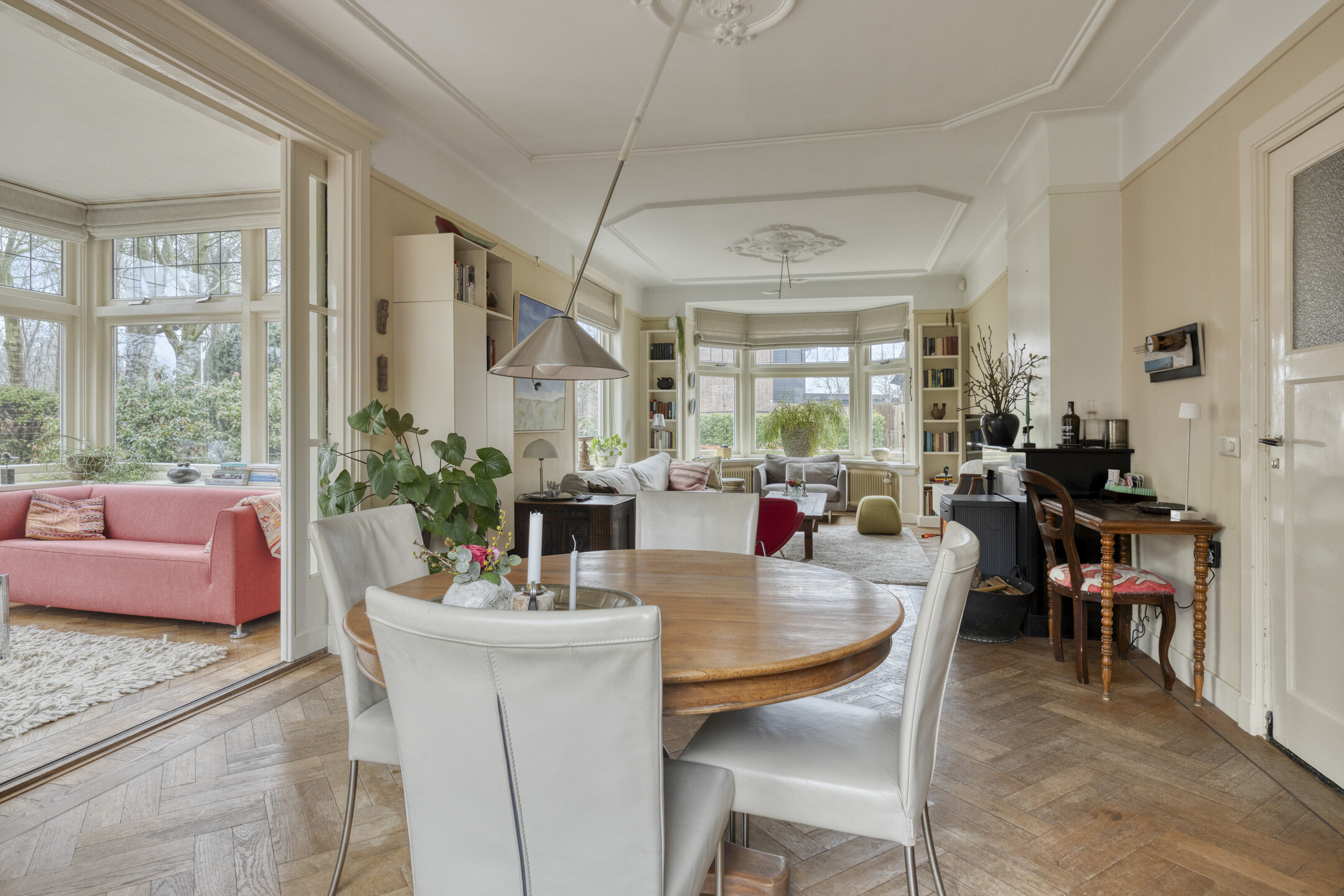 Detached house Oldenzaal stands at a prime location, showcasing the grand lines of 1930s architecture combined with the comfort of today. Designed by C. Hardeman and fully renovated in 2003, this freestanding residence offers a living area of 244 m², placed on a generous 751 m² plot. The first impression reveals timeless curb appeal, enhanced inside by authentic details and exceptional natural light throughout.