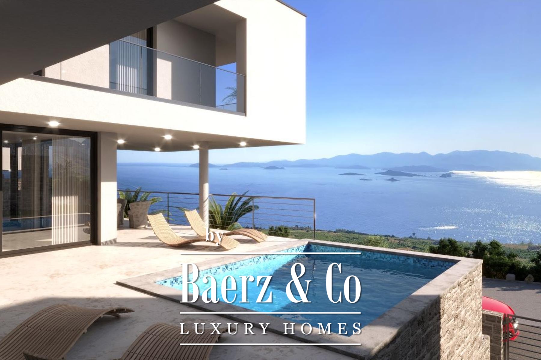 Orebić, a project of modern luxurious villas, located on the beautiful southern slopes of the Pelješac peninsula in the oldest protected wine area in Croatia. The villa is located on a plot of 532 m2, consists of three floors, and consists of a basement where there is a swimming pool, a terrace with a total of 27 m2 of living space. The ground floor consists of a covered terrace, covered passage, entrance loggia, room, corridor,