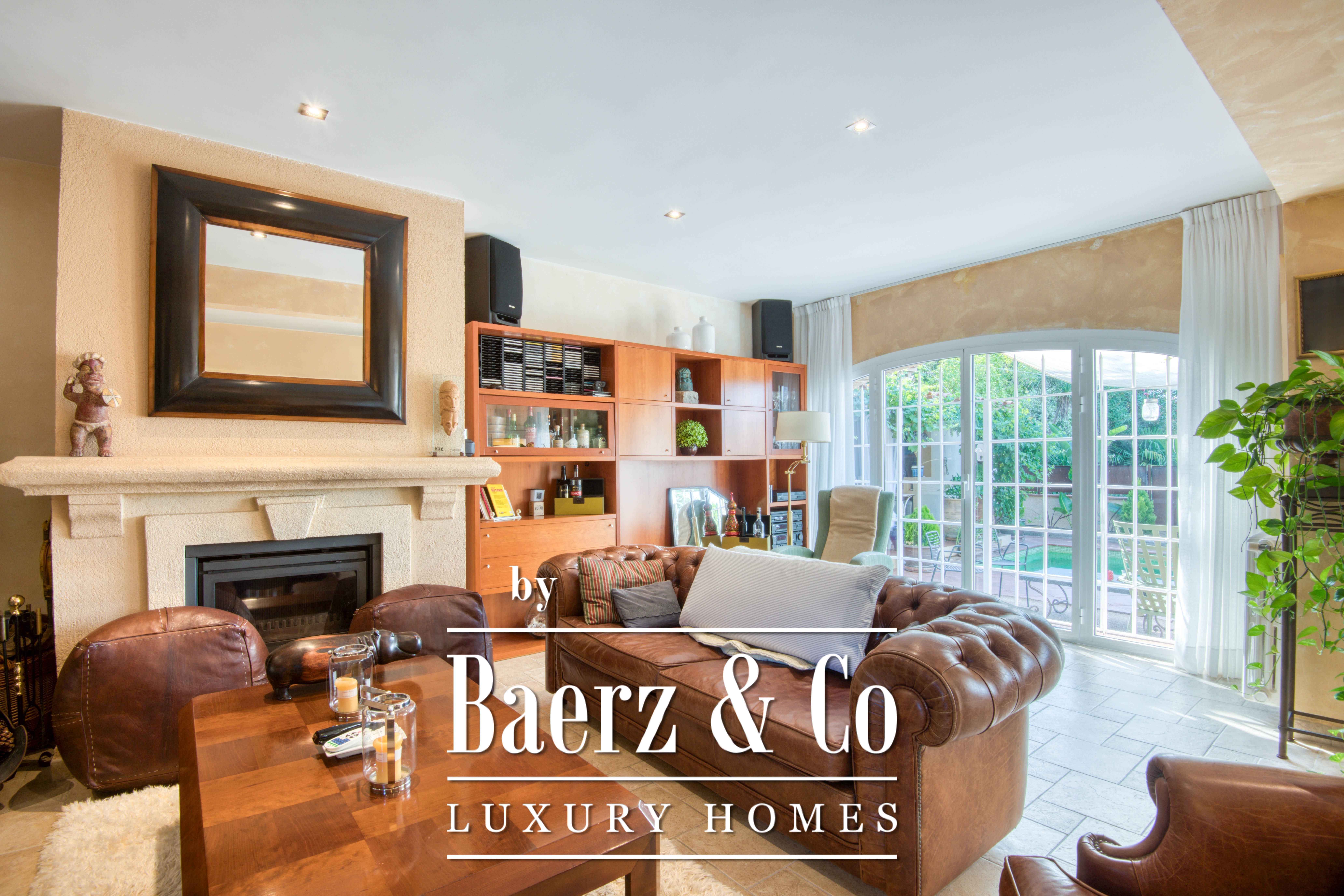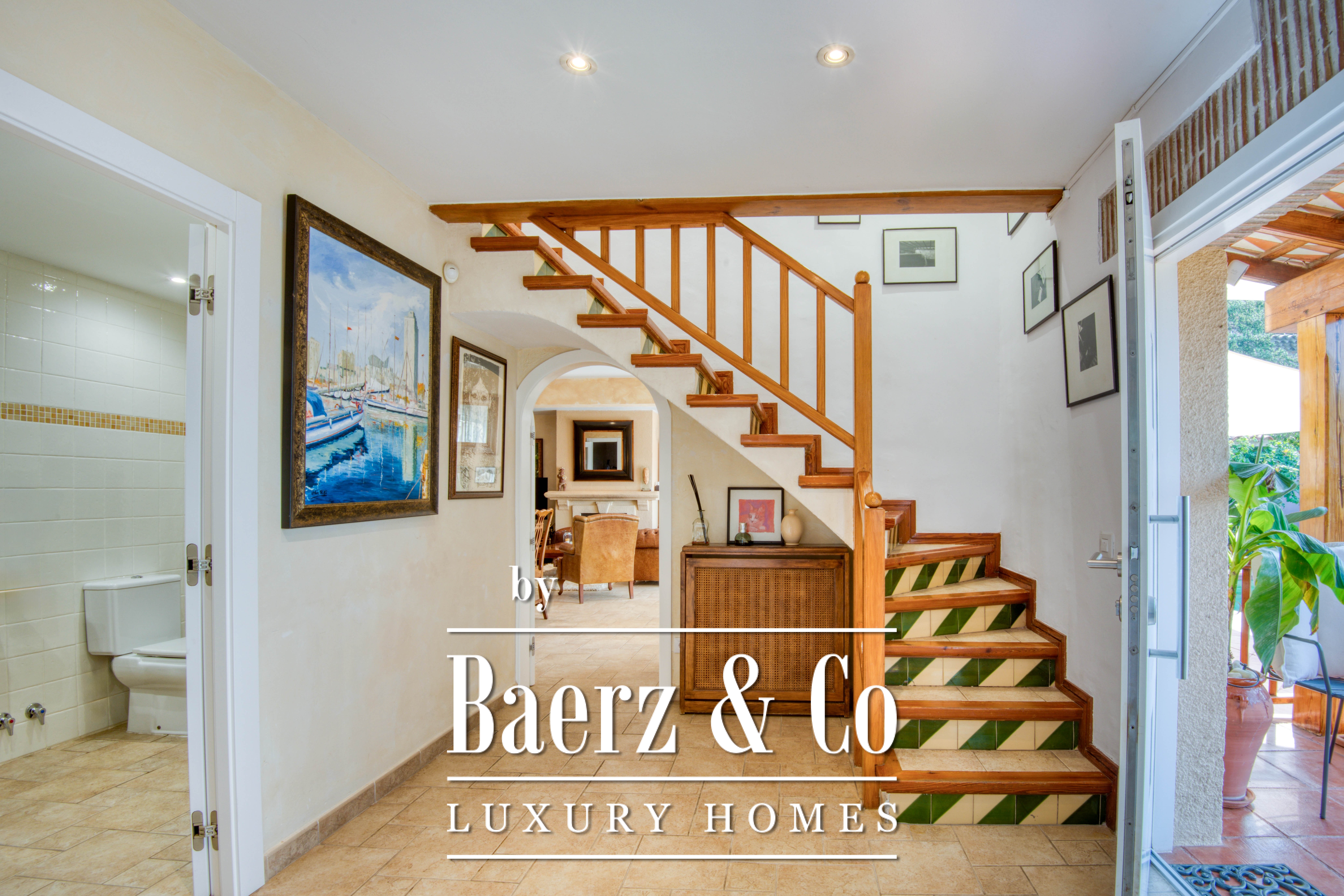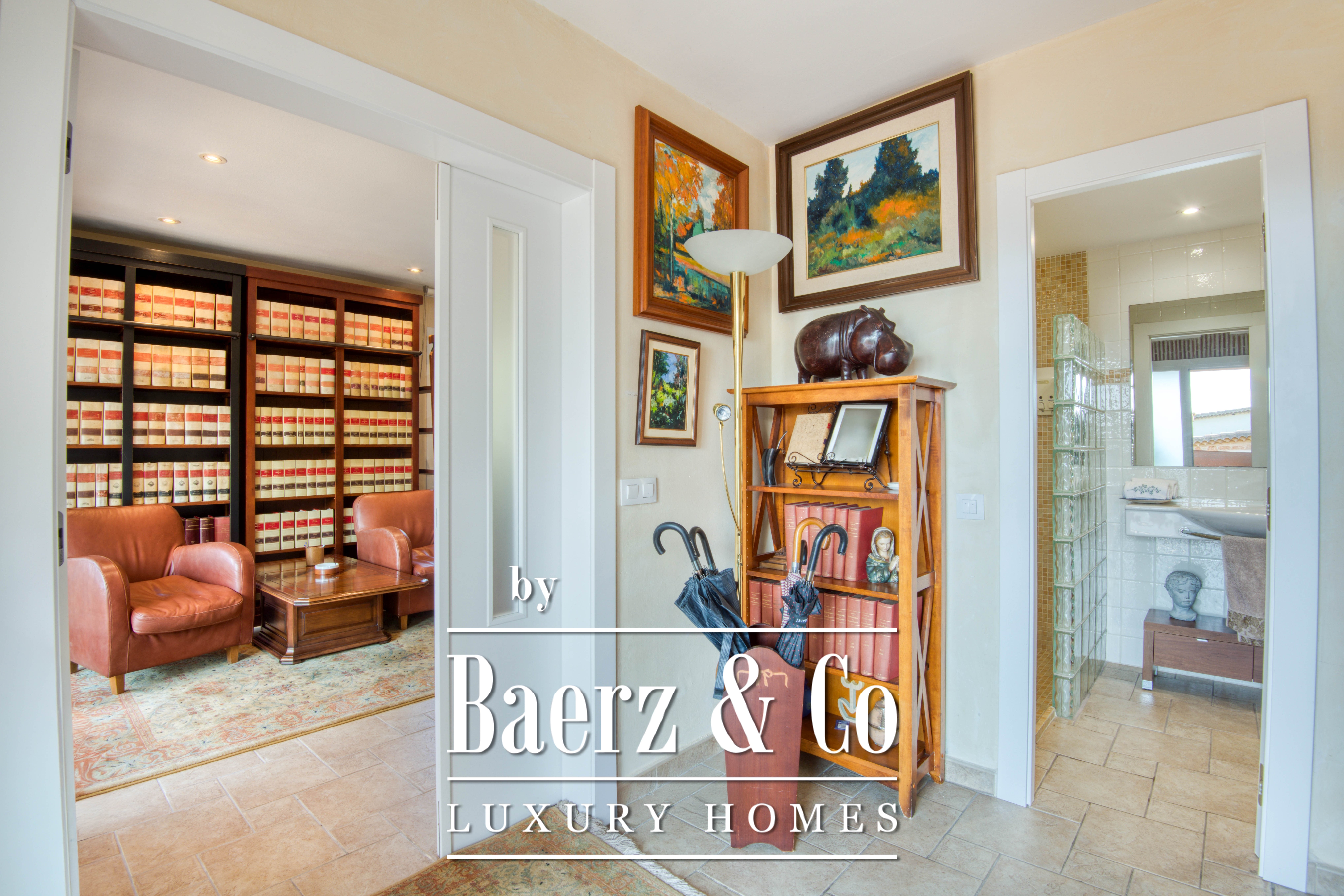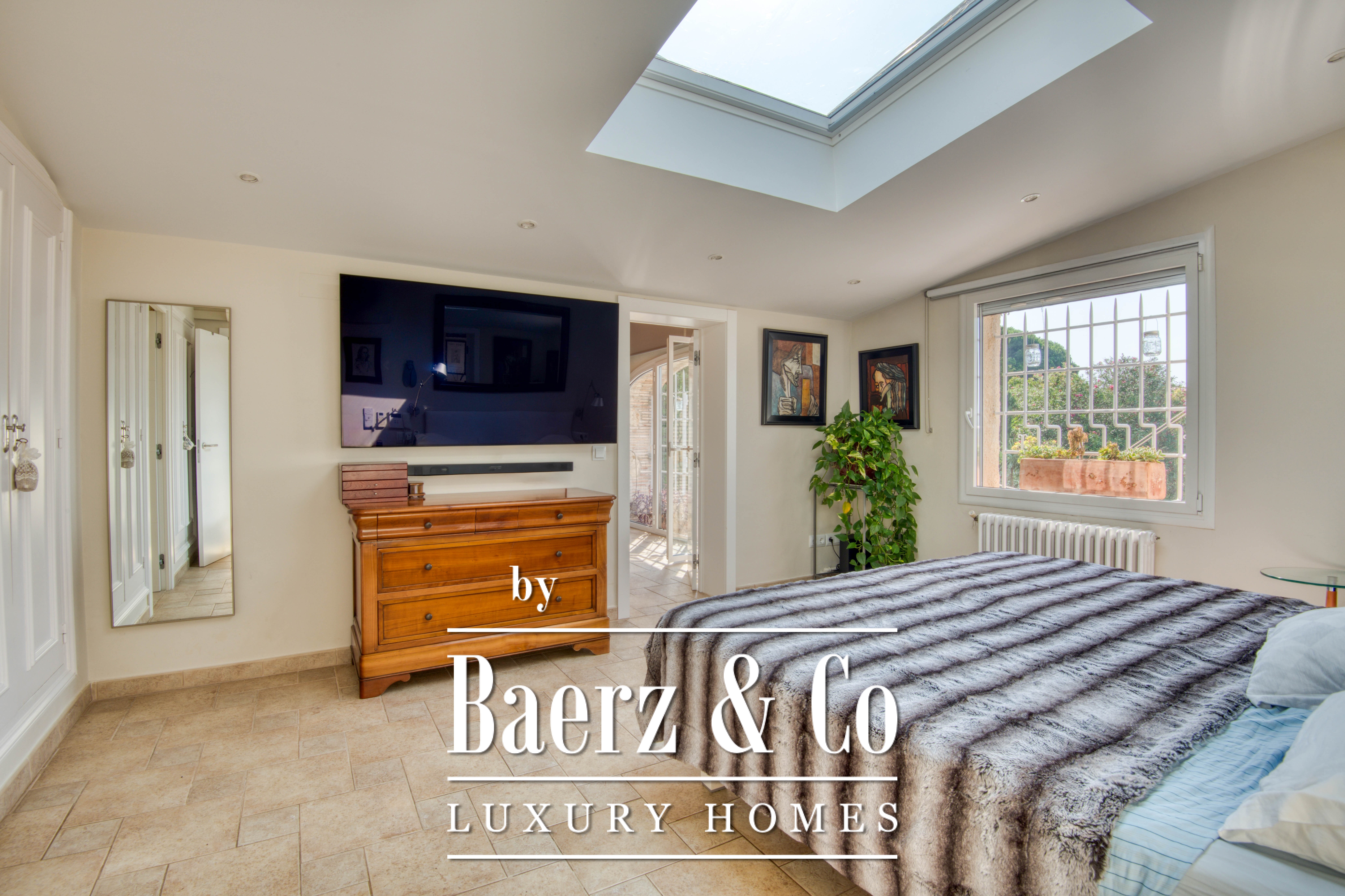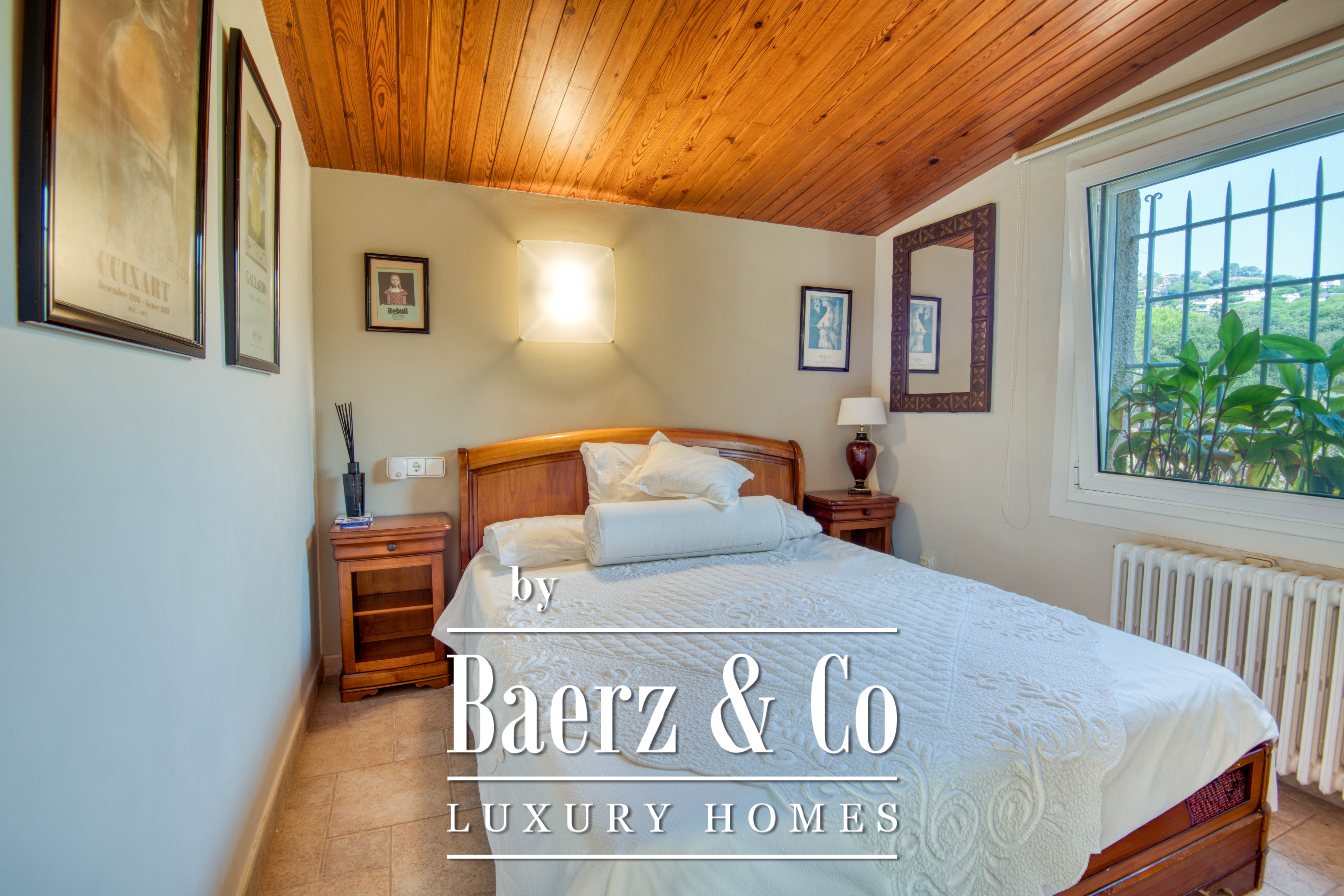 Outdoors, a saltwater pool, shaded porch with a dedicated chill-out zone, and a barbecue area set a tranquil rhythm. The house is well-appointed with a garage, storage rooms, outdoor laundry, natural gas heating, air conditioning, solarpanels, and aerothermal energy, all ensuring comfort year-round. South-facing orientation amplifies the home’s warmth, with terraces, balconies, and a fireplace encouraging connection to sun and sky. This property stands as a rare intersection of traditional appeal and measured contemporary elegance, suited for both primary residence and discreet escapes along the Costa Brava. For those seeking a luxury rustic estate for sale in Platja d’Aro, this residence reflects a distinctive quality of place.