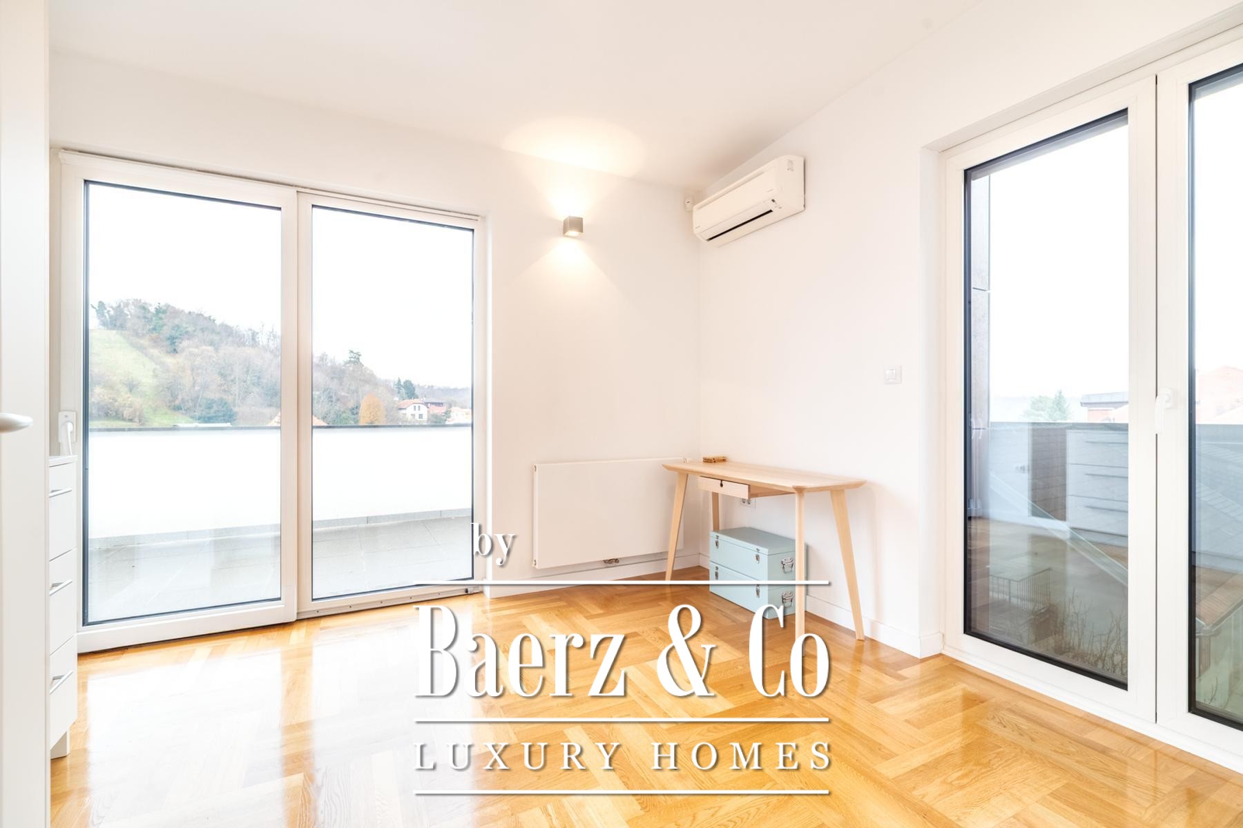 First-class materials, including travertine stone and stone-clad bathrooms, are paired with aluminum triple-glazed windows, air conditioning, and integrated security systems. The atmosphere is refined yet welcoming, with thoughtful attention to privacy and natural light. Local amenities such as boutiques, cafes, and renowned dining at Okrugljak are within easy reach. The villa’s position combines tranquil, green surroundings with proximity to urban life, encapsulating the rhythm of contemporary living in Podsljeme.