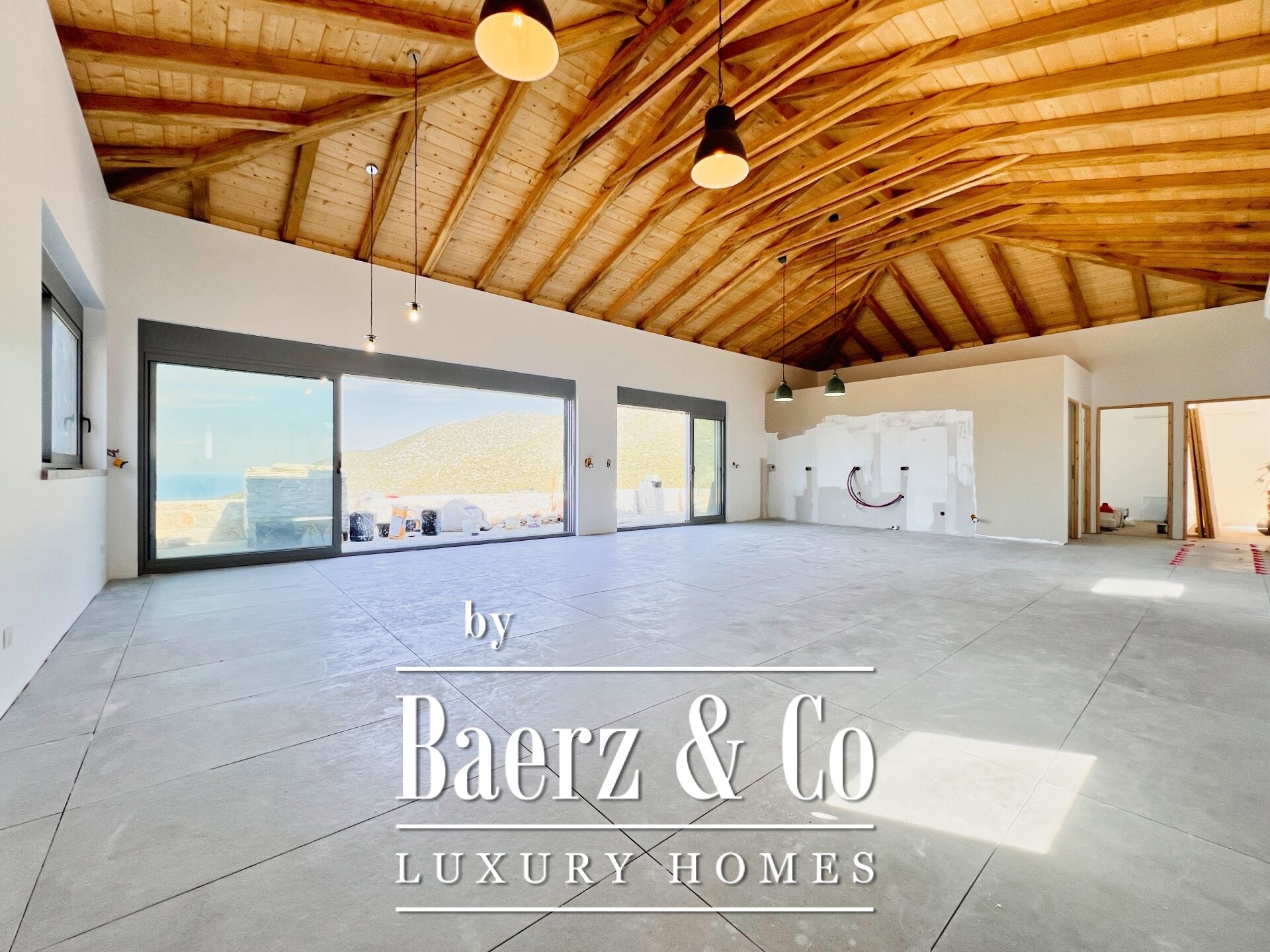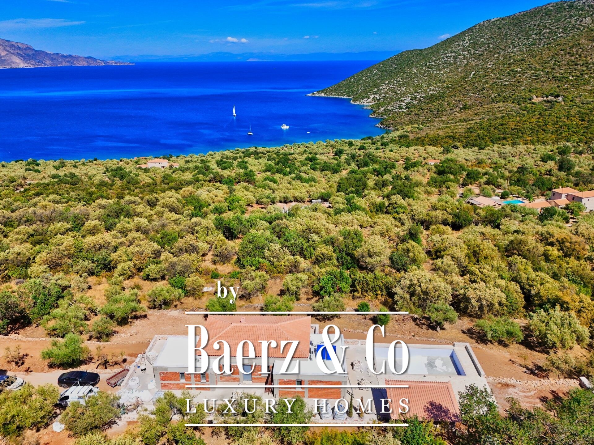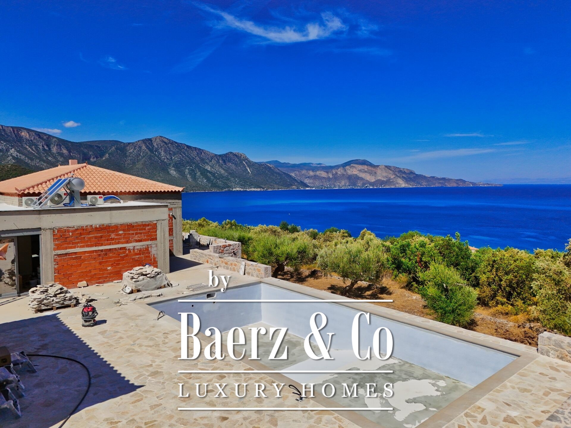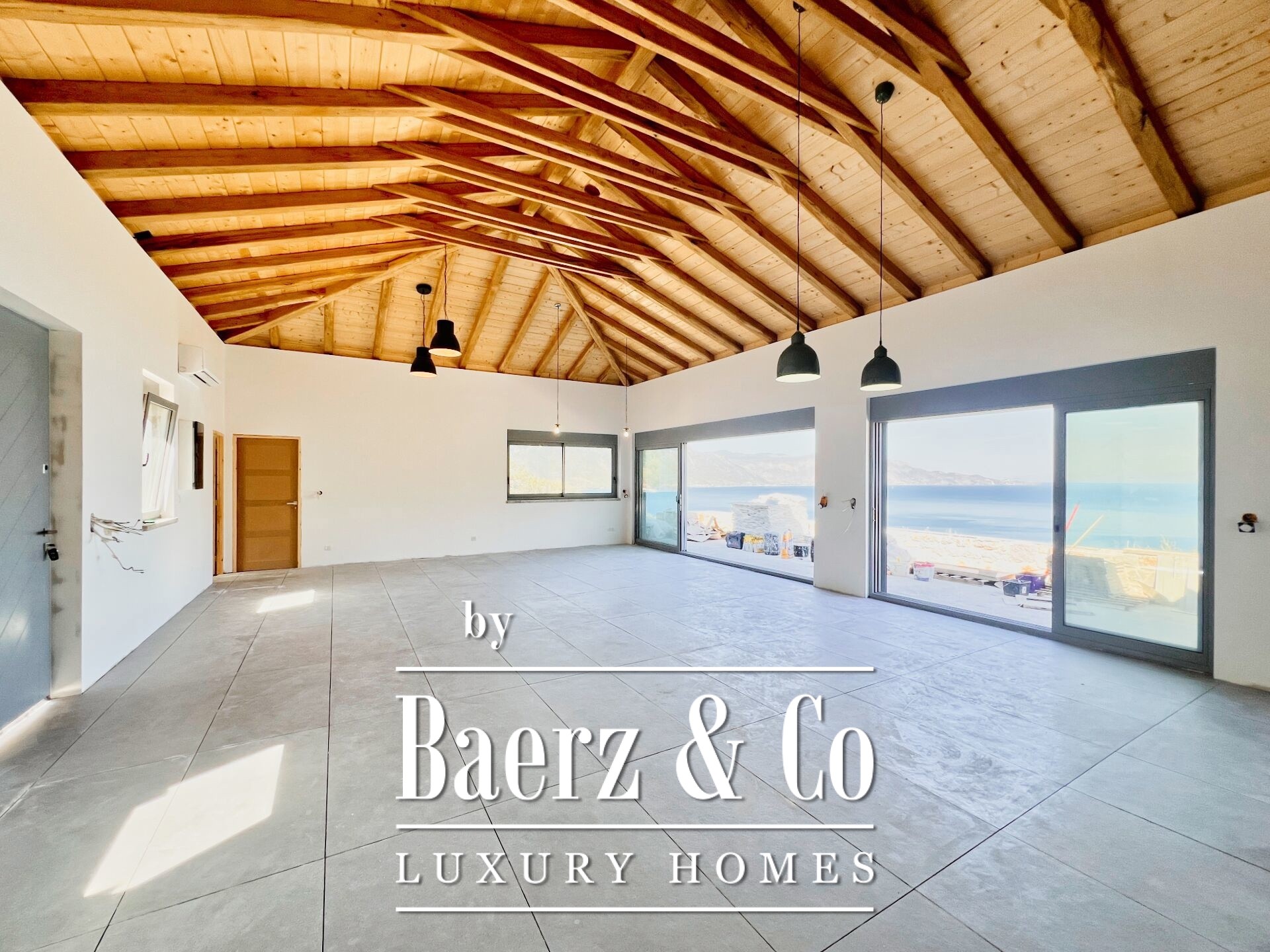 space. On the upper floor, which consists of 140 sq m of main spaces, one finds an ideal living room with kitchen, three bedrooms and two bathrooms. The courtyard is carefully landscaped and includes a 5x10 m swimming pool, as well as an elegant stone BBQ. The residence will be delivered complete, with an excellent selection of materials, offering sea views from every point. Access to the beach is easy and direct, while landscaping and tree plantings are planned in the surrounding area that will further highlight the natural beauty of the property.