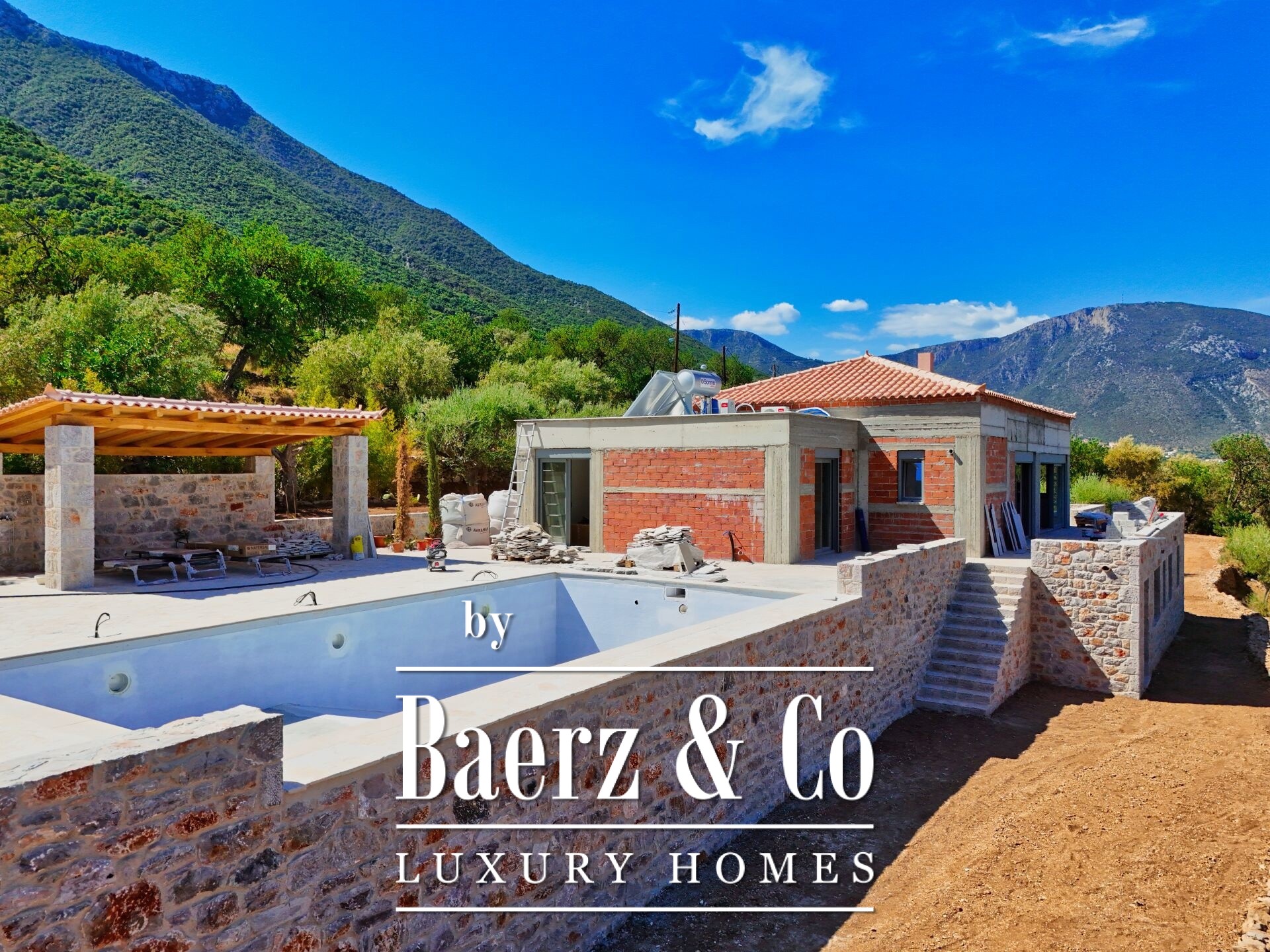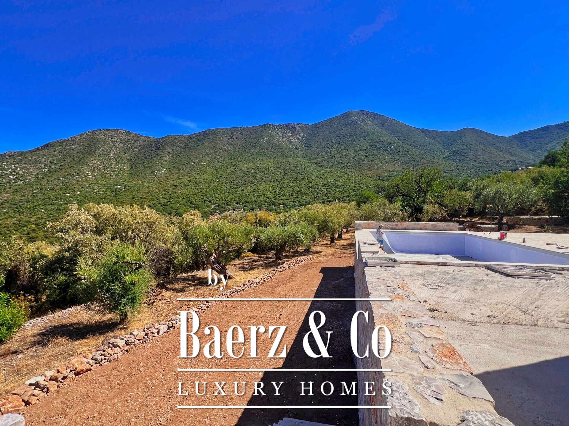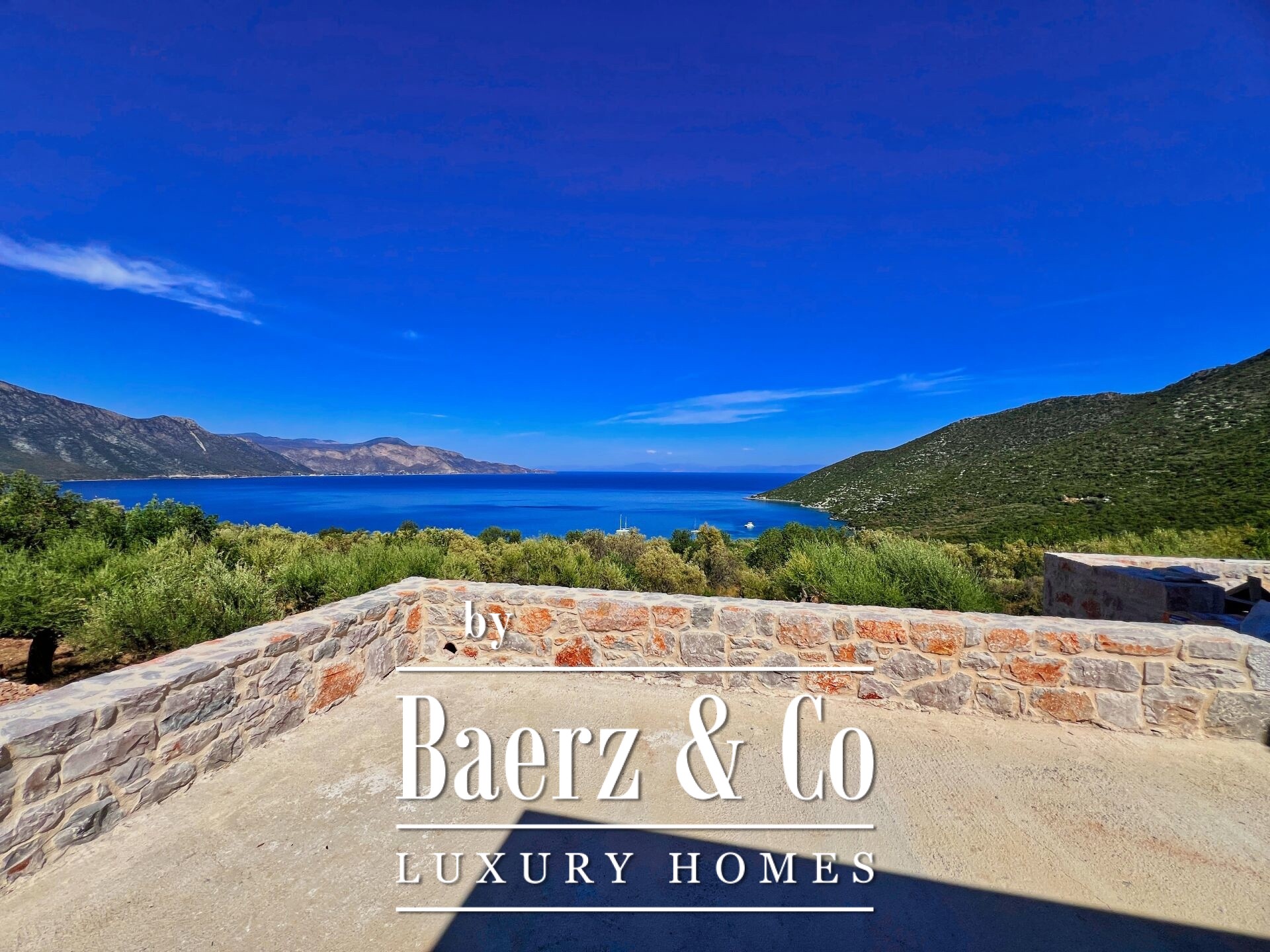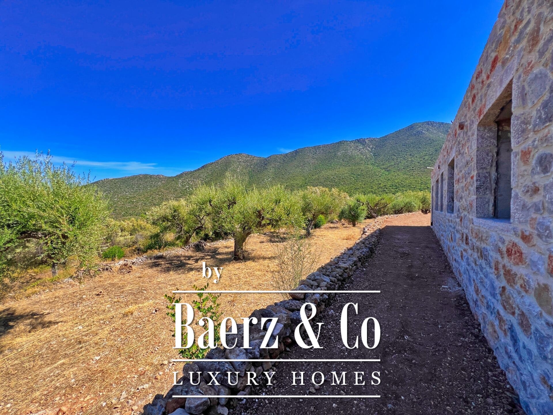In a location of unique beauty, within a lush olive grove and with unobstructed, magnificent views of the sea and the mountain, a detached house of 235 sq m is available for sale, within a privately owned plot of 4,200 sq m. The house harmoniously combines traditional stone elements with modern lines, while the large internal height further highlights its special, traditional character. It is developed on two levels. On the ground floor, a 70 sq m guest house is provided with a living room, kitchen, bedroom and bathroom, as well as a 20 sq m covered parking