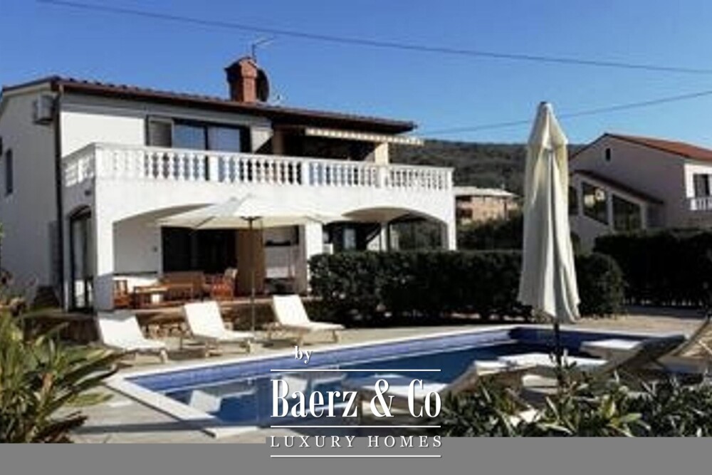 Detached house Punat presents 200 m² of living space arranged over two independent floors on the storied island of Krk. This property comprises two fully furnished and well-outfitted apartments, each designed with two bedrooms, a living area, a kitchen, and a bathroom, enhanced by balcony and terrace access that invite a gentle rhythm of indoor-outdoor life.