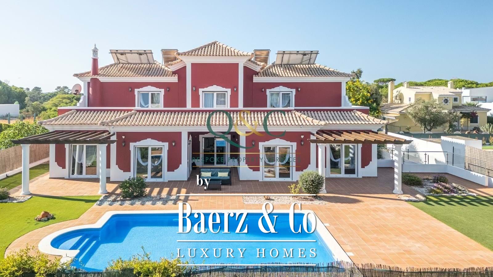 This exceptional five-bedroom villa is ideally located in the heart of the Central Algarve, just 3 km from both Vilamoura and Quarteira. Nestled in a peaceful, established neighborhood, it offers the perfect blend of tranquility and convenience, with Vila Sol and the Aquashow waterpark only minutes away. Featuring traditional Algarvian architecture, this villa makes a striking impression while providing all the comforts of modern living.