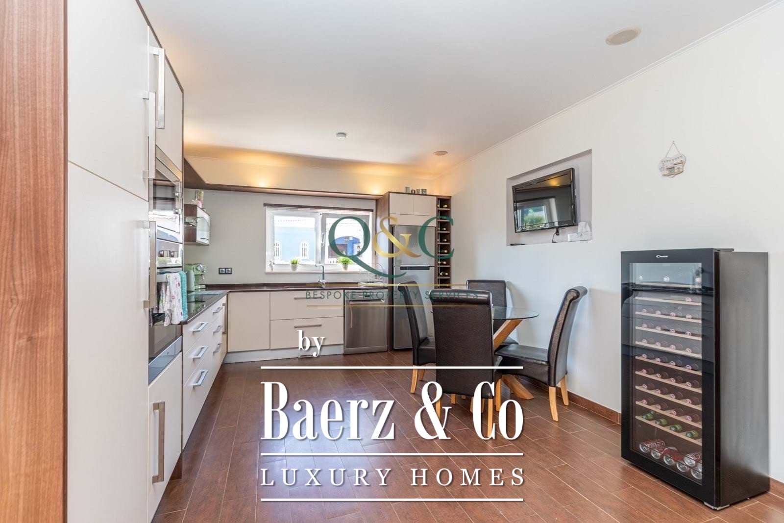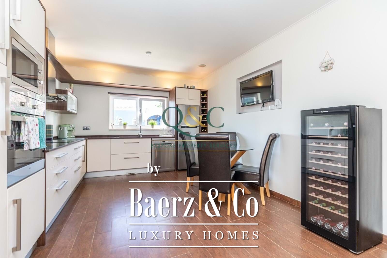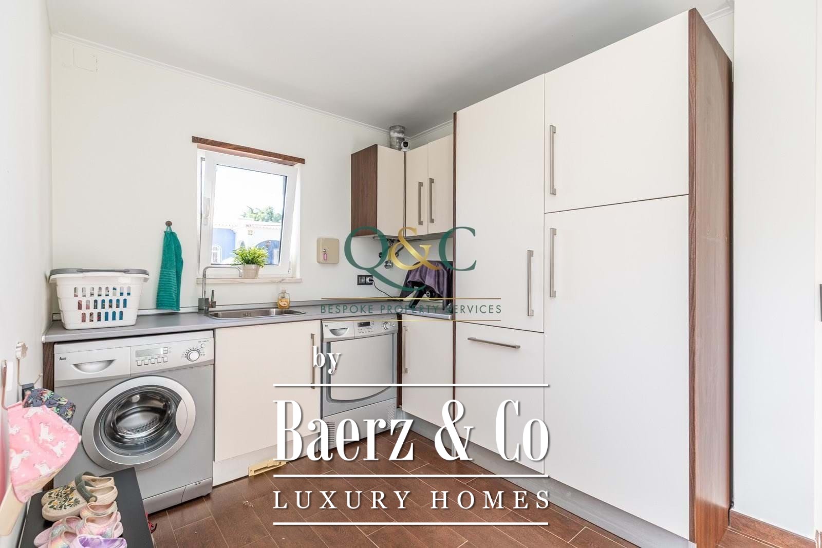 The basement offers a large garage with electric gate access and space for multiple vehicles, along with a separate storage area. A shaded terrace provides a cool retreat during hot summer days and doubles as an inviting alfresco dining area in winter. The mature garden offers plenty of space for children to play, while the pool is perfect for unwinding after a day at the nearby beaches or a barbecue featuring fresh seafood from the Quarteira market.