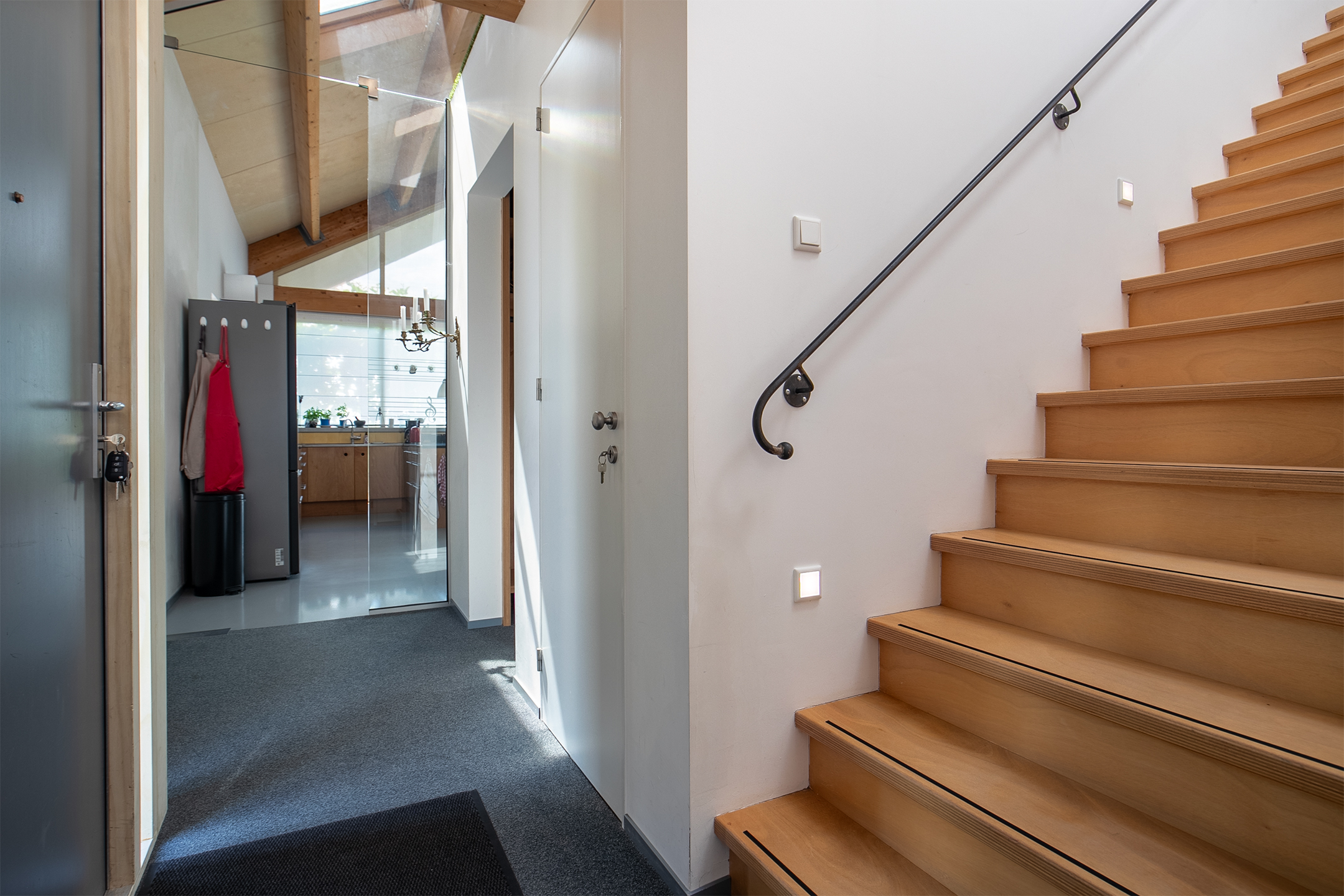 In addition, on the ground floor you will find a utility room, a separate toilet, and a spacious bedroom with an en-suite bathroom—perfect for single-story living or as a guest apartment. Unique is the extra spacious room, which can be furnished according to your wishes as a living room, workspace, or extra bedroom. Thanks to its separate entrance, this space offers excellent opportunities for working from home without compromising on privacy.