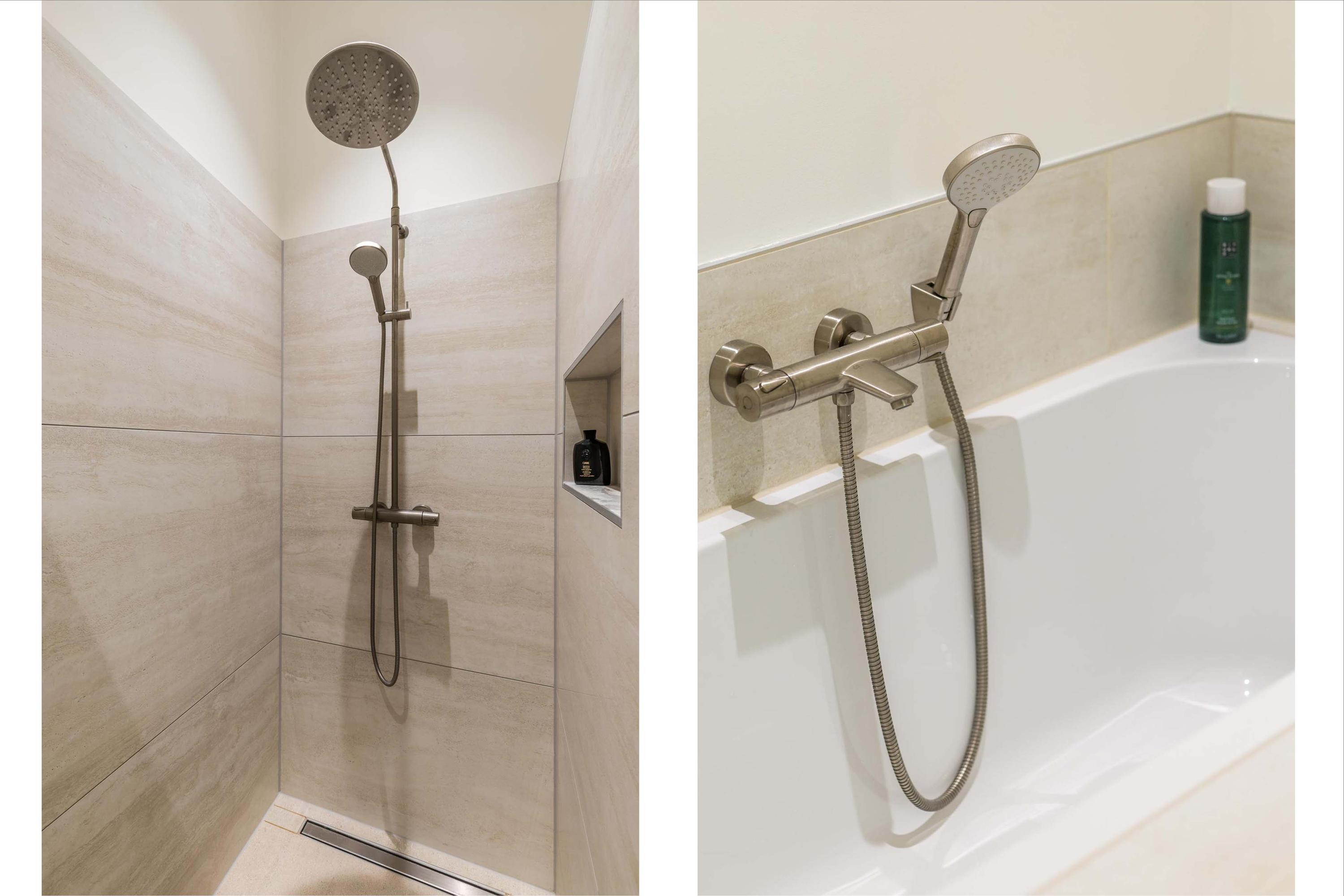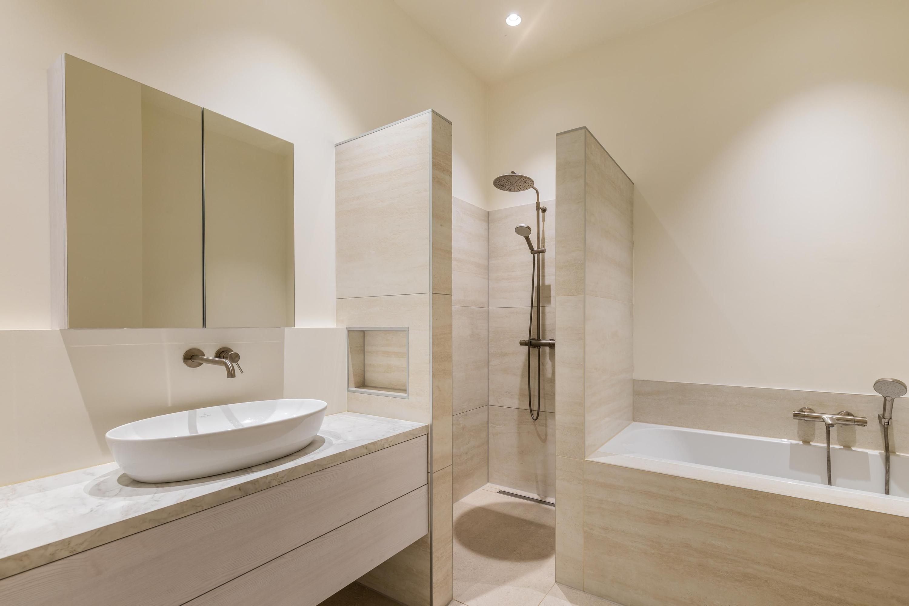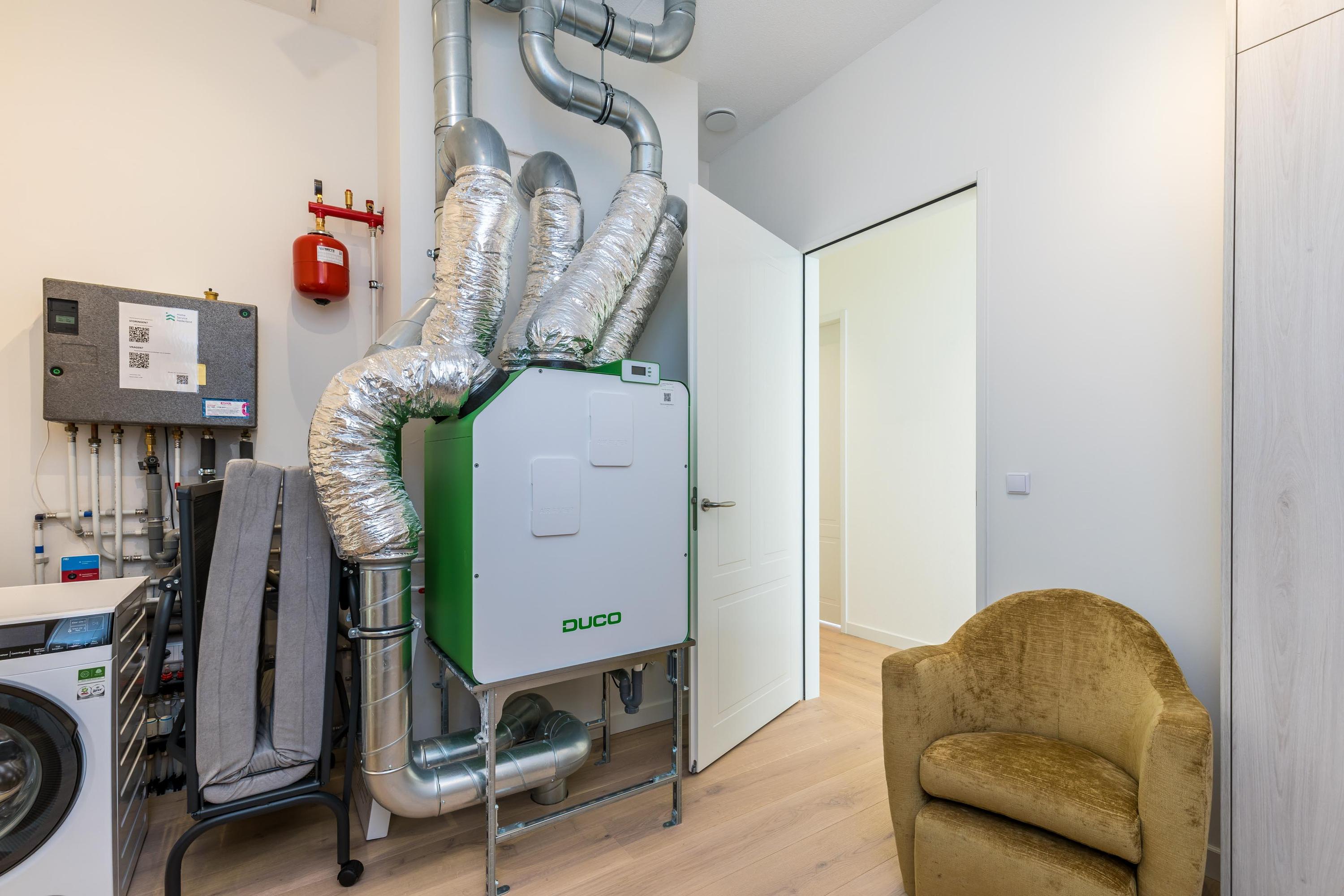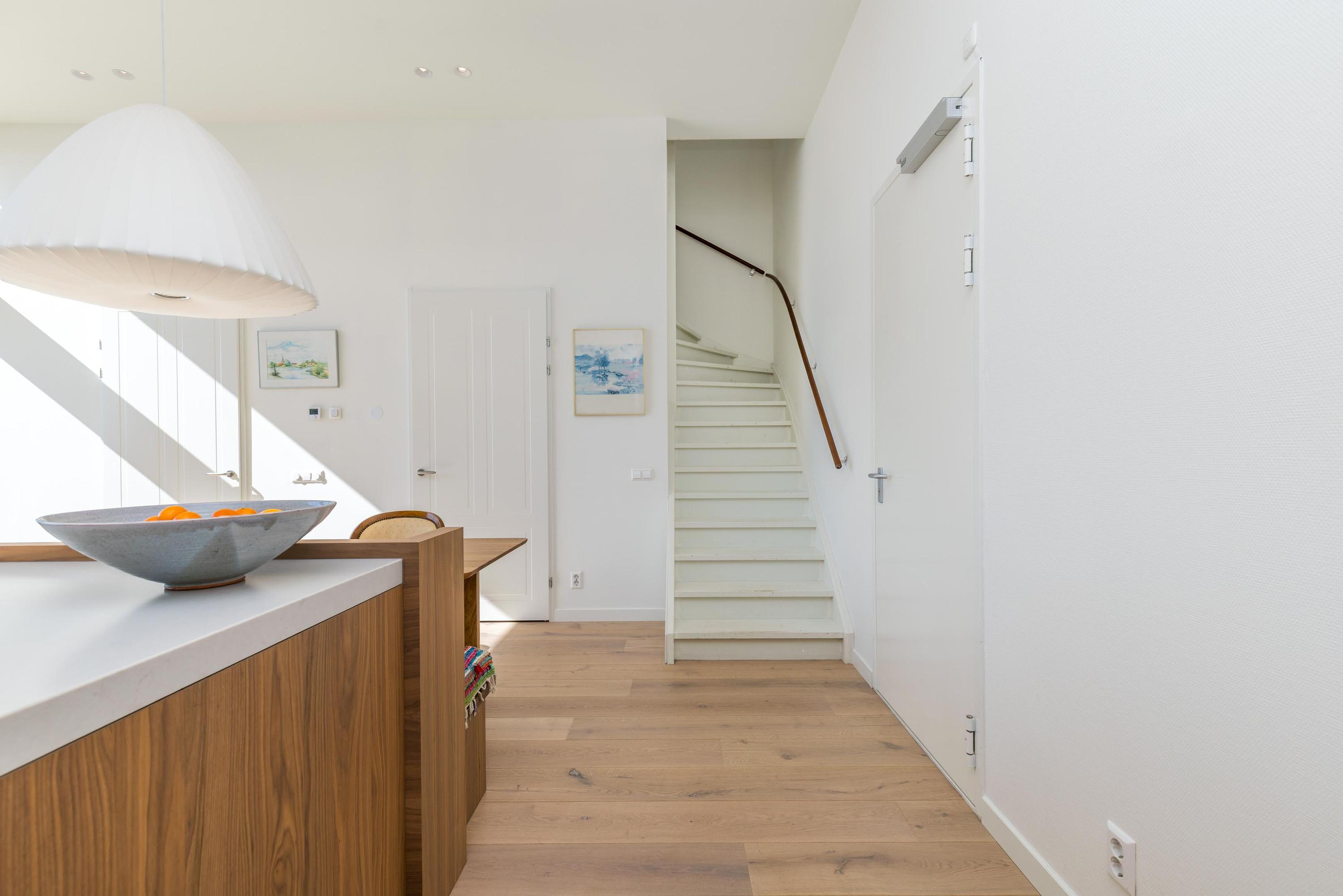You enter the apartment via your own veranda/sun terrace on the ground floor (facing the sunny south and overlooking the Maas River). Here you'll find the luxurious kitchen/diner, fully equipped and designed for enjoyment, whether you're hosting an intimate dinner or preparing a lavish meal for friends and family. Directly adjacent is a spacious indoor storage room, ideal for extra storage.