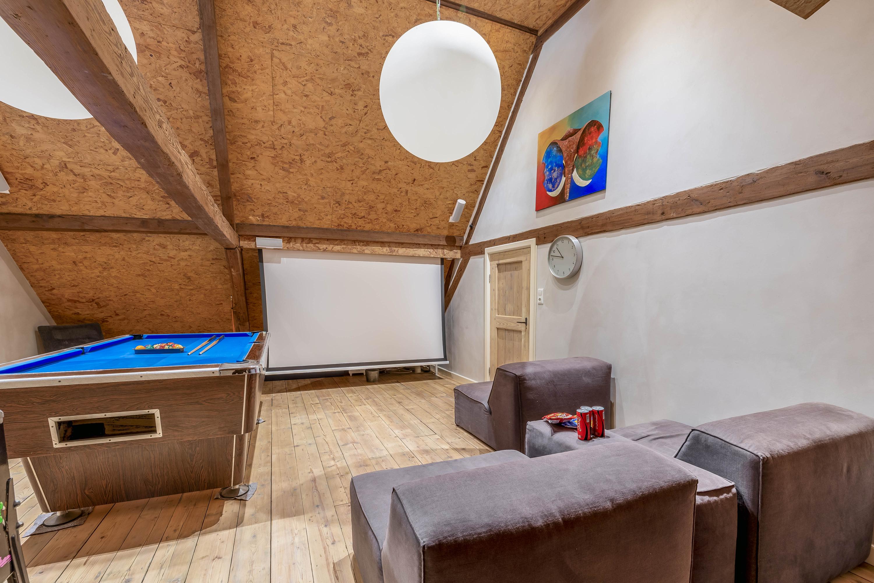 A special addition is the entertainment room on the upper floor with billiards table and cinema setup, which can also be used as an extra bedroom or guest accommodation.