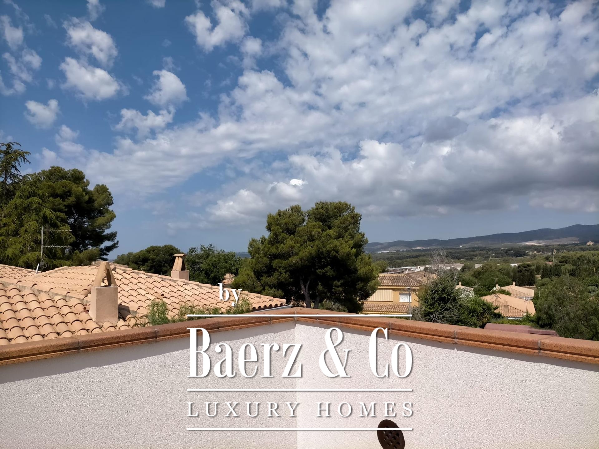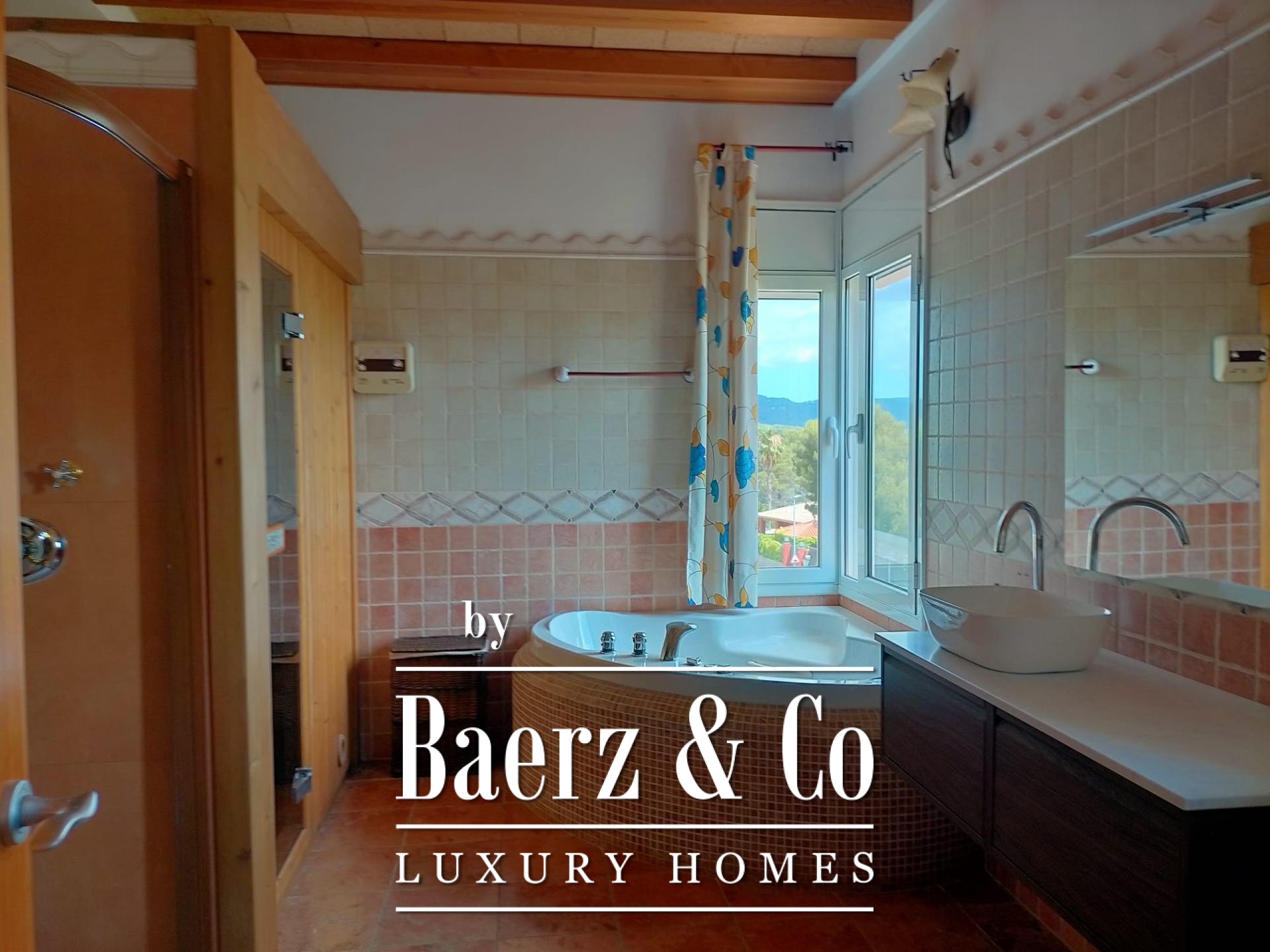 Villa Sant Pere de Ribes is quietly positioned in the esteemed Els Cards residential area, set between Sitges and Sant Pere de Ribes, where privacy and panoramic views define every living moment. This five-bedroom, three-bathroom villa blends traditional Spanish architecture with contemporary refinement. Recently renovated interiors preserve authentic details such as arches and natural textures, while bringing in clean modern lines and warm tones. The open-plan main floor flows across kitchen, dining and living spaces, illuminated by abundant sunlight from windows on two sides. A statement fireplace centers the living area, offering an inviting gathering point year-round.