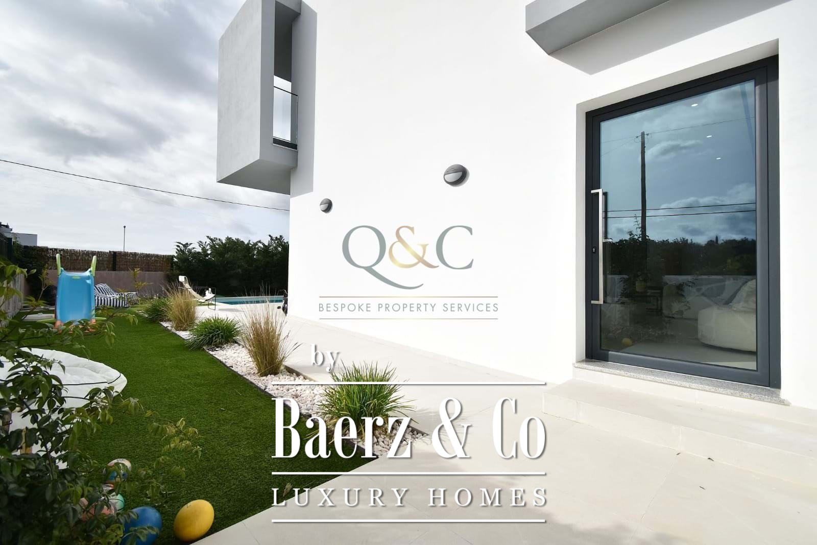 Contemporary house Santa Bárbara de Nexe presents a refined architectural approach, bringing together four bedrooms and three bathrooms across a living area of 273 m². From the moment of arrival, two private parking spaces in the basement provide direct, discrete access to the heart of the house.
