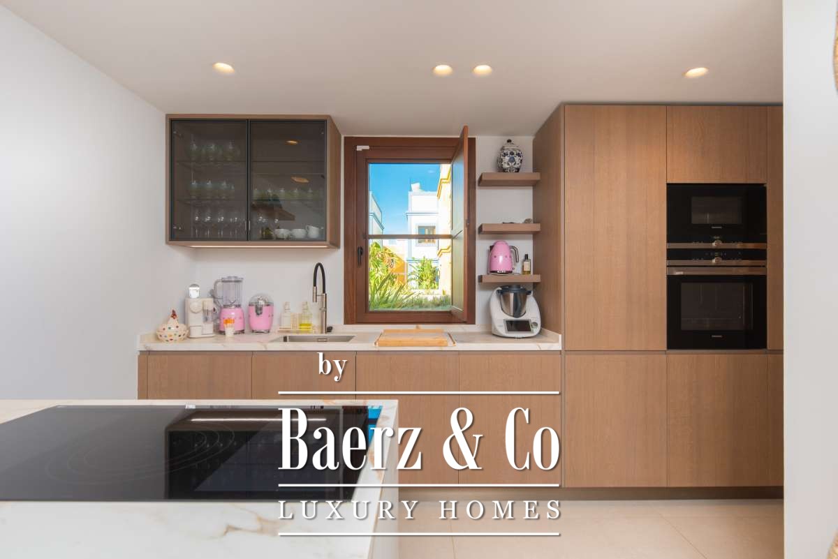 The SurroundingsWelcome to the charming village of Santa Gertrudis, one of the most beloved spots on Ibiza. This idyllic village, located in the heart of the island, perfectly balances authentic Ibicenco charm with modern elegance. Cosy squares, boutiques and stylish restaurants are all within walking distance, while you still enjoy peace, privacy and a safe residential atmosphere. The townhouse is situated in the heart of this vibrant community, placing everything within easy reach, from your morning coffee at your favourite café to an evening stroll through the village’s picturesque streets.The TownhouseThis newly built townhouse combines timeless design with high-end comfort. With a total area of 248 m² and a living space of 199 m², spread across two elegant floors and a stunning rooftop terrace, the home offers spacious and refined living. The three generous bedrooms, two of which feature ensuite bathrooms, ensure comfort and privacy throughout.The bright living room forms the heart of the home, featuring a cosy fireplace and direct access to the garden. The fully equipped, separate kitchen provides everything you need for culinary moments with family and friends.